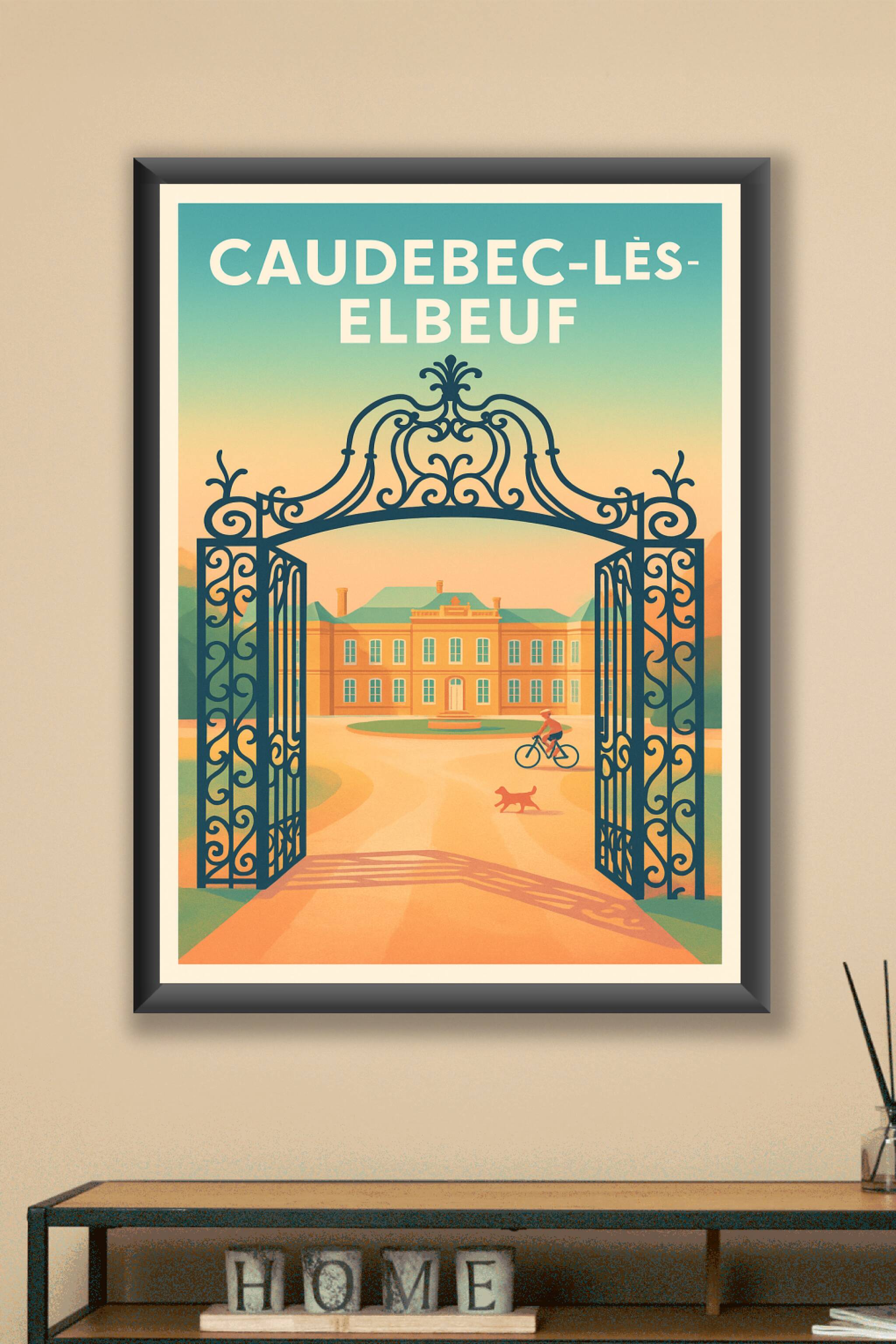 Découvrez le charme unique de Caudebec-lès-Elbeuf avec cette affiche illustrée mettant en scène l'entrée majestueuse et le château emblématique de ...