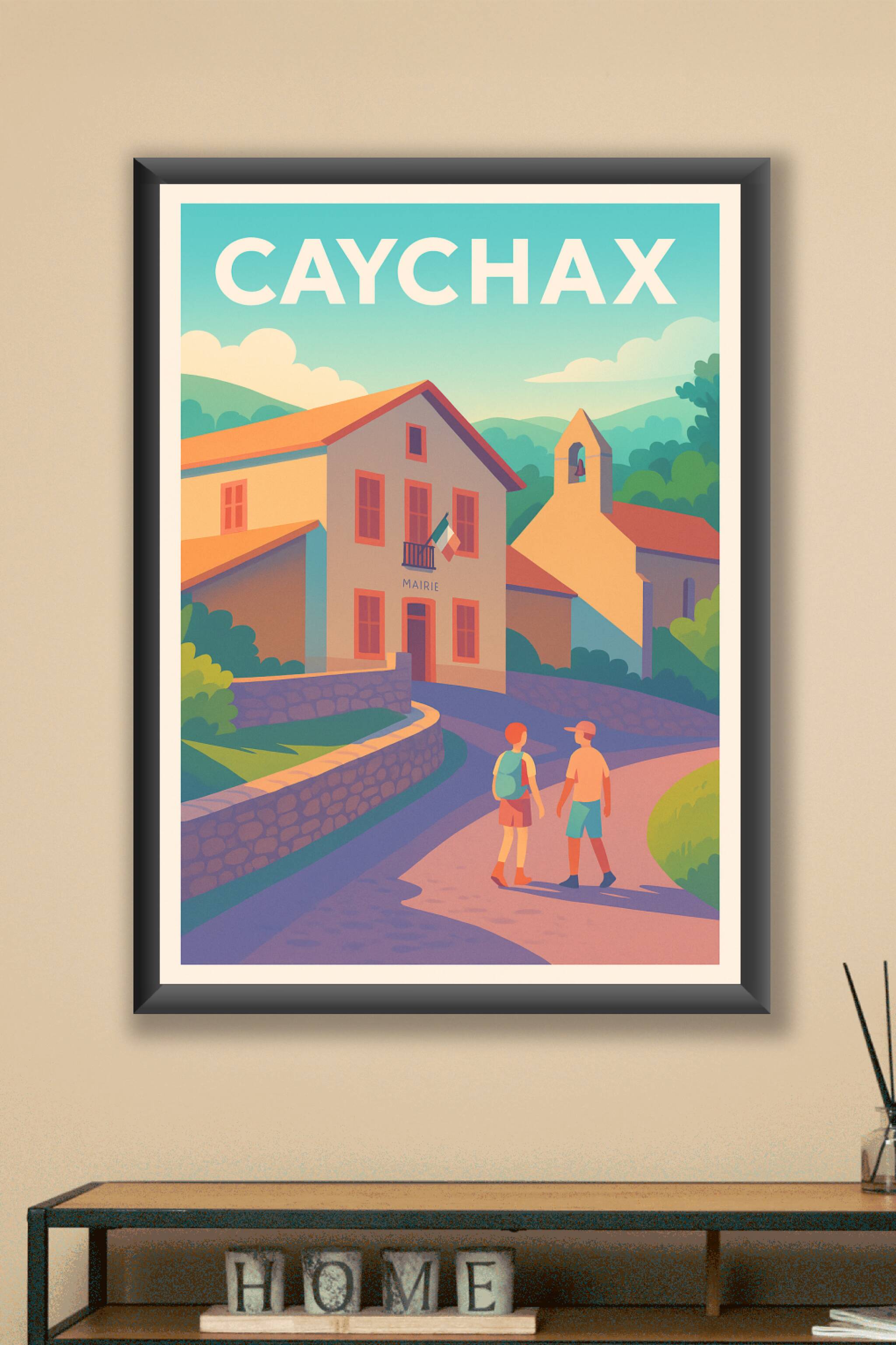 Découvrez l'atmosphère paisible et charmante de Caychax à travers cette affiche illustrée dans des tons chaleureux et doux. Cette représentation st...