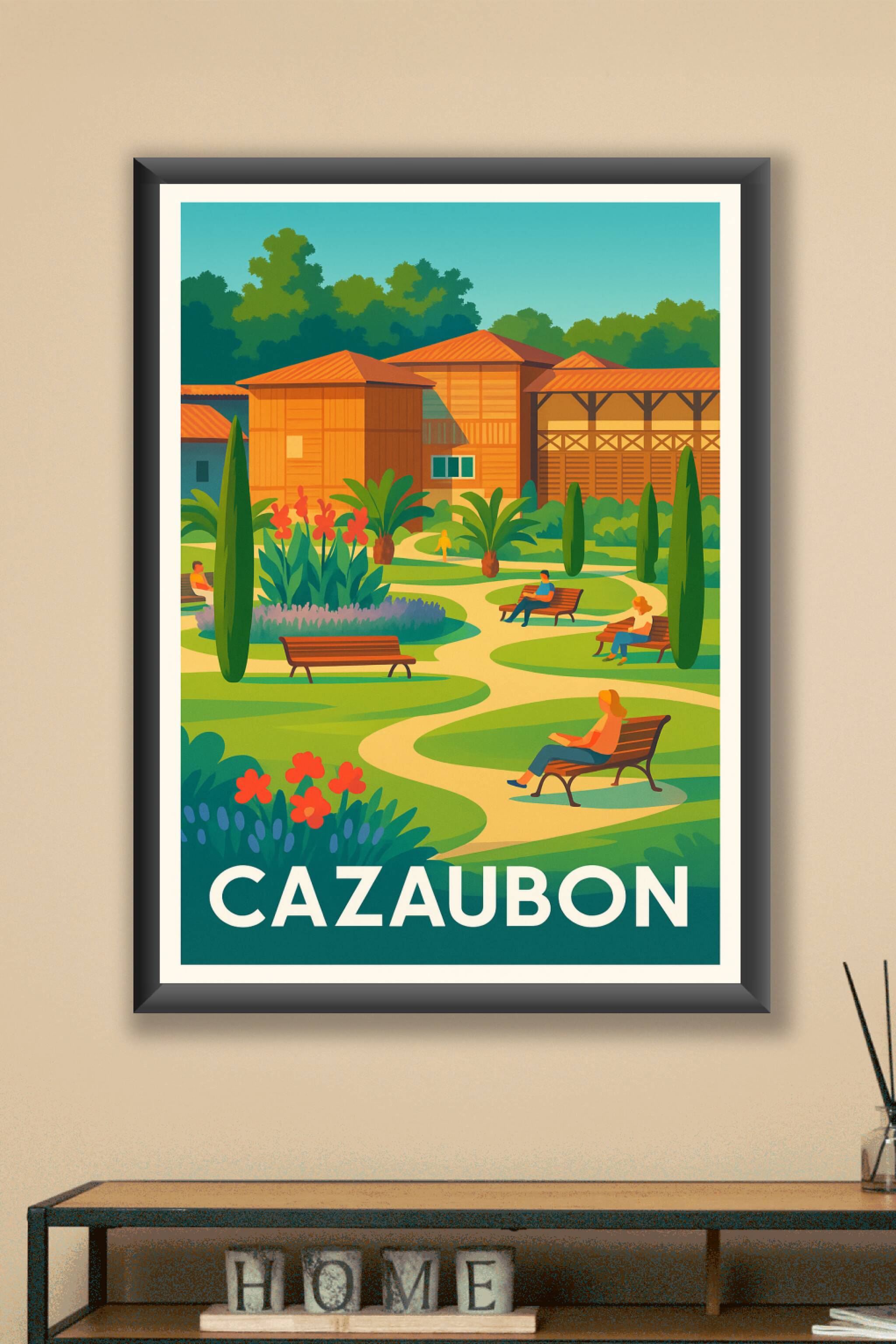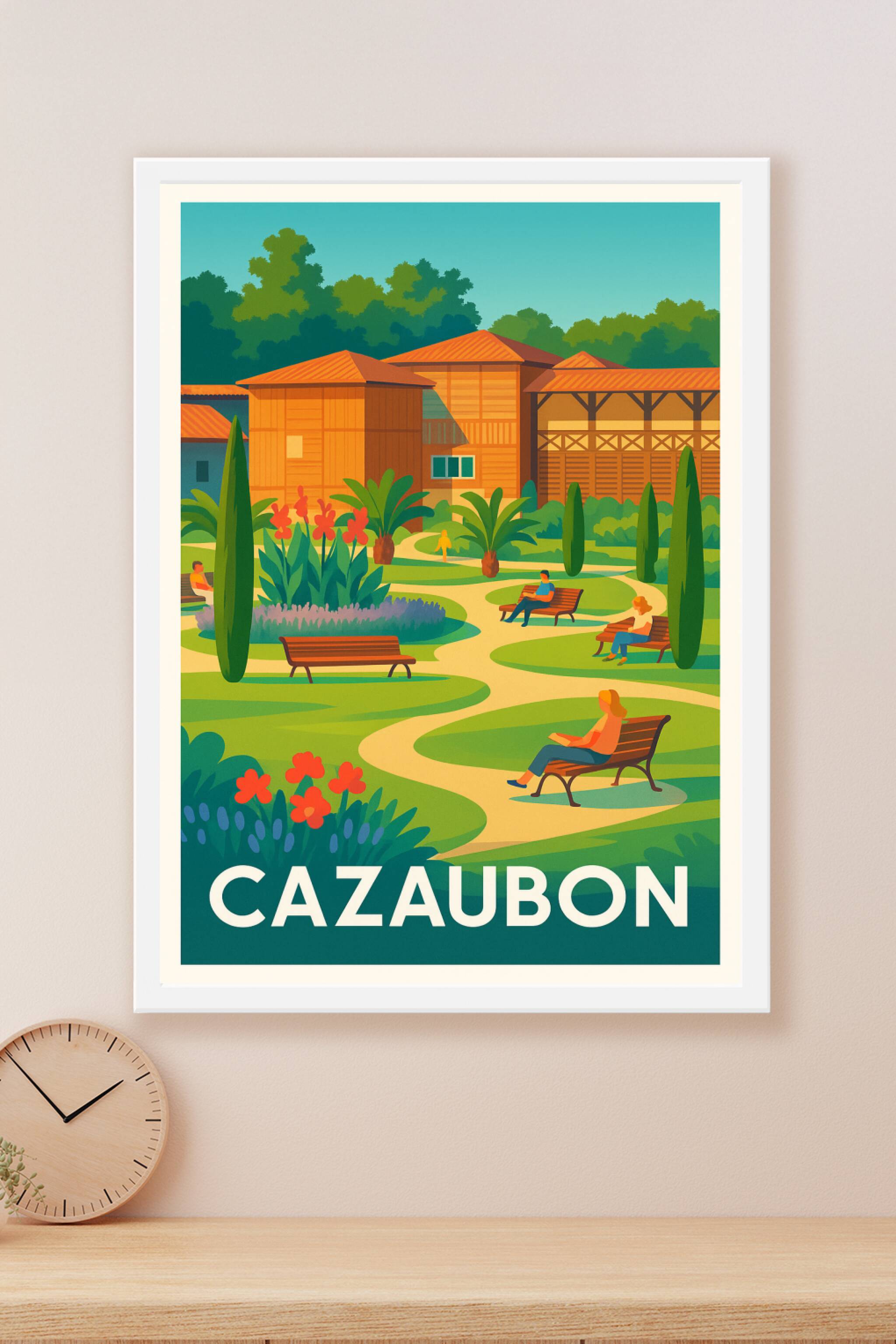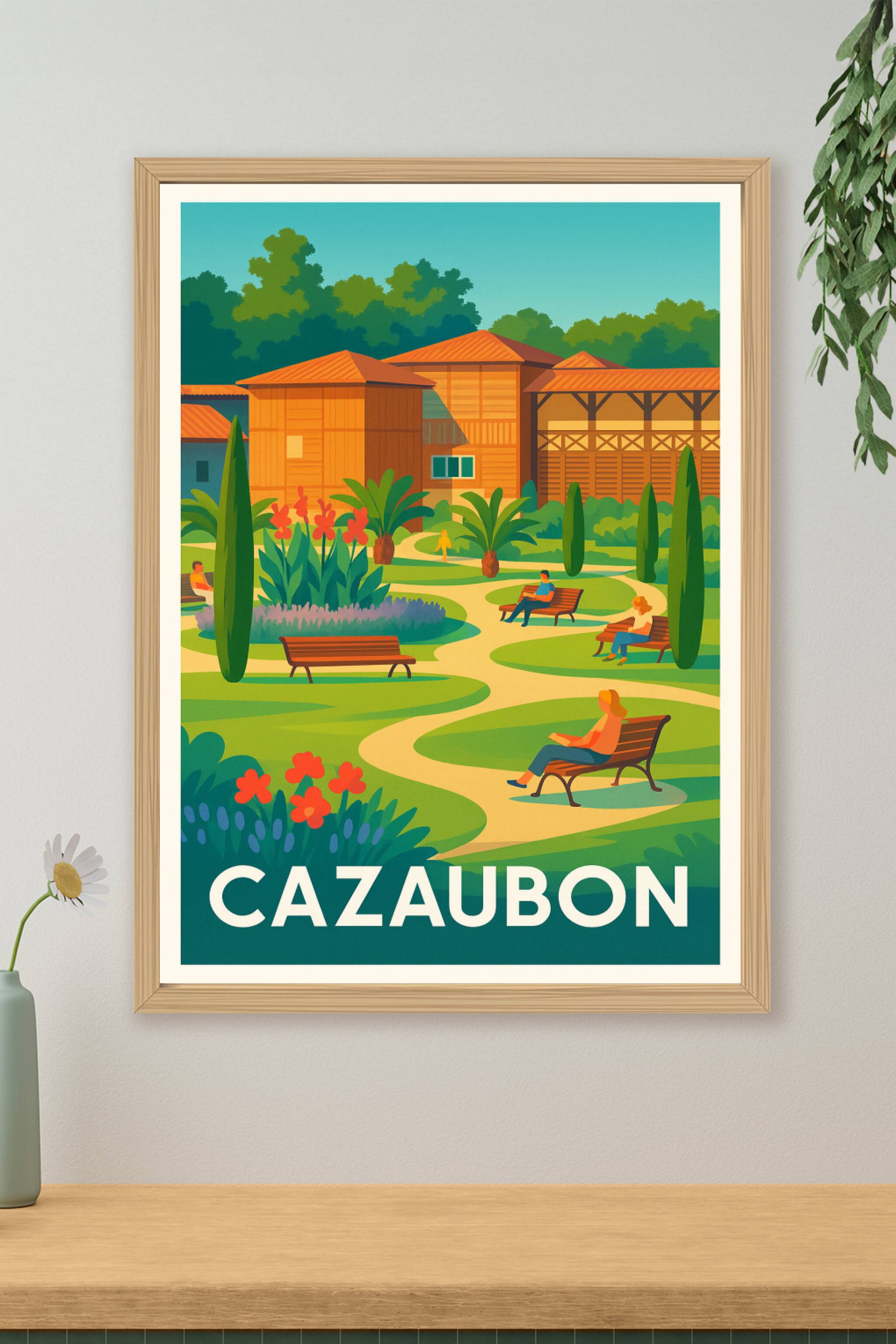 Découvrez le charme apaisant de Cazaubon avec cette affiche colorée qui met en lumière ses espaces verts soignés et ses bâtiments emblématiques en ...