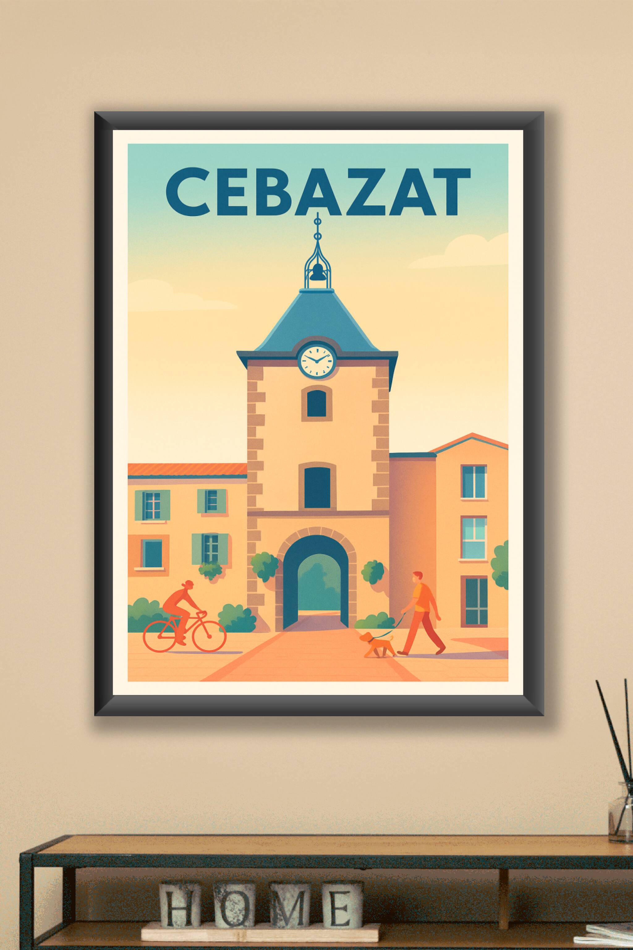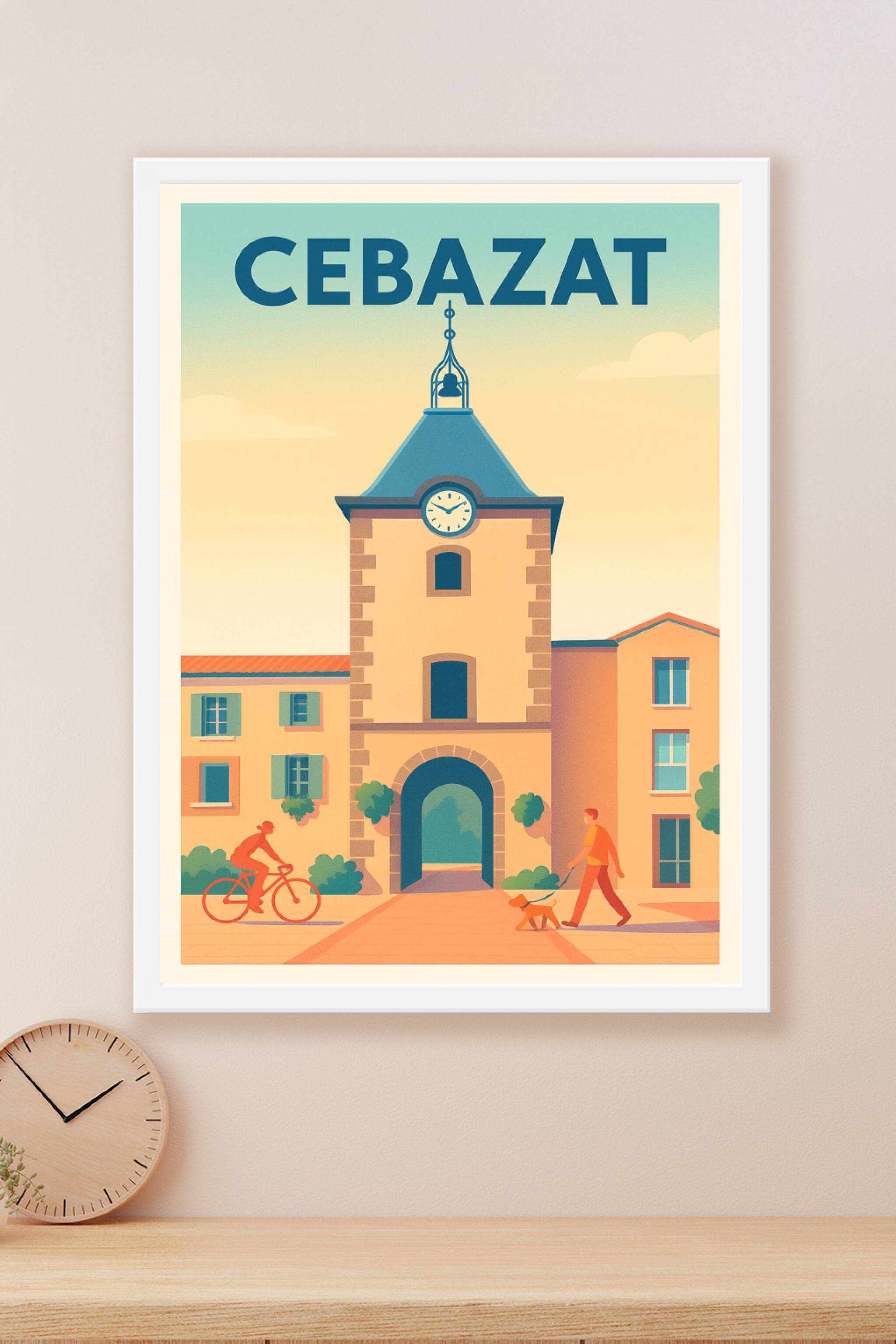 Découvrez l'authenticité paisible de Cebazat à travers cette affiche illustrée mettant en scène son emblématique beffroi, symbole du patrimoine loc...