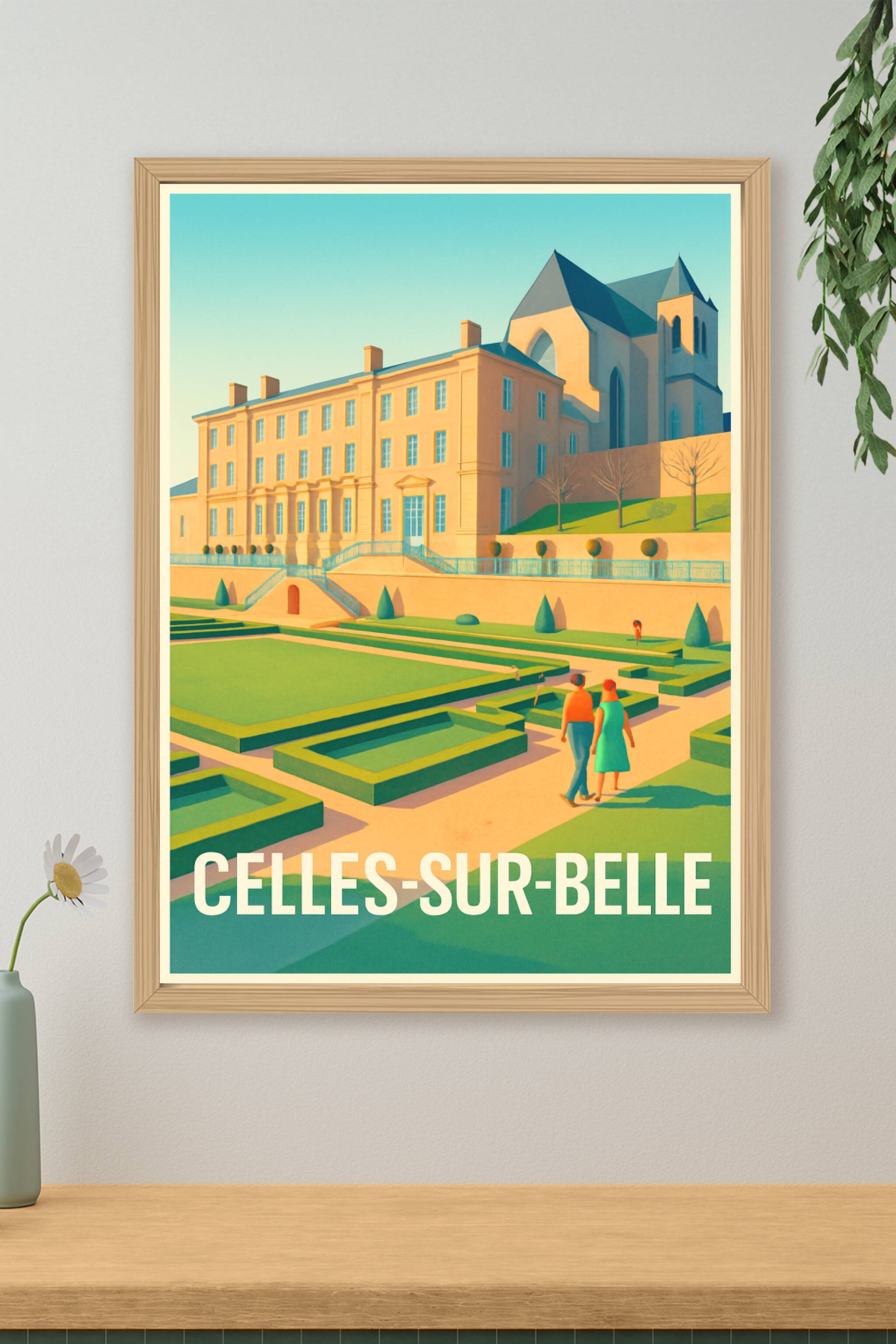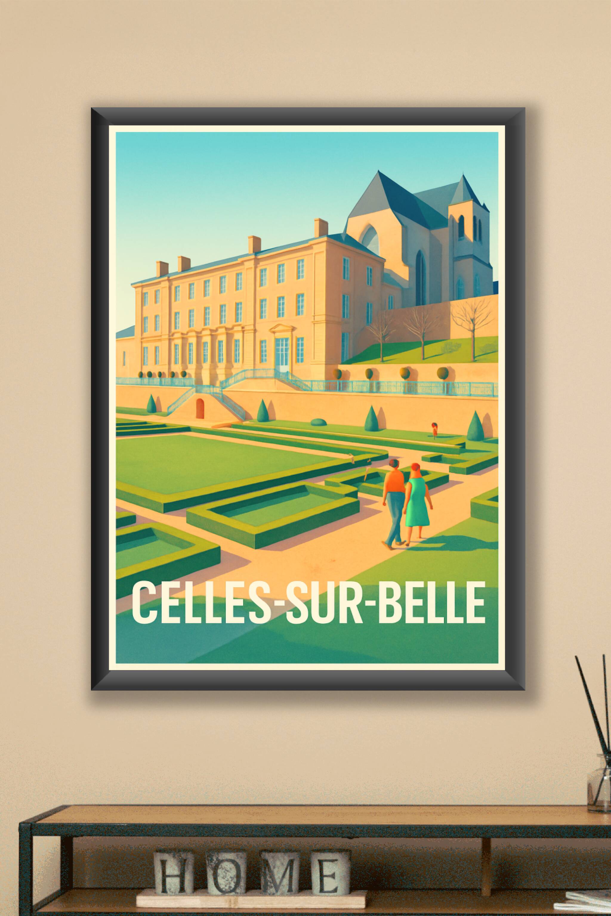 Découvrez le charme intemporel de Celles-sur-Belle à travers cette affiche raffinée représentant son célèbre château et ses jardins à la française....