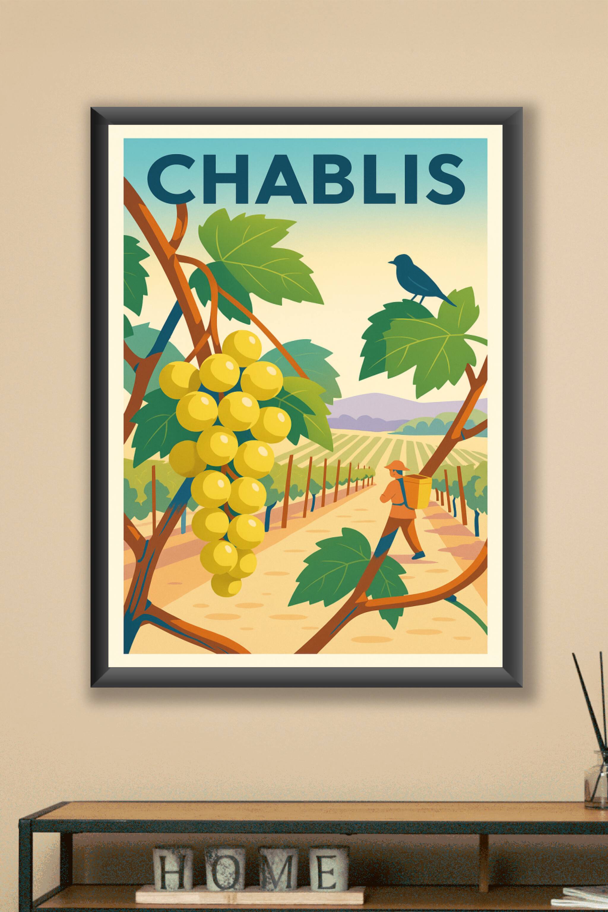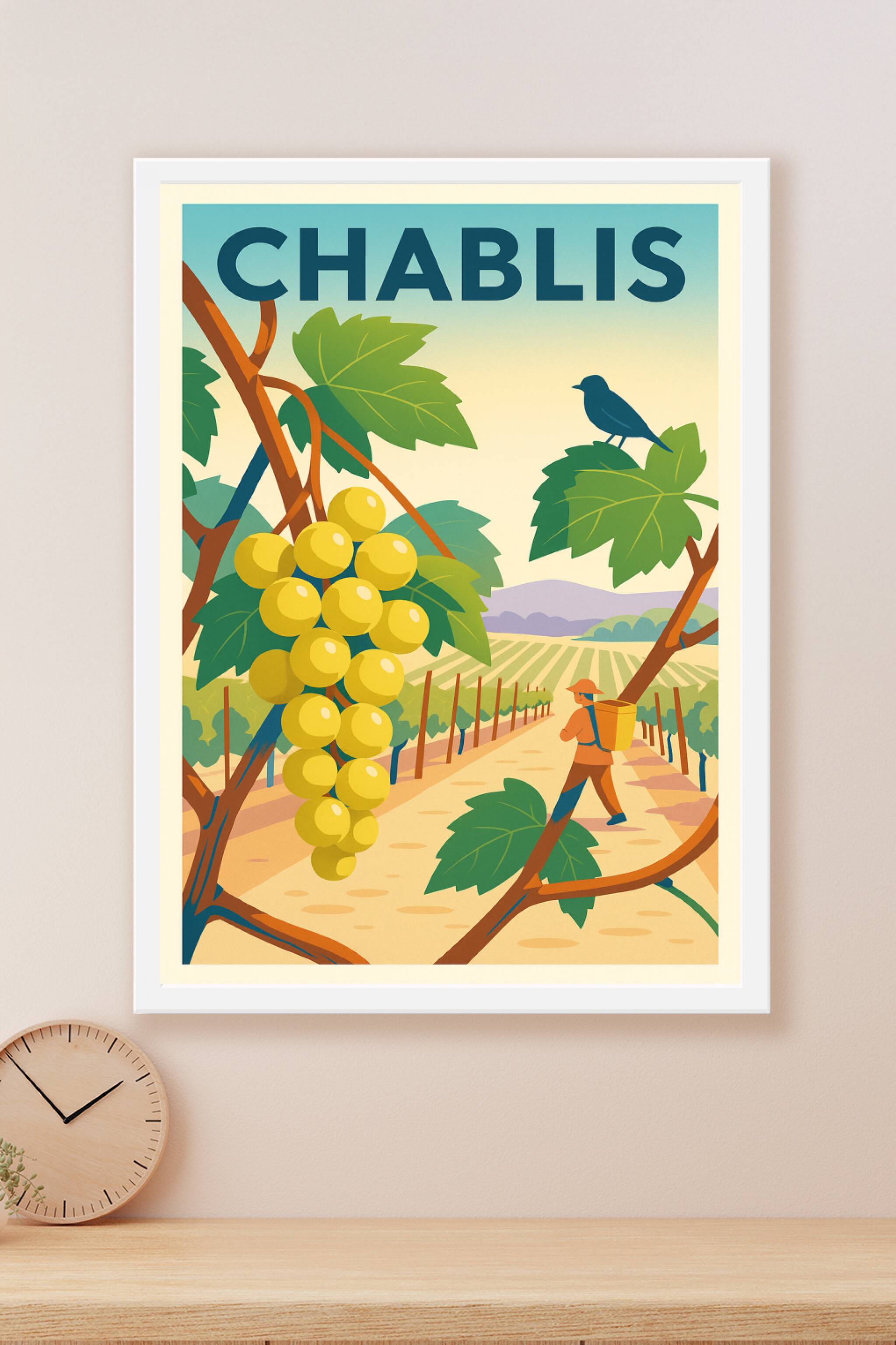 Décorez votre intérieur avec cette magnifique affiche illustrant la célèbre région viticole de Chablis, reconnue pour ses vignobles de Chardonnay. ...