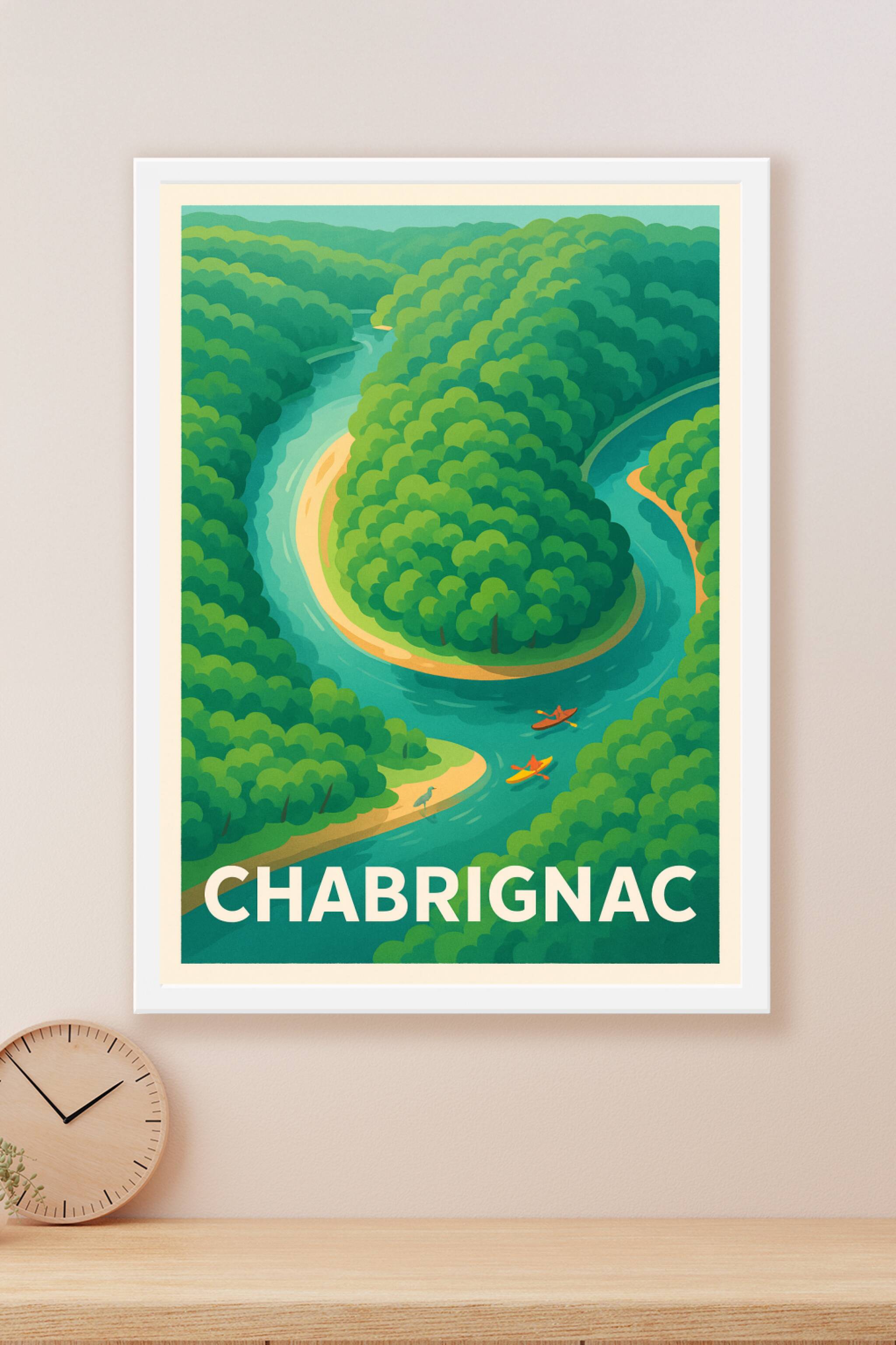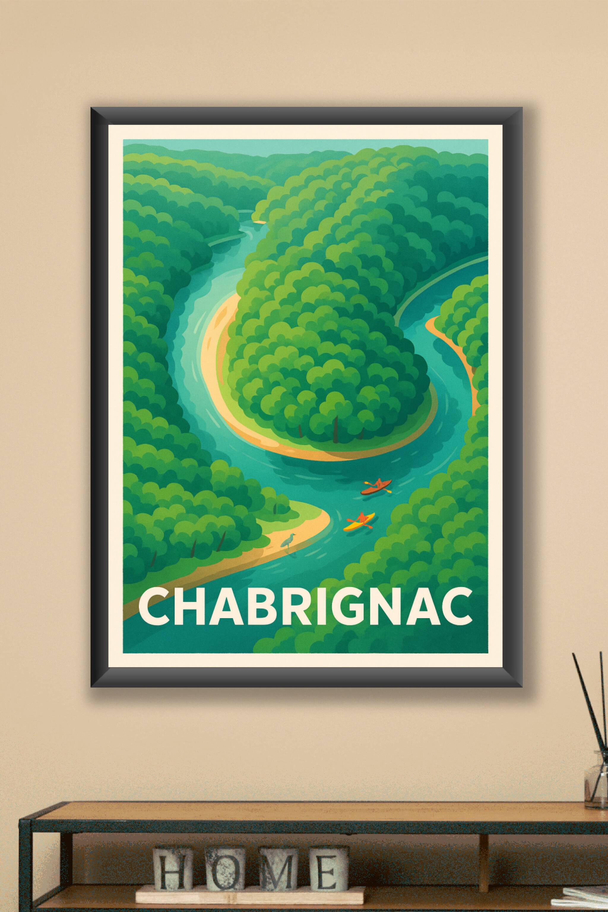 Évadez-vous au cœur des paysages verdoyants de Chabrignac avec cette affiche poétique illustrant la rivière sinueuse bordée de forêts luxuriantes. ...