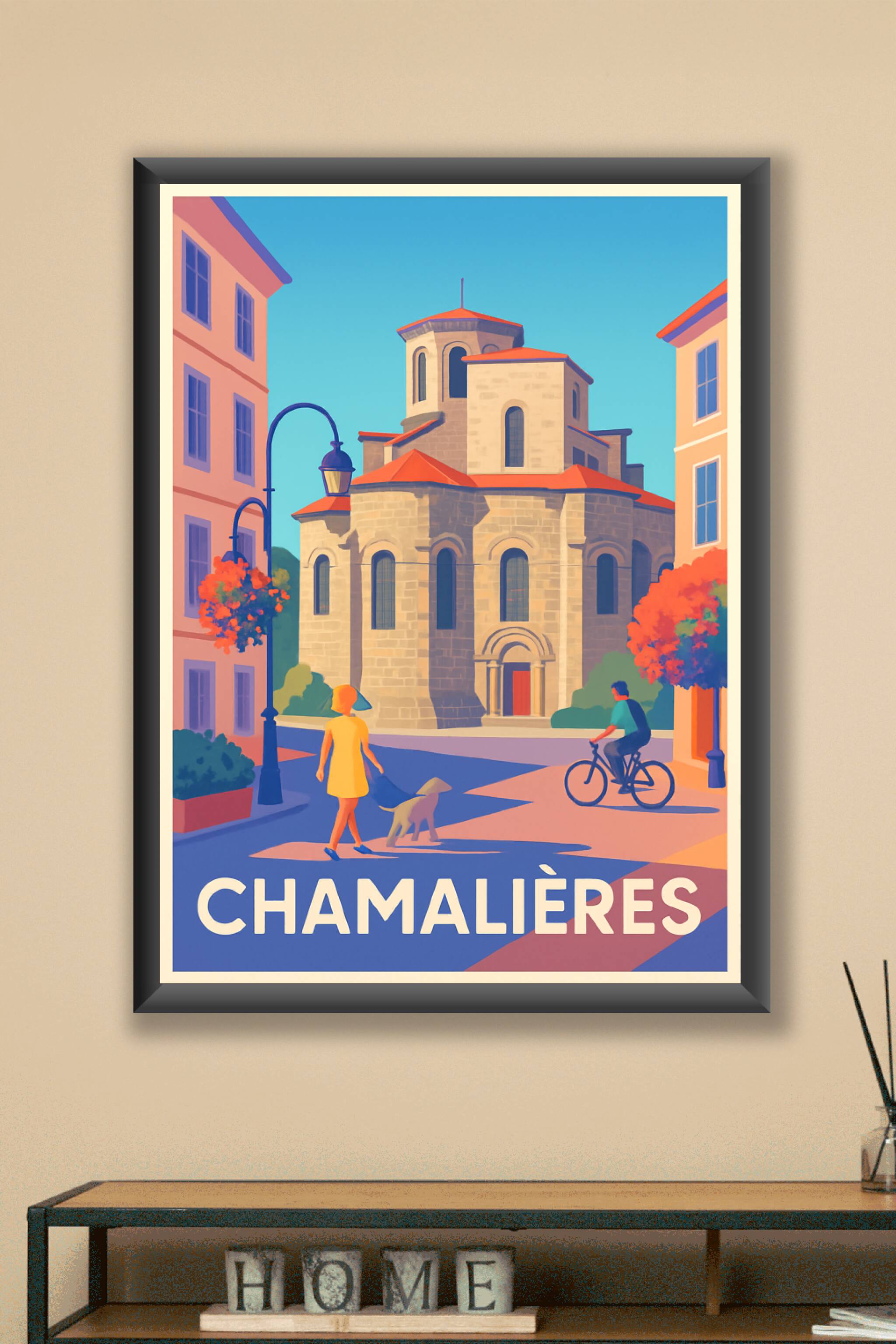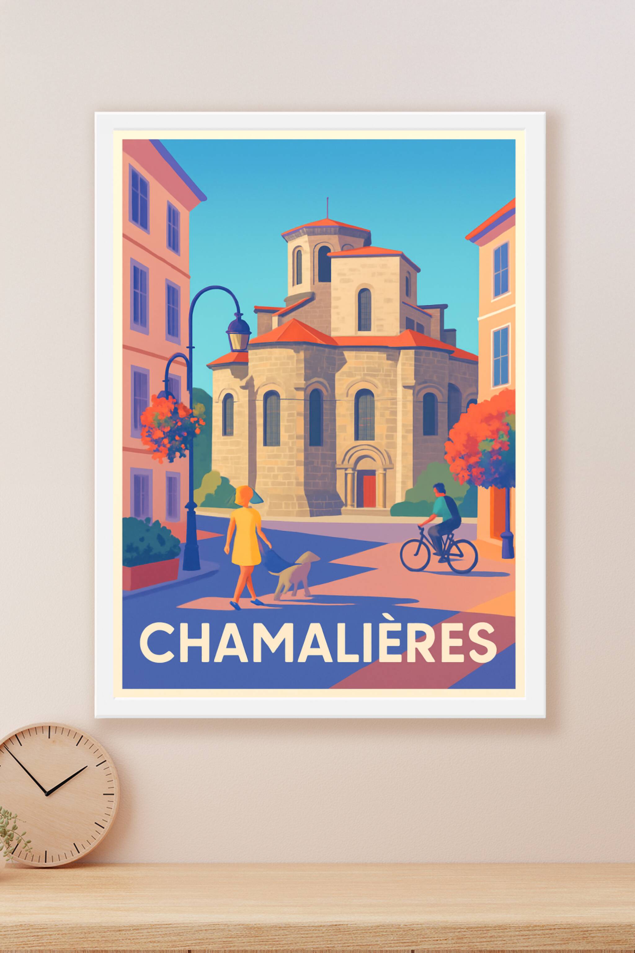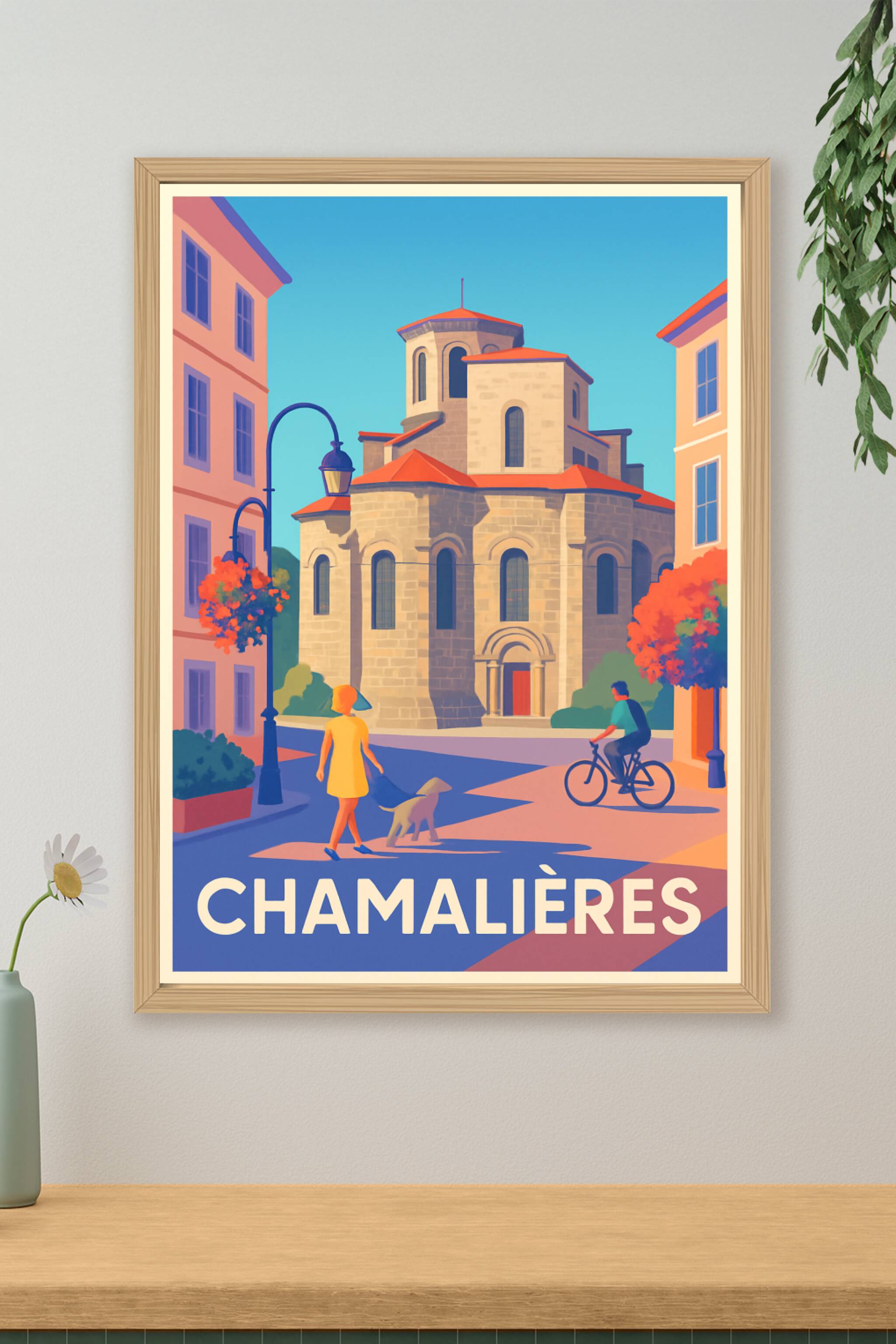 Découvrez l'élégance et la quiétude de Chamalières à travers cette affiche artistique aux couleurs vibrantes et douces. Le poster met en scène une ...