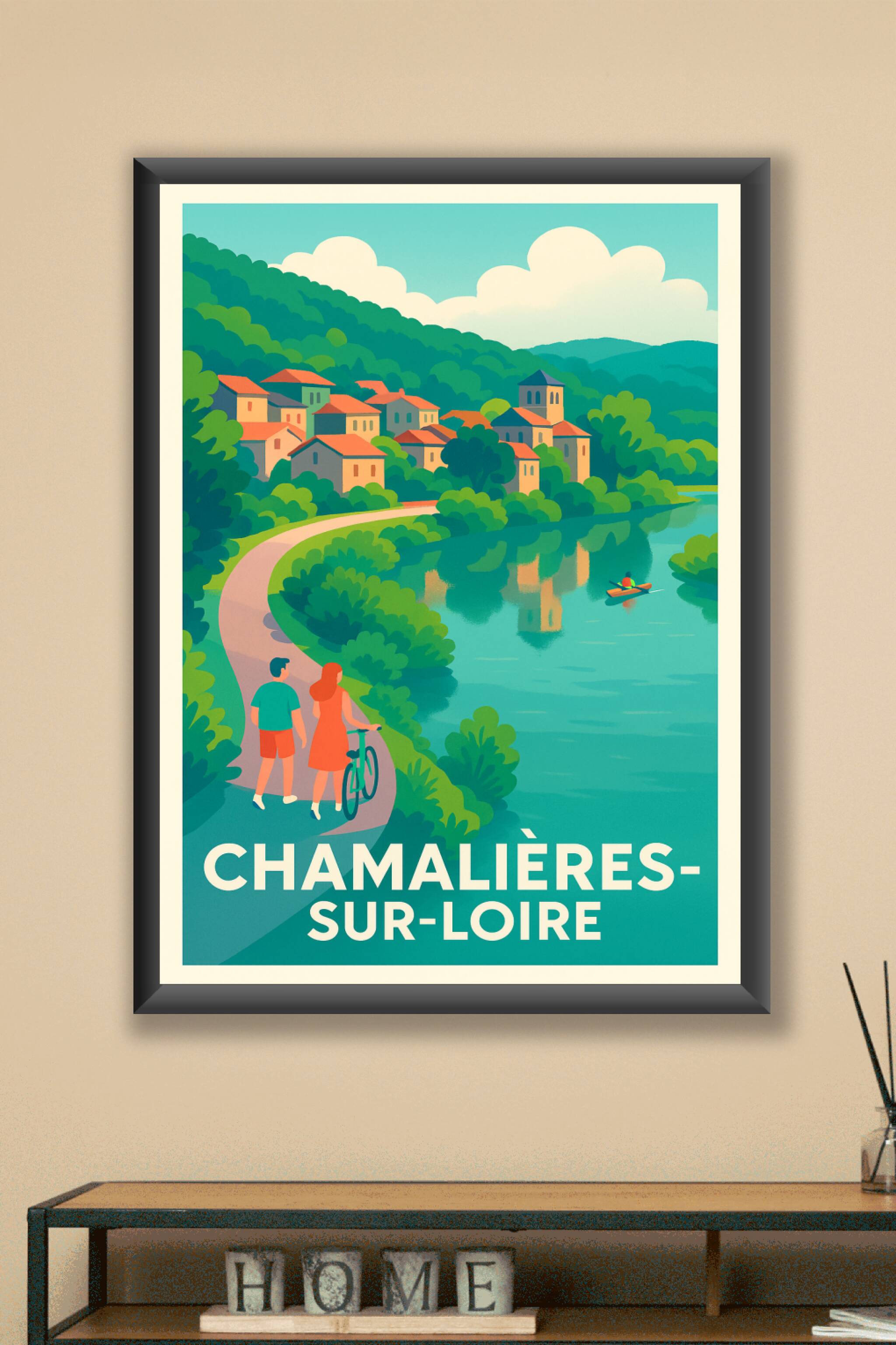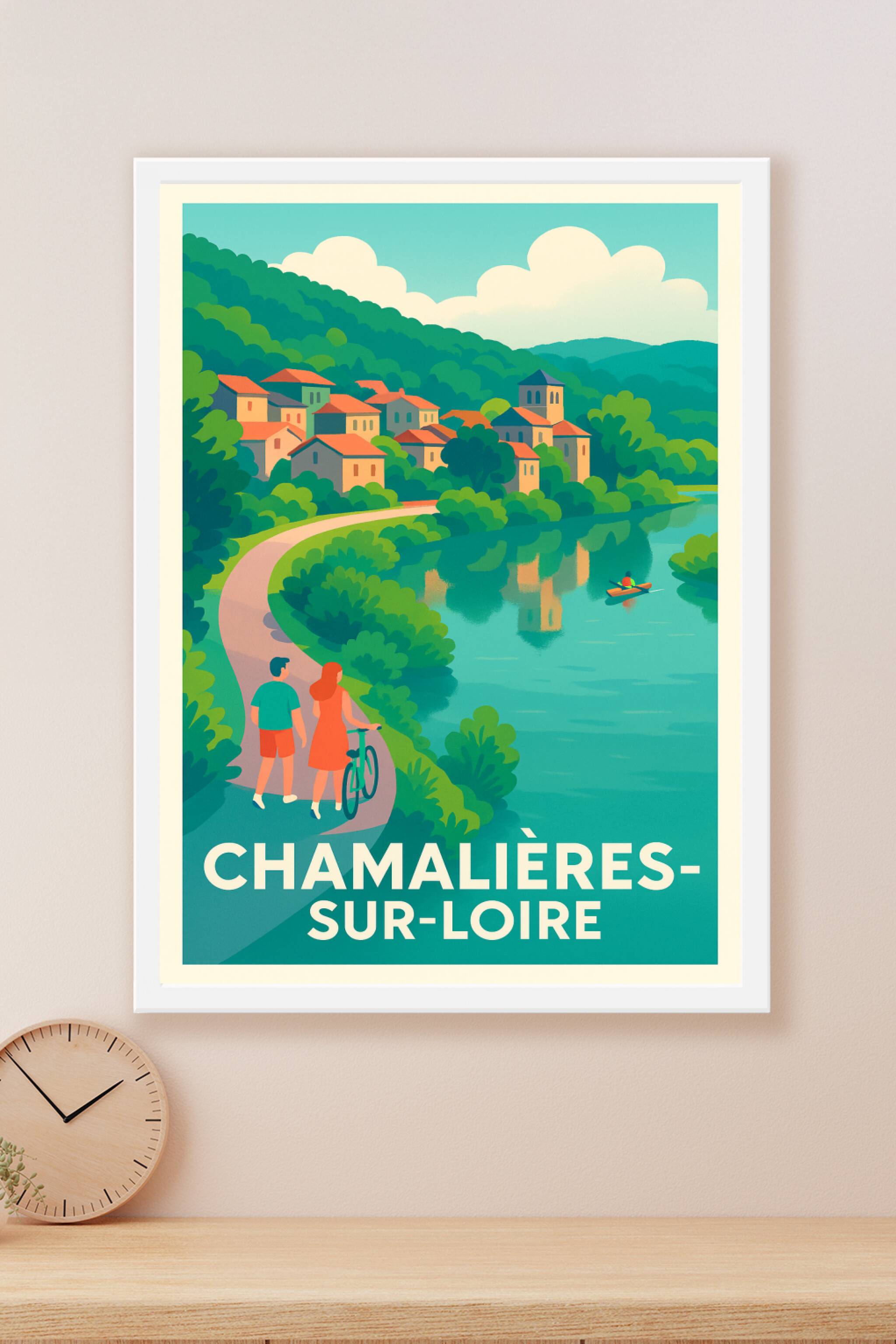 Découvrez le charme paisible de Chamalières-sur-Loire avec cette affiche illustrée mêlant nature verdoyante et douceur de vivre au bord de la Loire...
