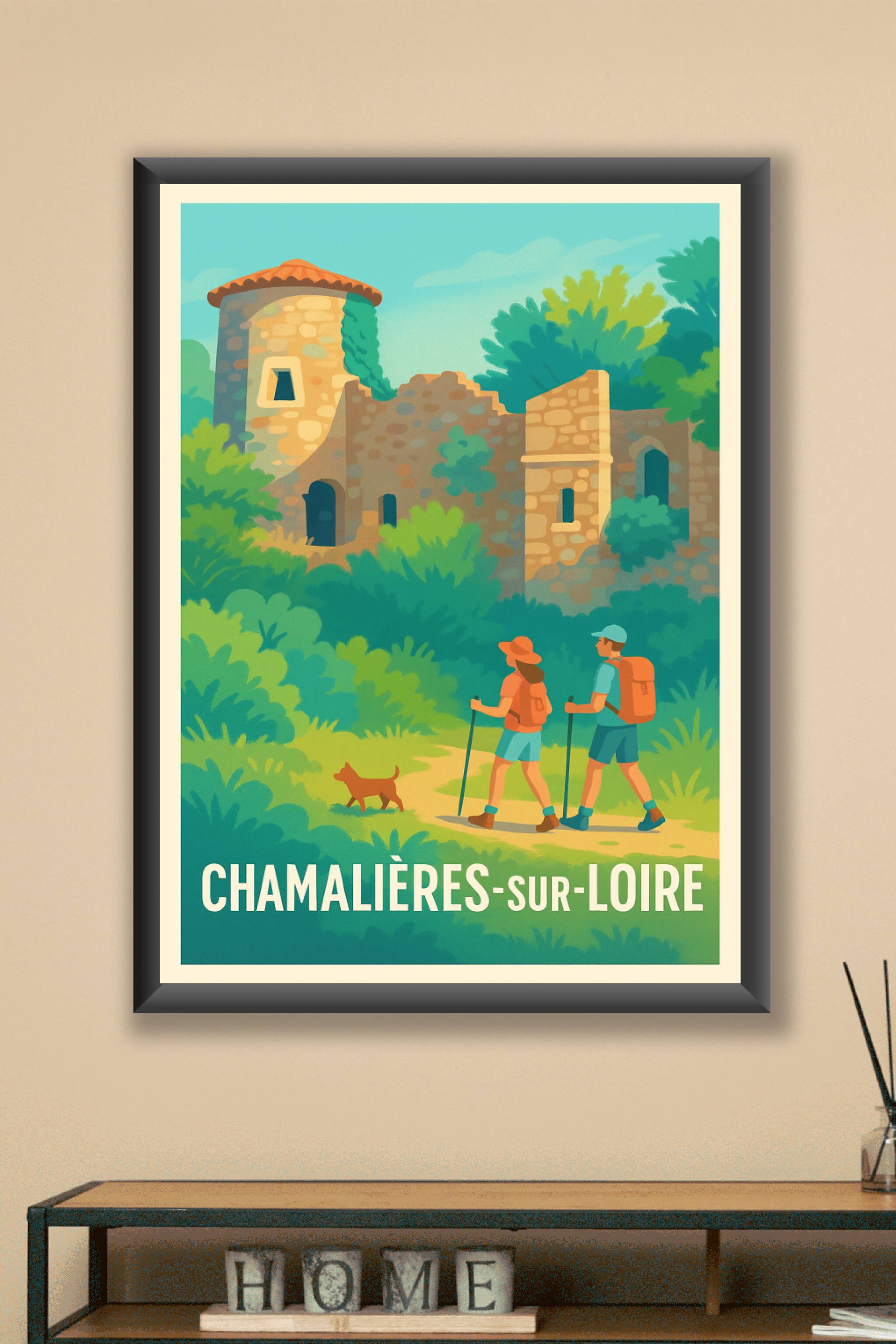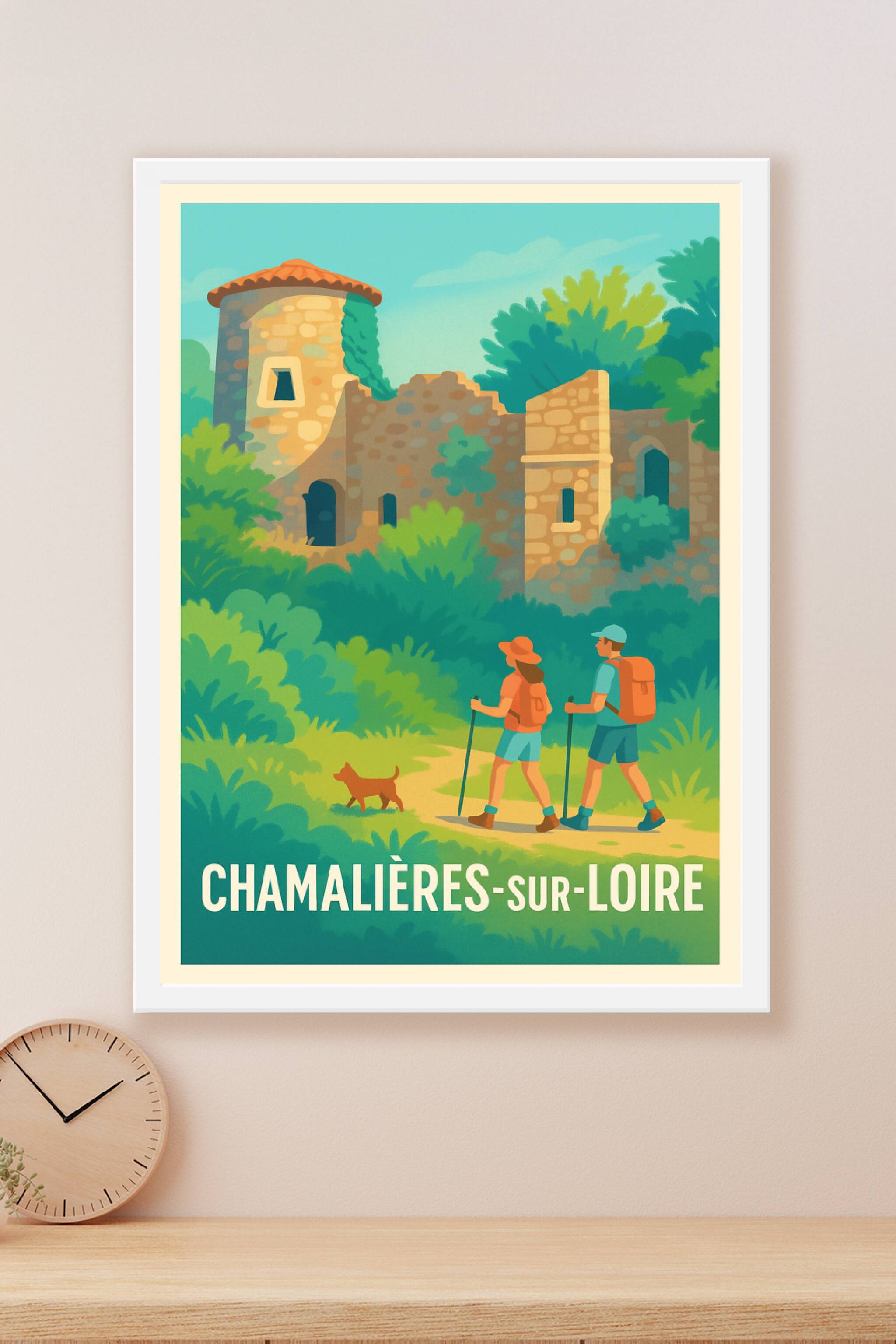 Découvrez la beauté paisible de Chamalières-sur-Loire avec cette affiche illustrée mettant en scène une balade au cœur d'un paysage verdoyant et d'anciennes ruines. Ce poster évoque l'harmonie entre nature et histoire, parfait pour les amateurs de randonnée et de découvertes culturelles. Imprimée en tirage "Fine Art" sur papier coton 305g, cette affiche bénéficie d'une qualité d'impression supérieure pour des couleurs éclatantes et une longue tenue. Disponible en formats du A1 au A4, avec ou sans cadre, elle s'intègre facilement à toutes les décorations d'intérieur. Apportez une touche d'authenticité et d'aventure à votre espace avec cette superbe création graphique, 100% fabriquée en France.