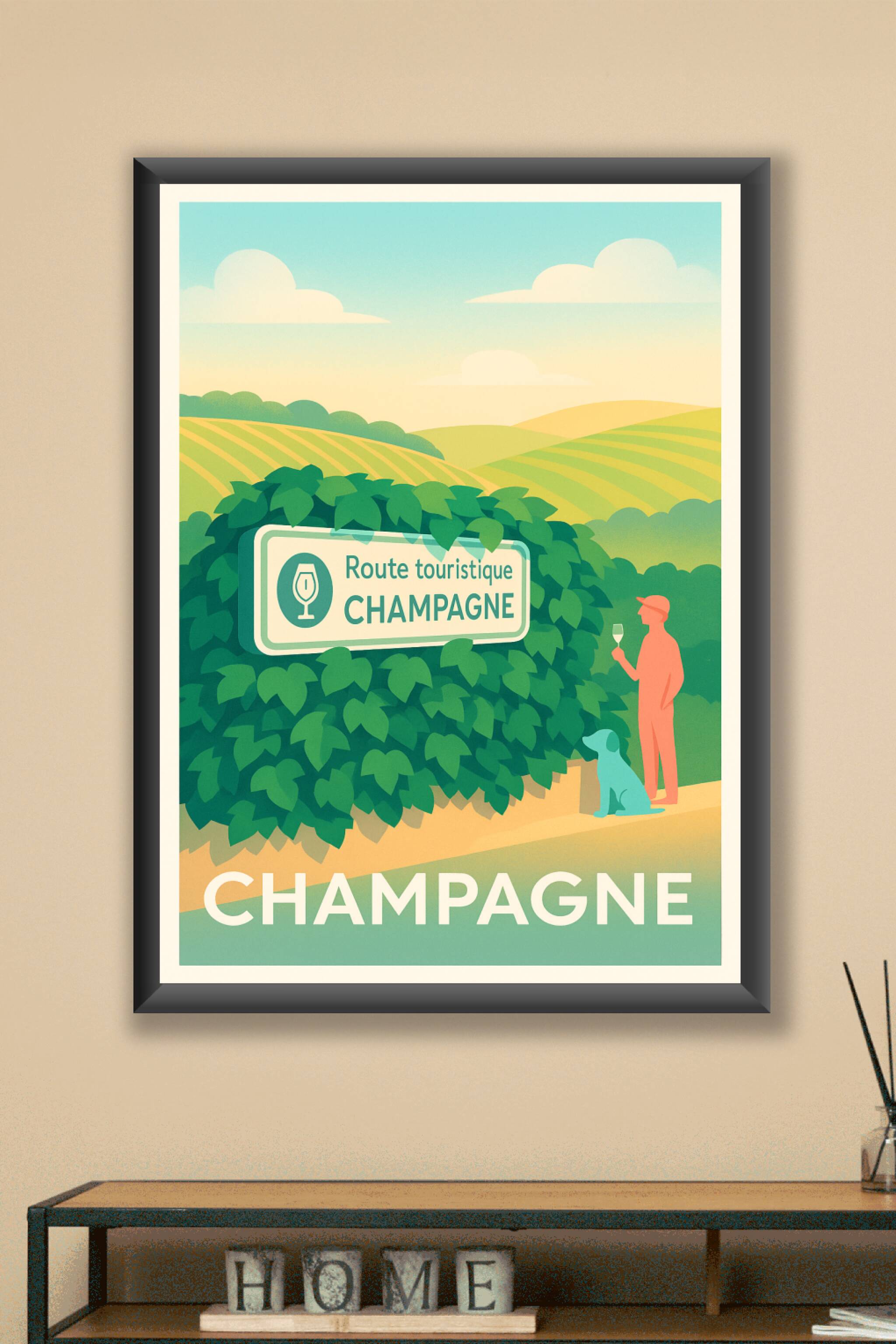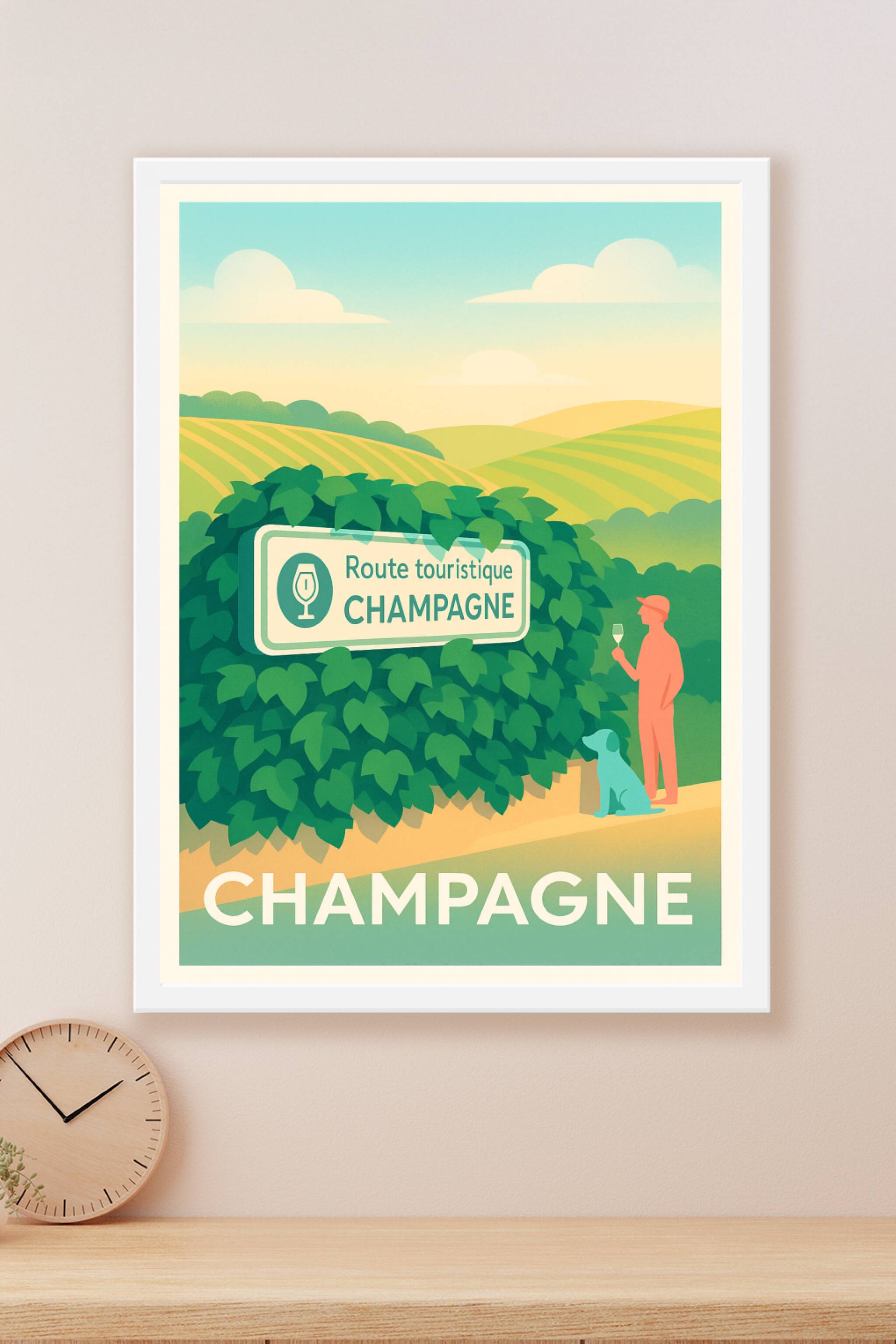 Découvrez la douceur de vivre et la beauté des paysages champenois avec cette affiche illustrée aux couleurs douces et apaisantes. Ce poster met en lumière la célèbre route touristique de Champagne, invitant à la dégustation et à la découverte de ses vignobles emblématiques. Imprimée en tirage "Fine Art" sur papier 305g coton, cette affiche offre une qualité d'impression exceptionnelle, parfaite pour sublimer votre intérieur. Disponible en formats A1 à A4, avec ou sans cadre, ce poster apportera une touche raffinée à votre déco ou fera un cadeau idéal pour les amateurs de la région Champagne.
