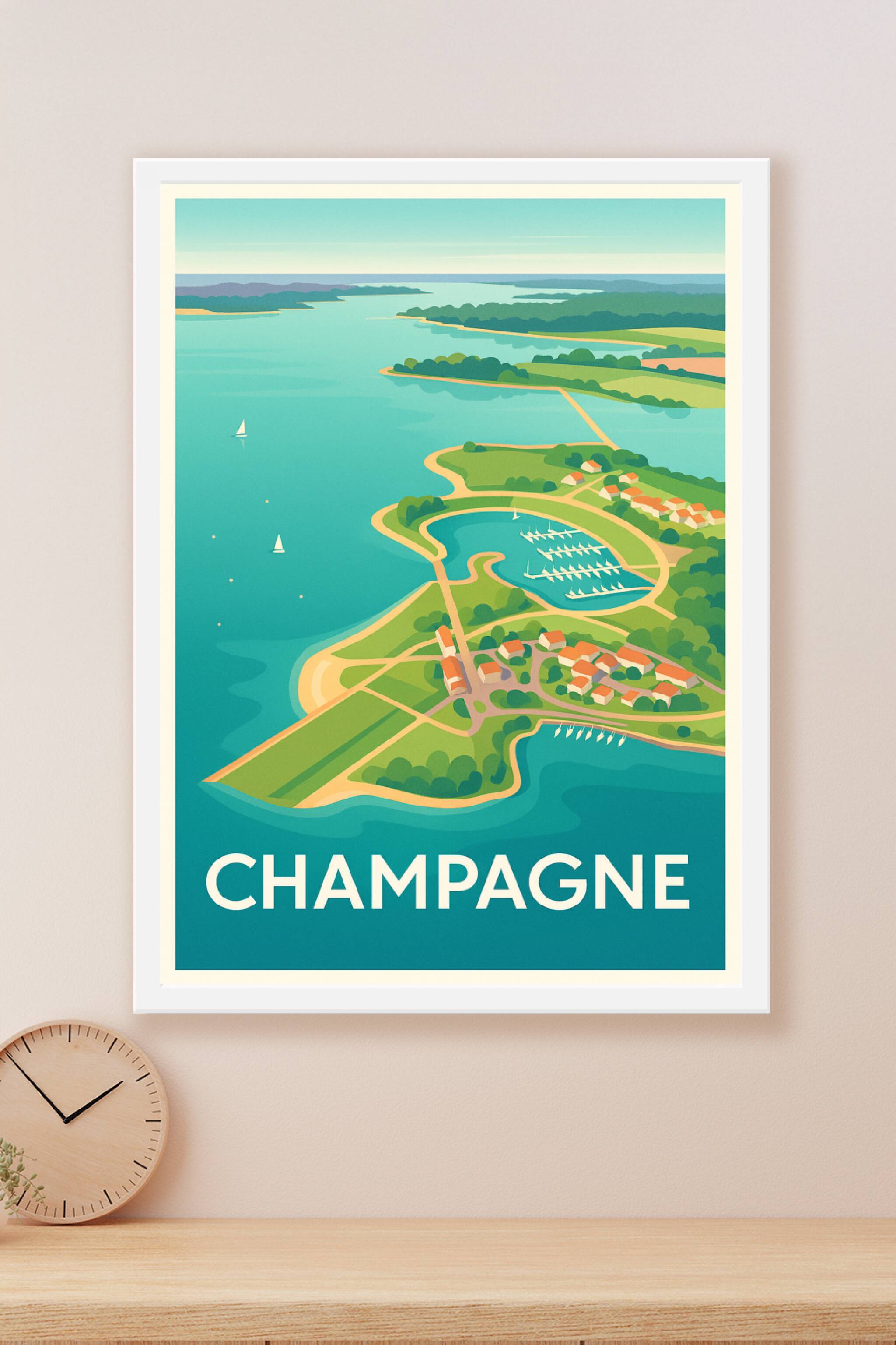 Découvrez la douceur et la sérénité du paysage champenois avec cette affiche illustrée inspirée par la nature et les horizons paisibles. Ce poster vous invite à contempler la beauté d’un village au bord de l'eau, avec ses voiliers et ses espaces verts, idéaux pour une décoration apaisante et raffinée.Cette affiche est proposée en tirage "Fine Art" sur un papier 305g coton garanti pour une qualité d'impression exceptionnelle et une tenue durable. Disponibles en formats A1 à A4, avec ou sans cadre, ces posters s’adaptent parfaitement à tous les intérieurs, que ce soit pour sublimer un salon, une chambre ou un bureau.Offrez-vous ou à vos proches un authentique souvenir de Champagne, imprimé avec soin en France, pour une ambiance élégante et naturelle chez vous.