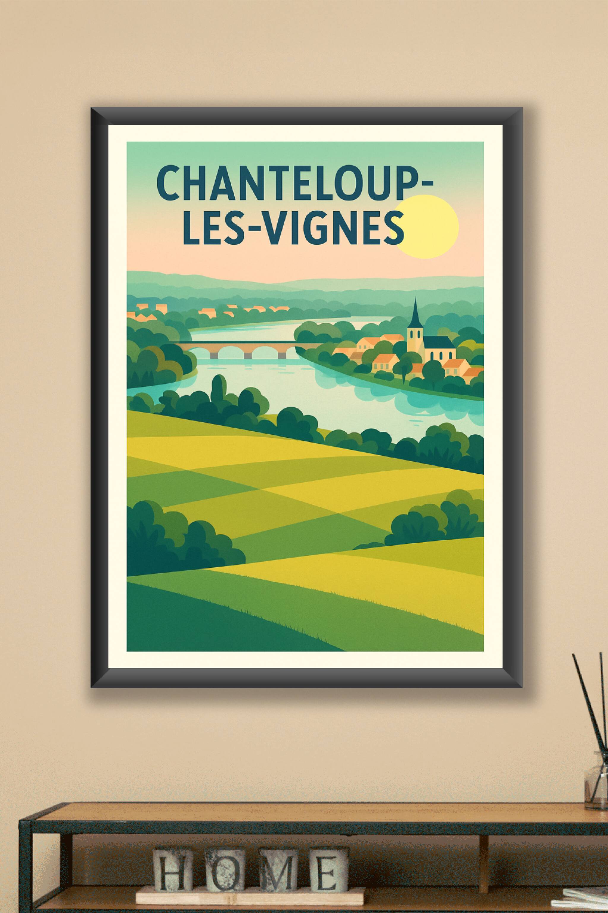 Découvrez la beauté paisible de Chanteloup-les-Vignes avec cette affiche au style vintage revisité, mettant en scène ses paysages verdoyants, la rivière tranquille et les charmants villages. Ce poster est imprimé en tirage "Fine Art" sur papier 305g coton pour garantir une qualité d'impression exceptionnelle et une longévité optimale. Disponible en plusieurs formats, de A1 à A4, avec ou sans cadre, il s'adapte parfaitement à tous les intérieurs, apportant une touche de sérénité et d'authenticité. Offrez-vous cette affiche de qualité premium entièrement fabriquée en France pour sublimer votre décoration ou pour faire un cadeau unique aux amoureux des paysages français.
