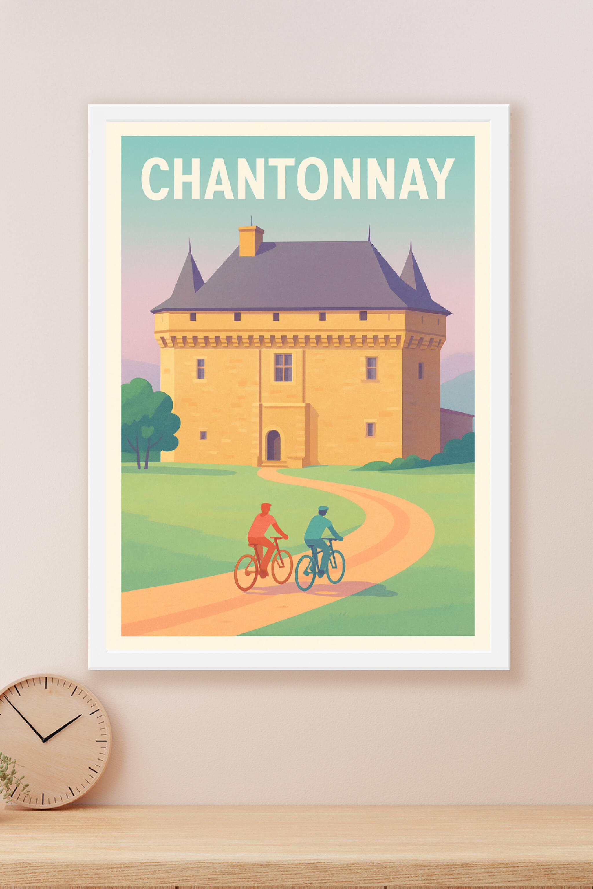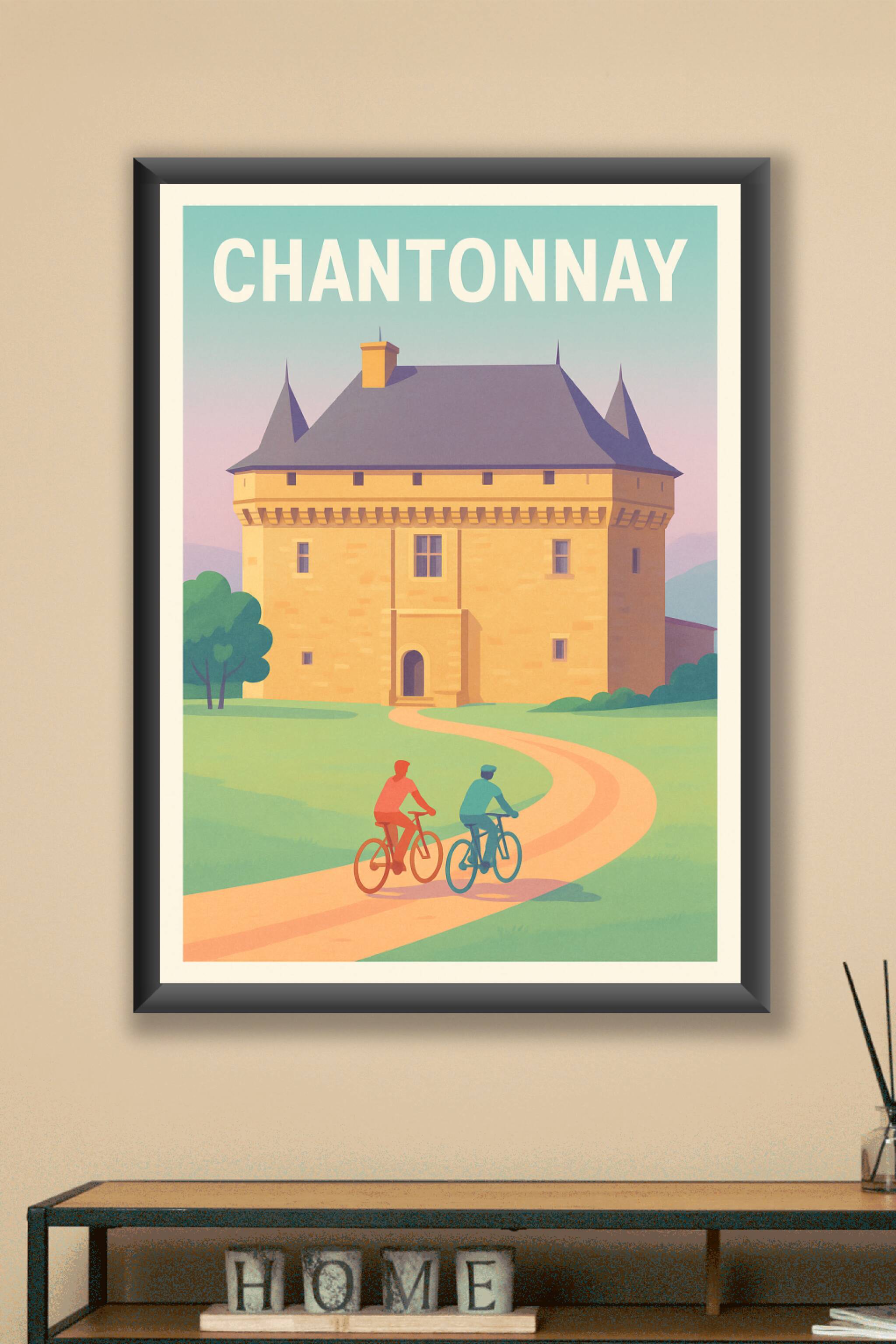 Découvrez la charme douce et tranquille de Chantonnay à travers cette affiche illustrée, mettant en scène son architecture historique et ses paysag...