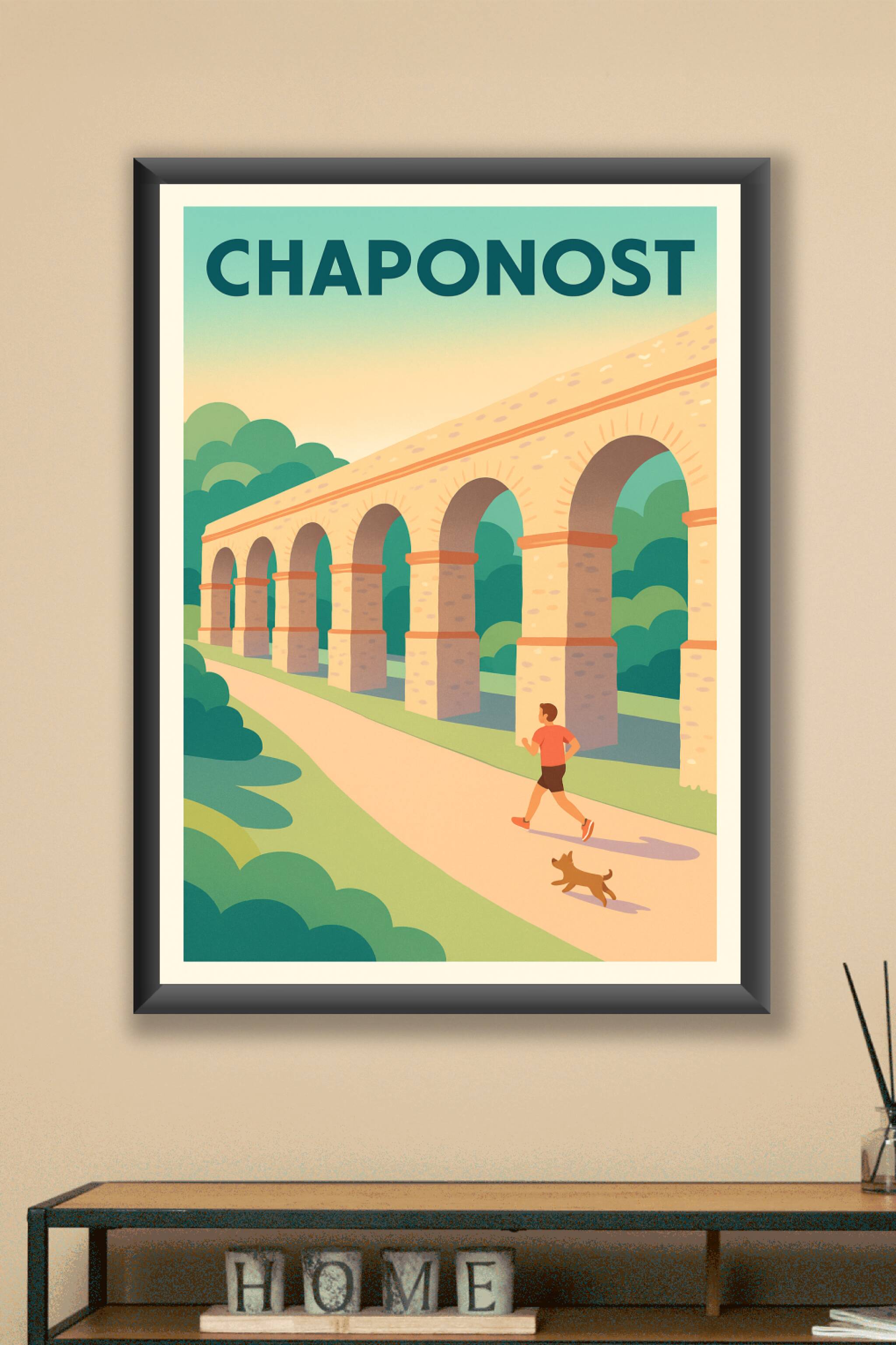 Découvrez l'élégance intemporelle de Chaponost avec cette affiche illustrée mettant à l'honneur son aqueduc emblématique, baigné d'une lumière douc...
