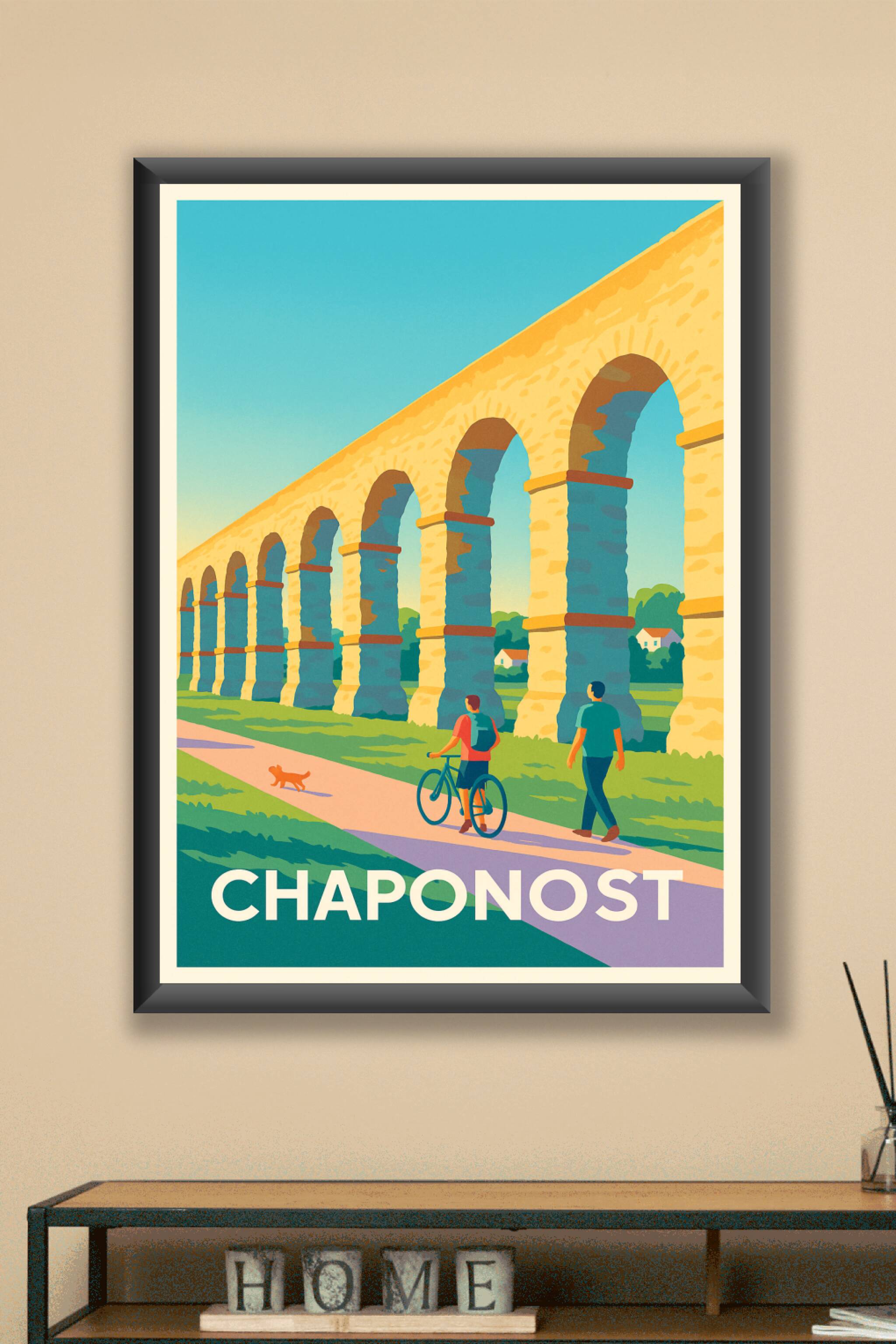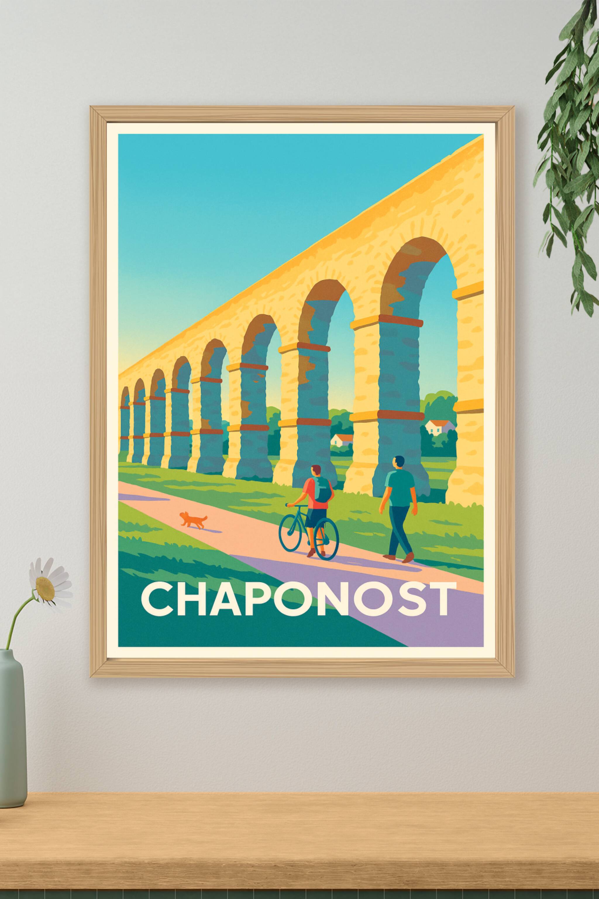 Découvrez la douceur de vivre en plein air avec cette affiche illustrée représentant l'aqueduc de Chaponost, un symbole patrimonial et naturel de l...