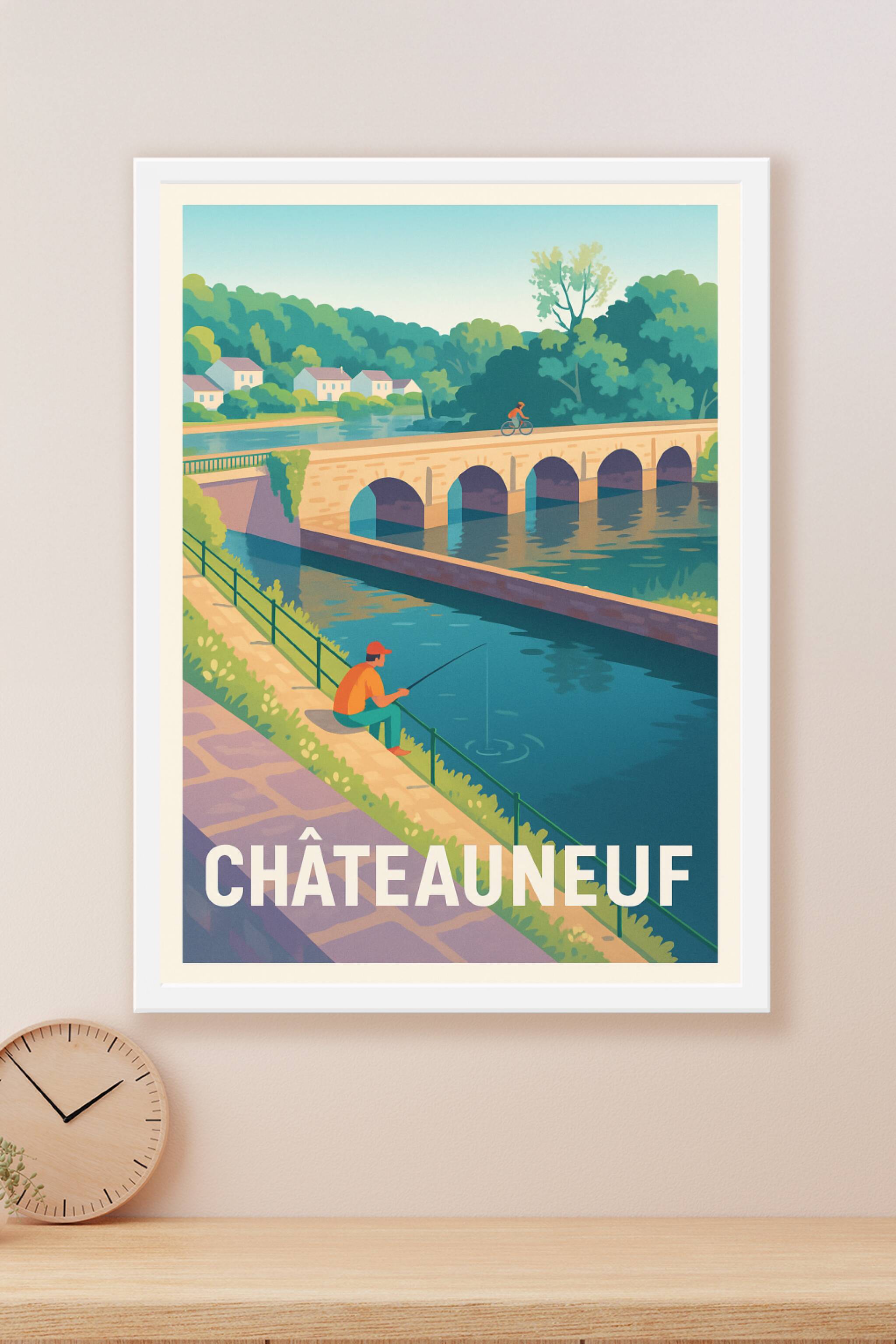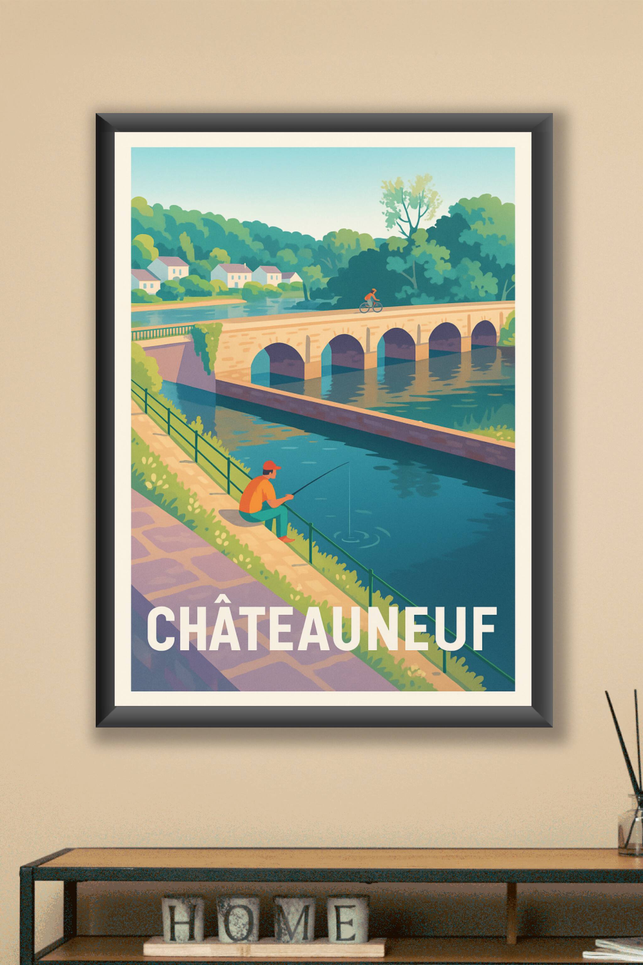 Apportez une touche de sérénité et de douceur de vivre dans votre intérieur avec cette magnifique affiche de Châteauneuf, illustrant un moment pais...