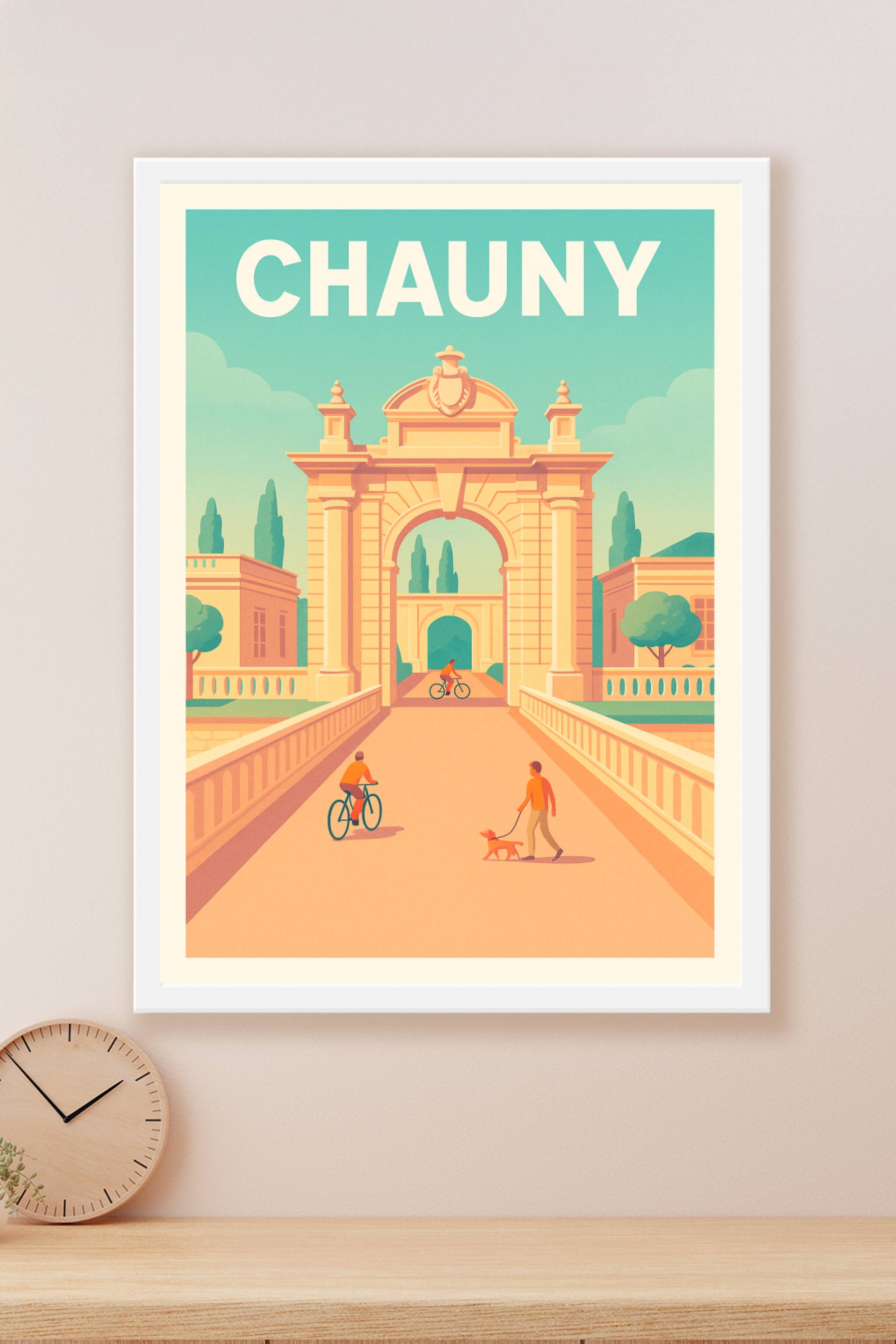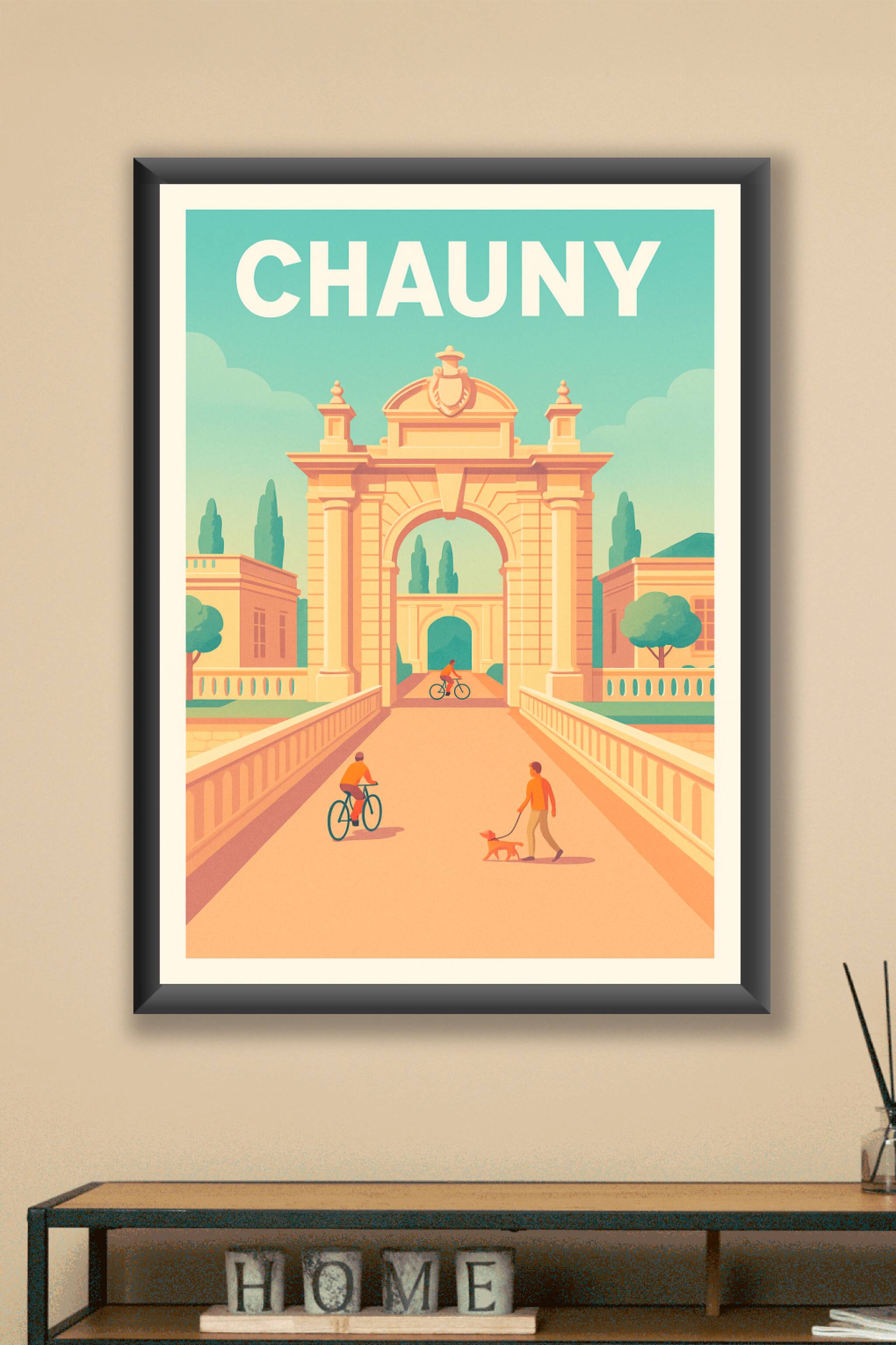 Découvrez l'élégance intemporelle de Chauny à travers cette affiche au style épuré et chaleureux. Le poster met en scène un magnifique arc architec...