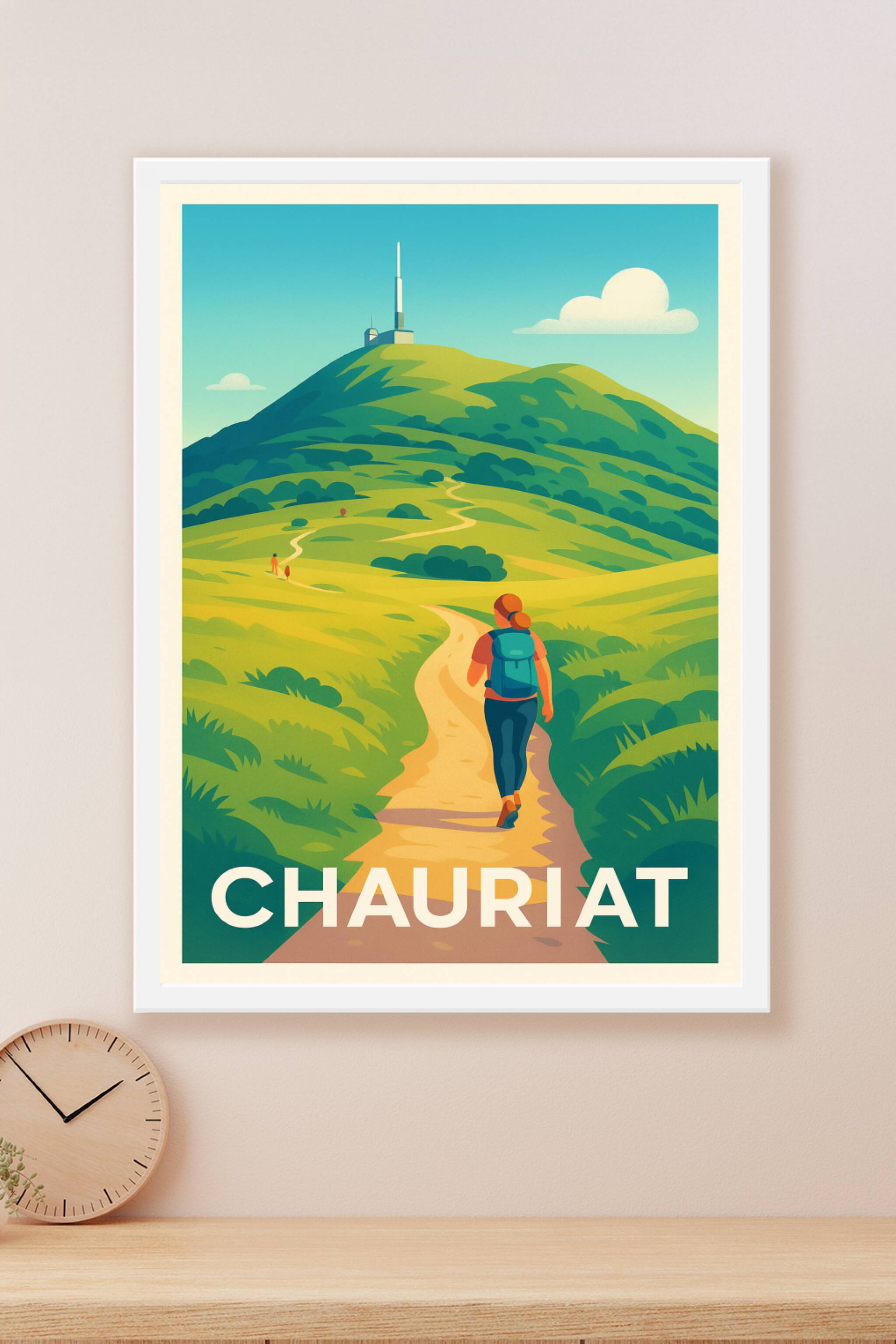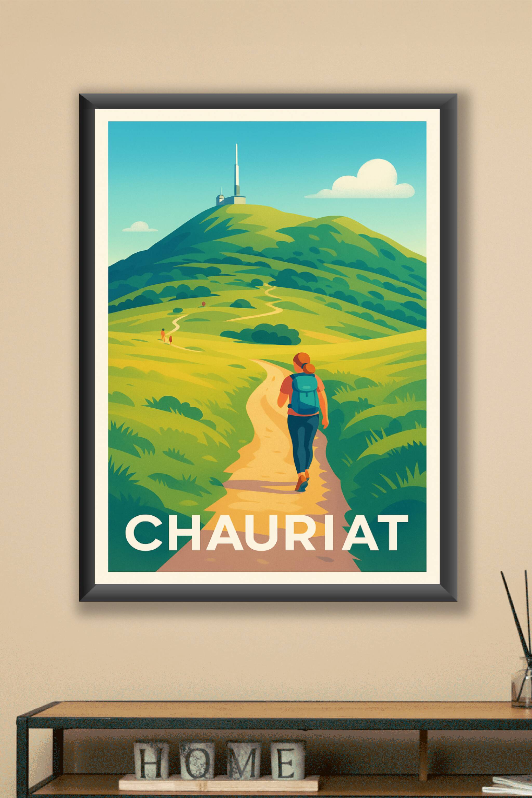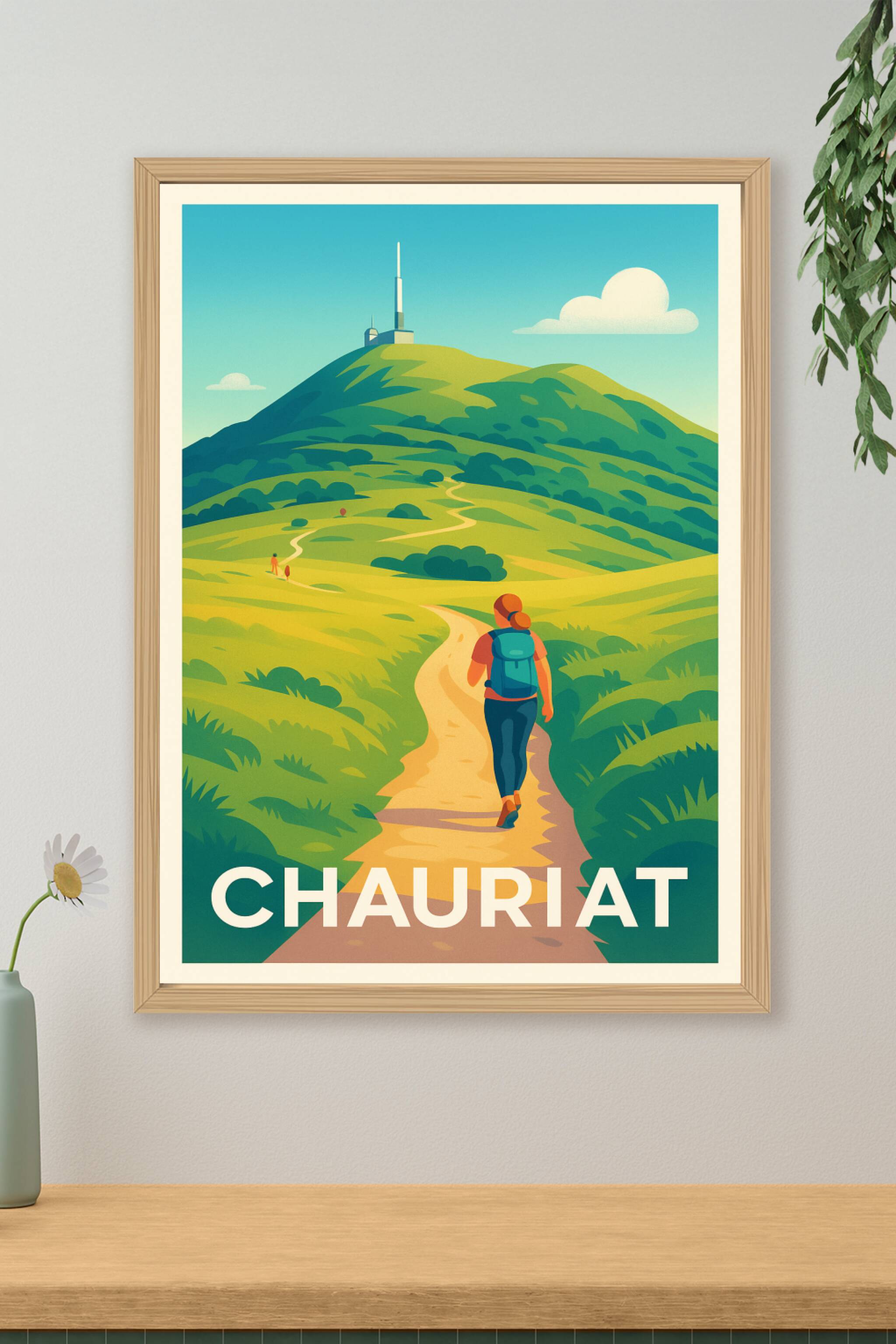 Faites une pause et laissez-vous séduire par ce poster représentant la commune de Chauriat, où les chemins s'entrelacent dans une nature luxuriante...