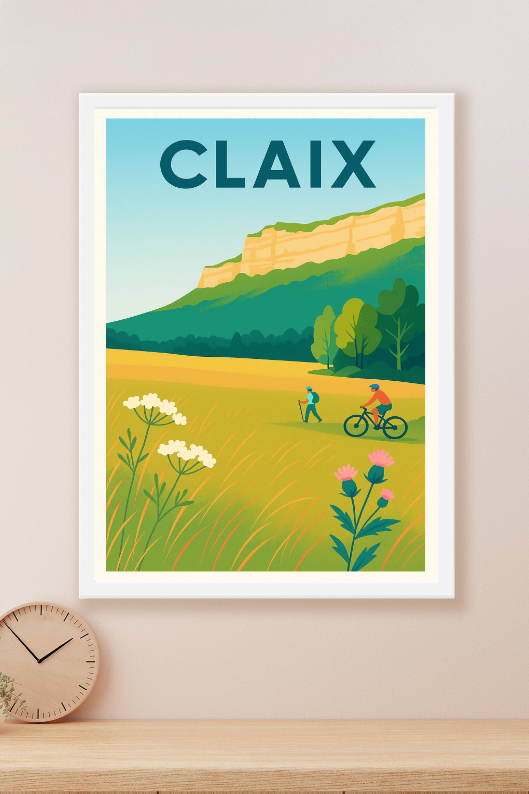 Découvrez la beauté paisible de Claix à travers cette affiche colorée et vivante qui capture l'essence des paysages champêtres et des activités de ...