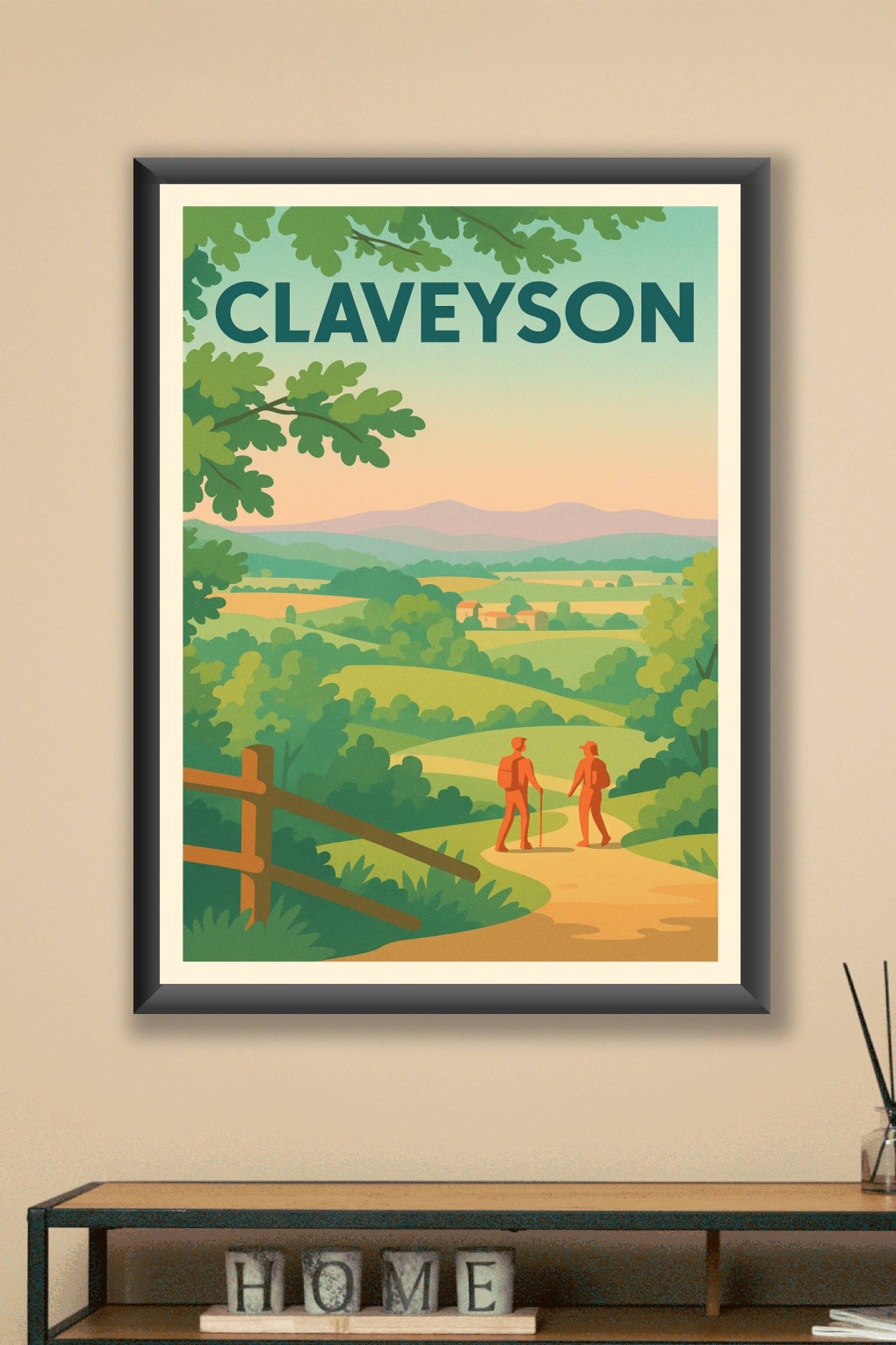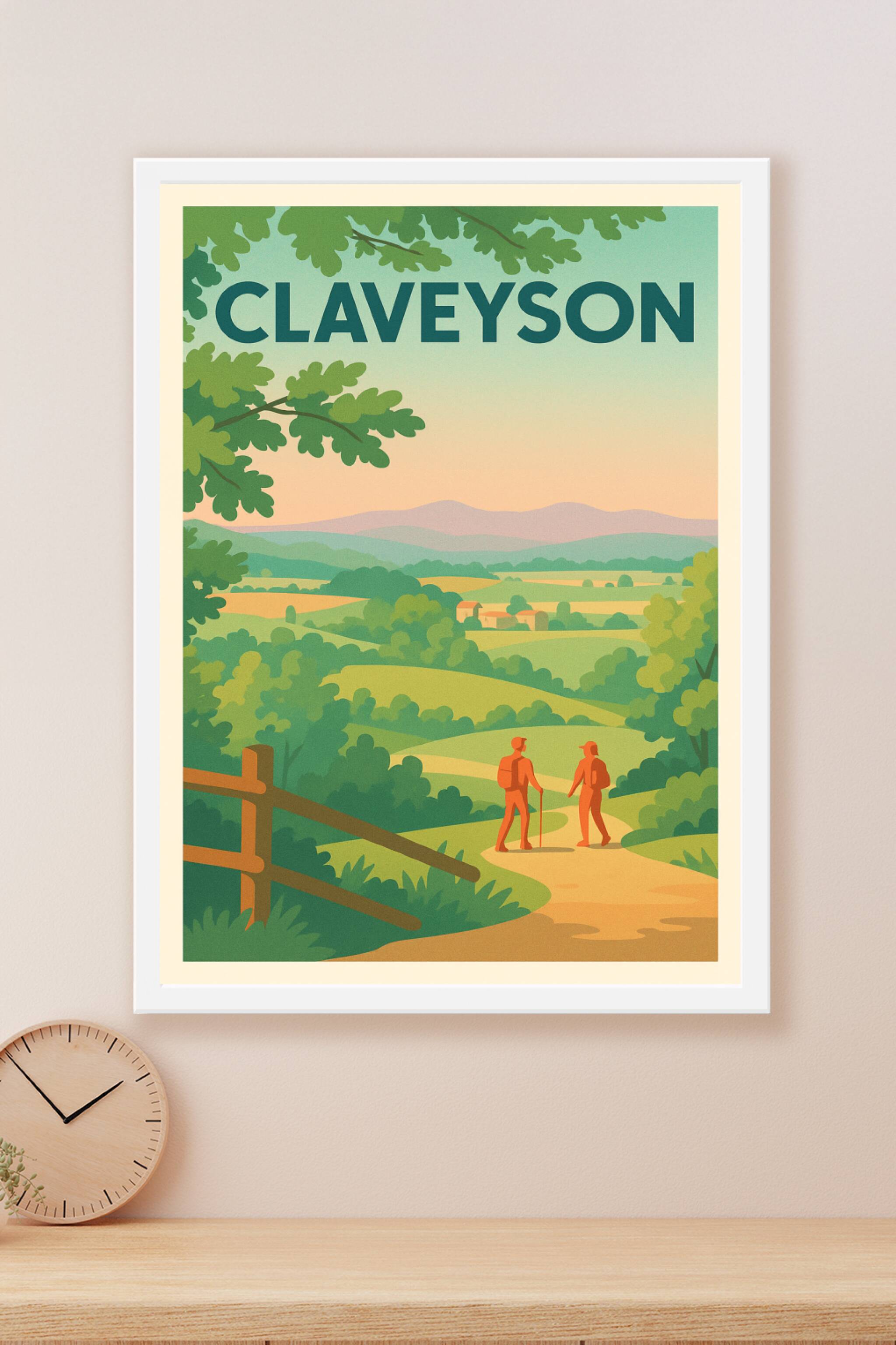 Découvrez la sérénité de la campagne de Claveyson avec ce poster au design rétro, évoquant des balades paisibles au milieu des collines verdoyantes...