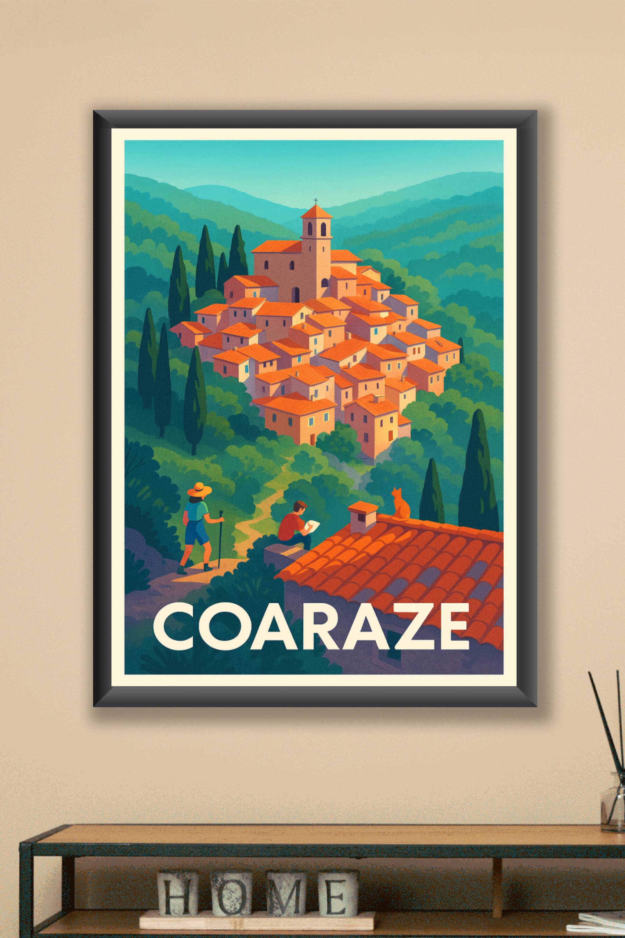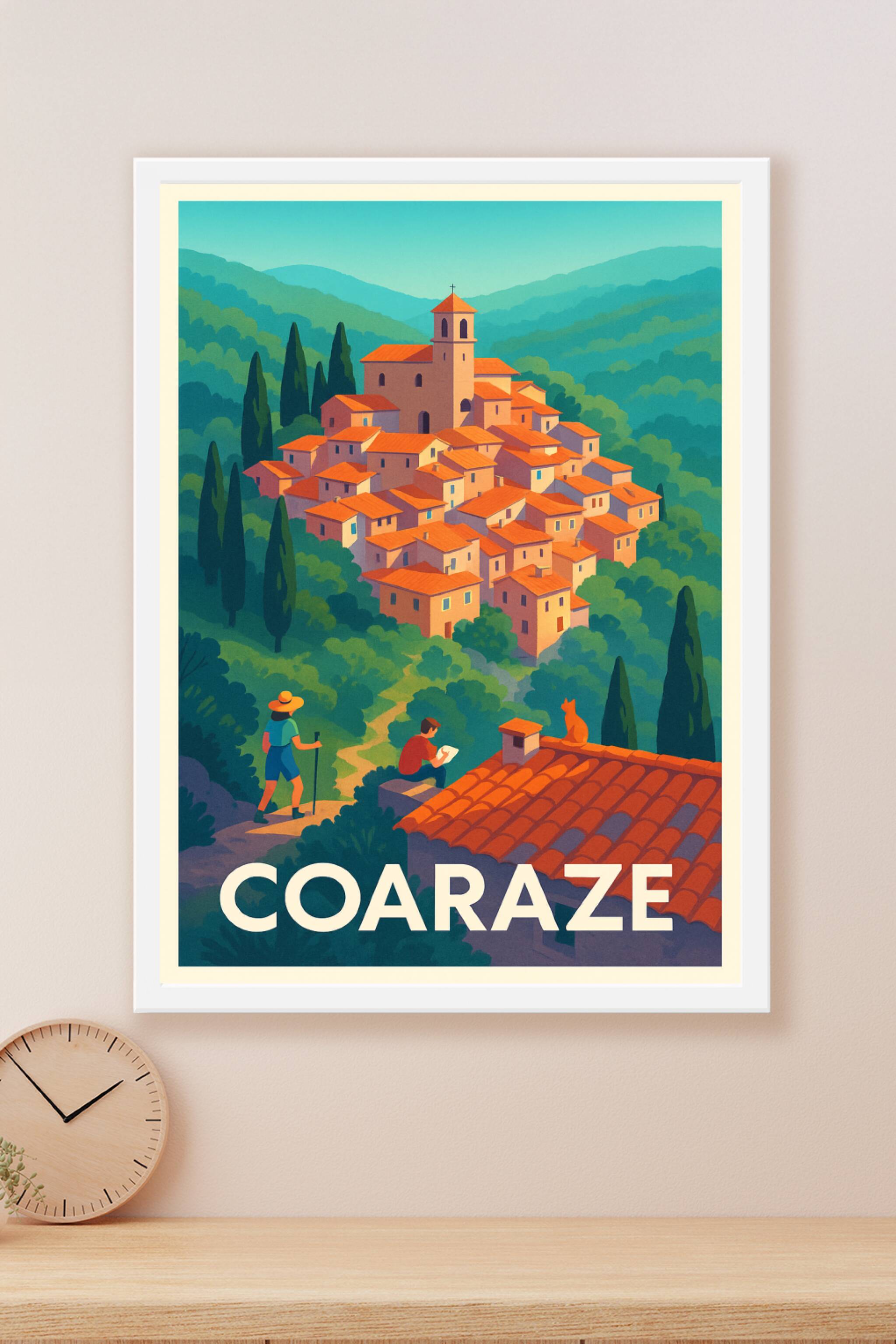 Découvrez le charme authentique de Coaraze avec cette affiche illustrée mettant en scène ce village typique niché au cœur des montagnes. L'ambiance...