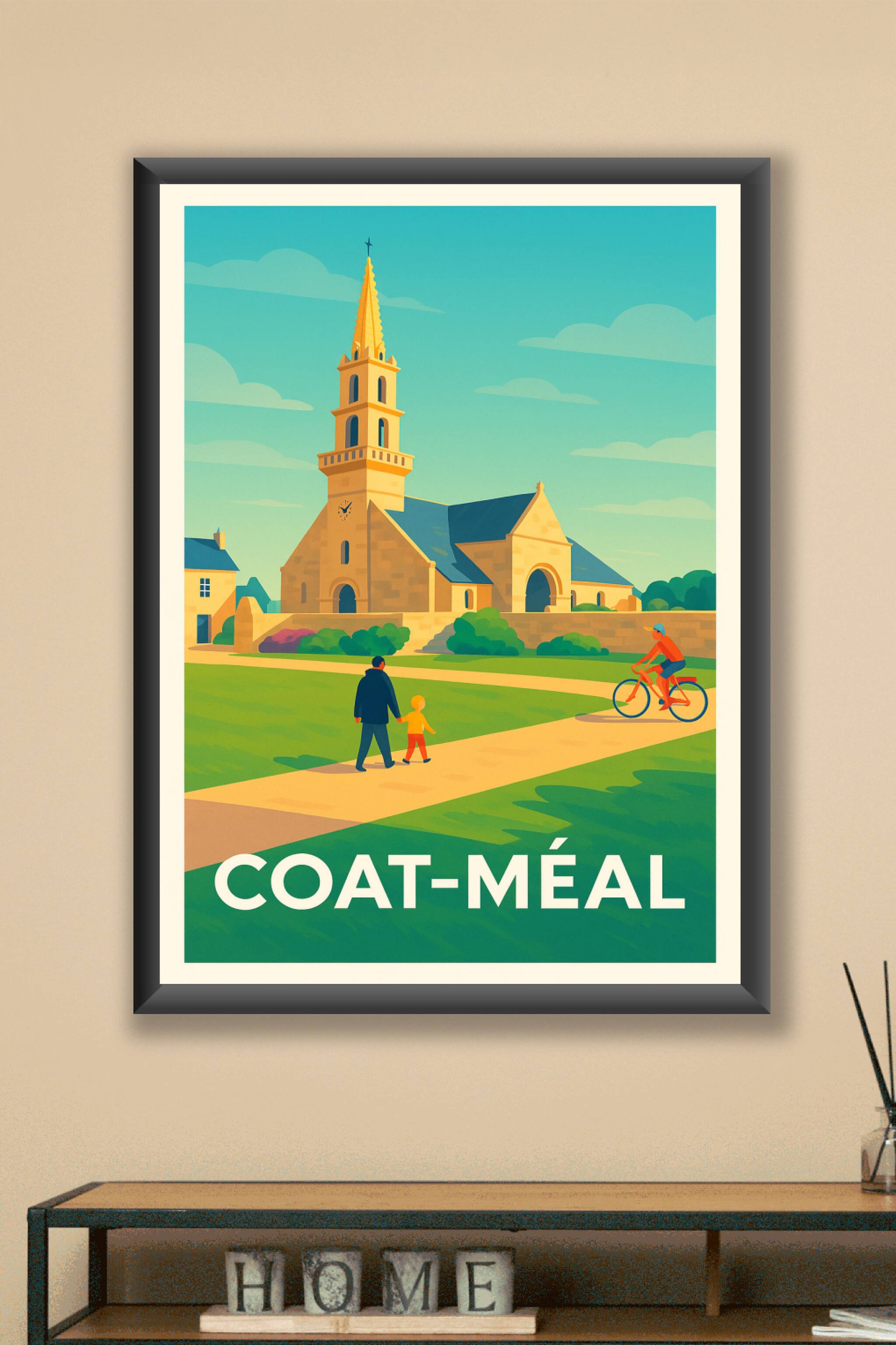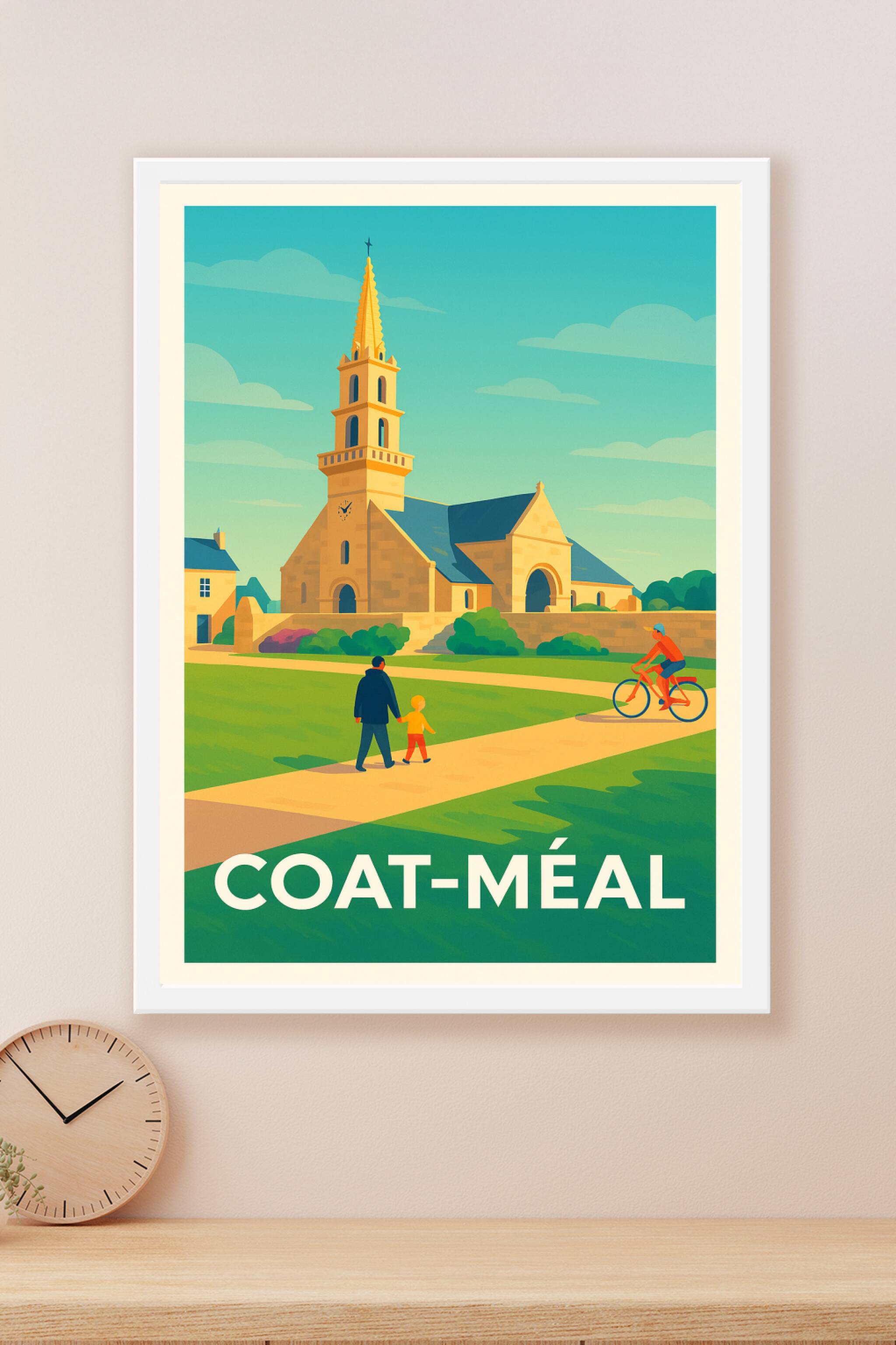 Découvrez l'authenticité paisible de Coat-Méal avec cette affiche illustrée mettant en scène son architecture emblématique et ses espaces verts apa...