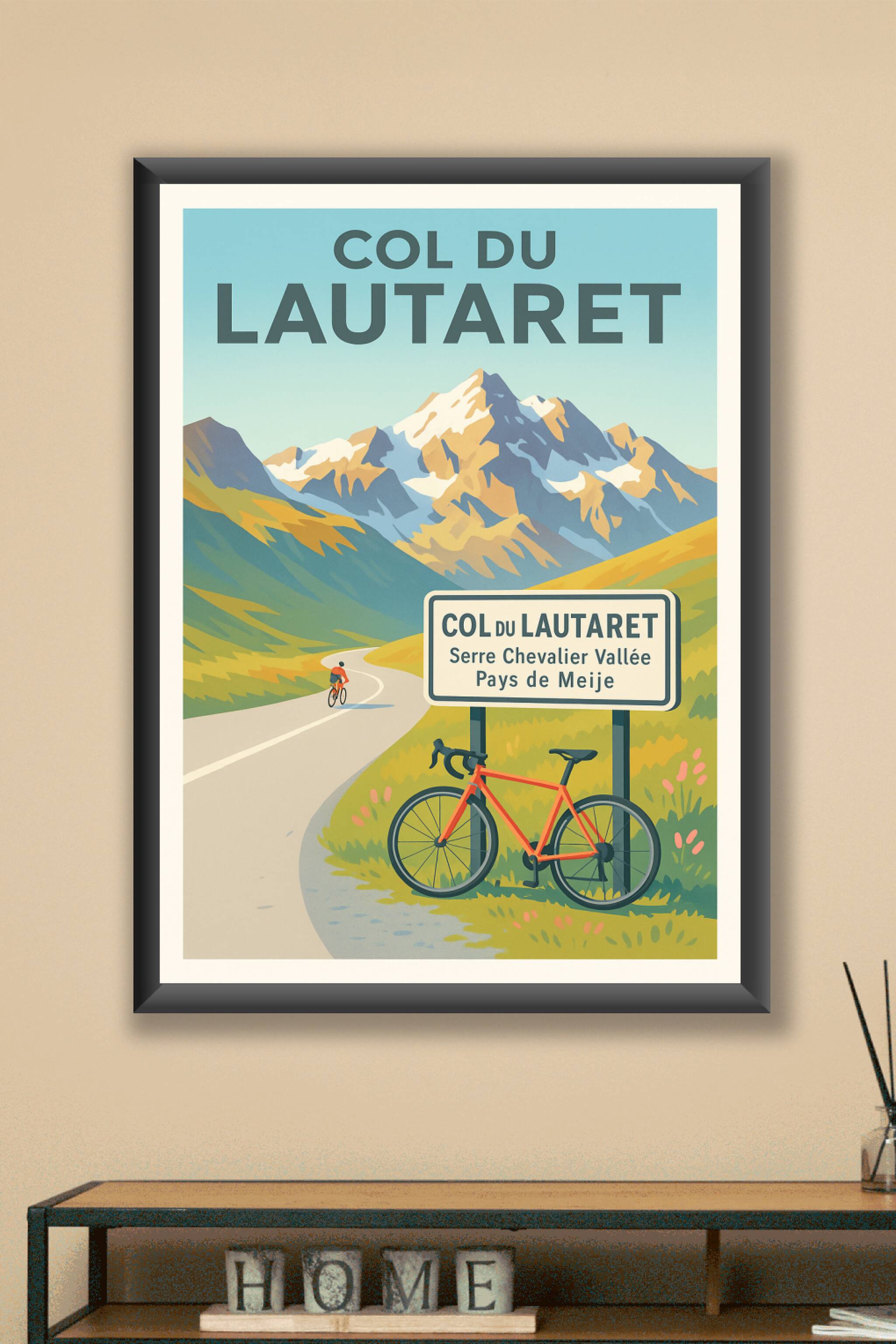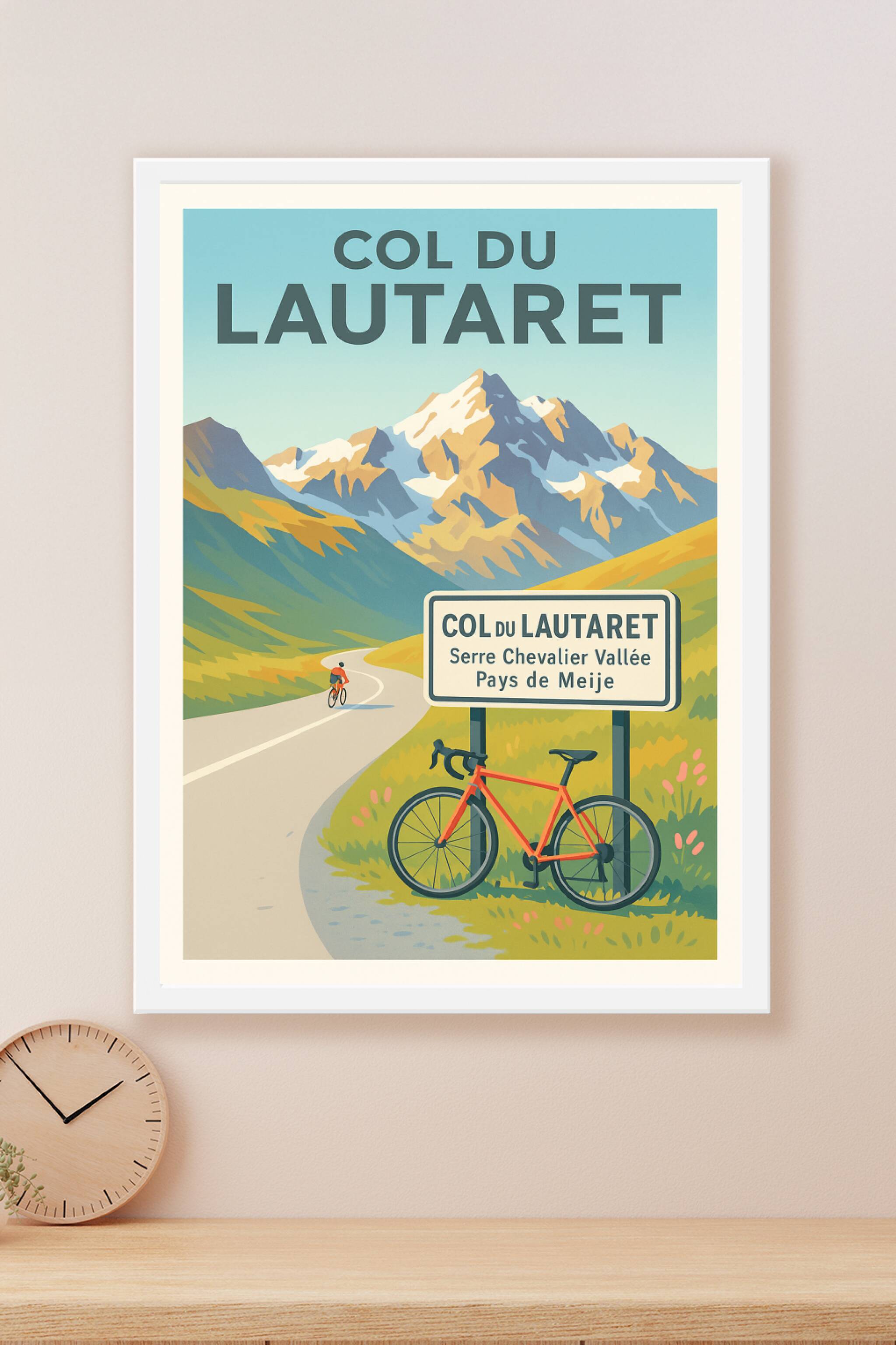 Apportez un souffle d'air frais montagnard à votre maison ou offrez ce poster Col du Lautaret aux passionnés de cyclisme et de grands espaces.
