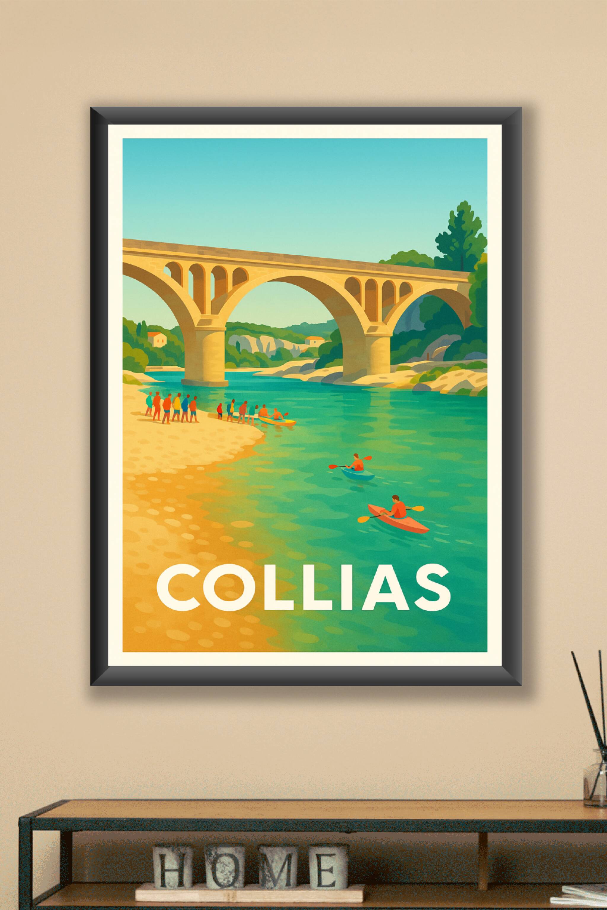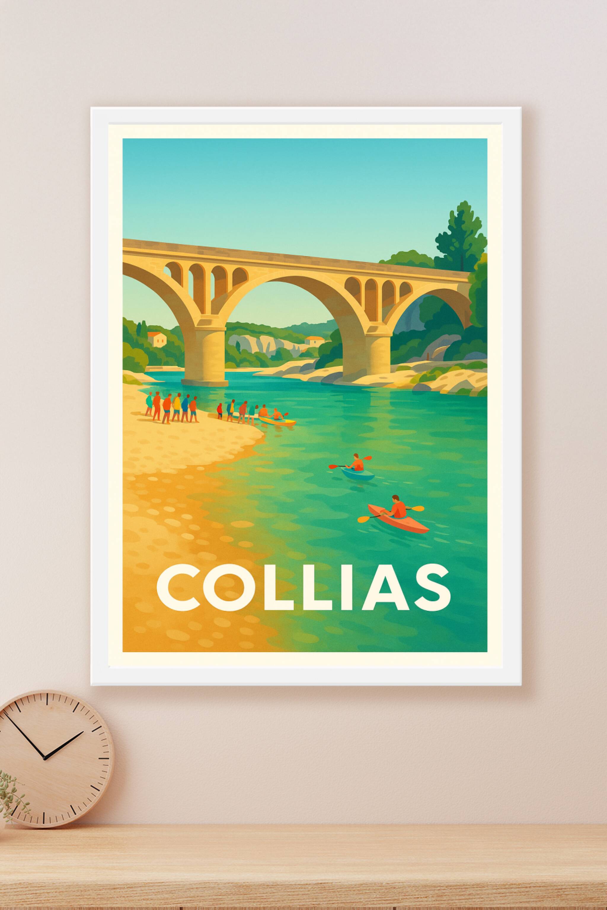 Découvrez la douceur de vivre provençale avec cette affiche illustrée de Collias, mettant en scène le célèbre pont et les eaux cristallines où kaya...