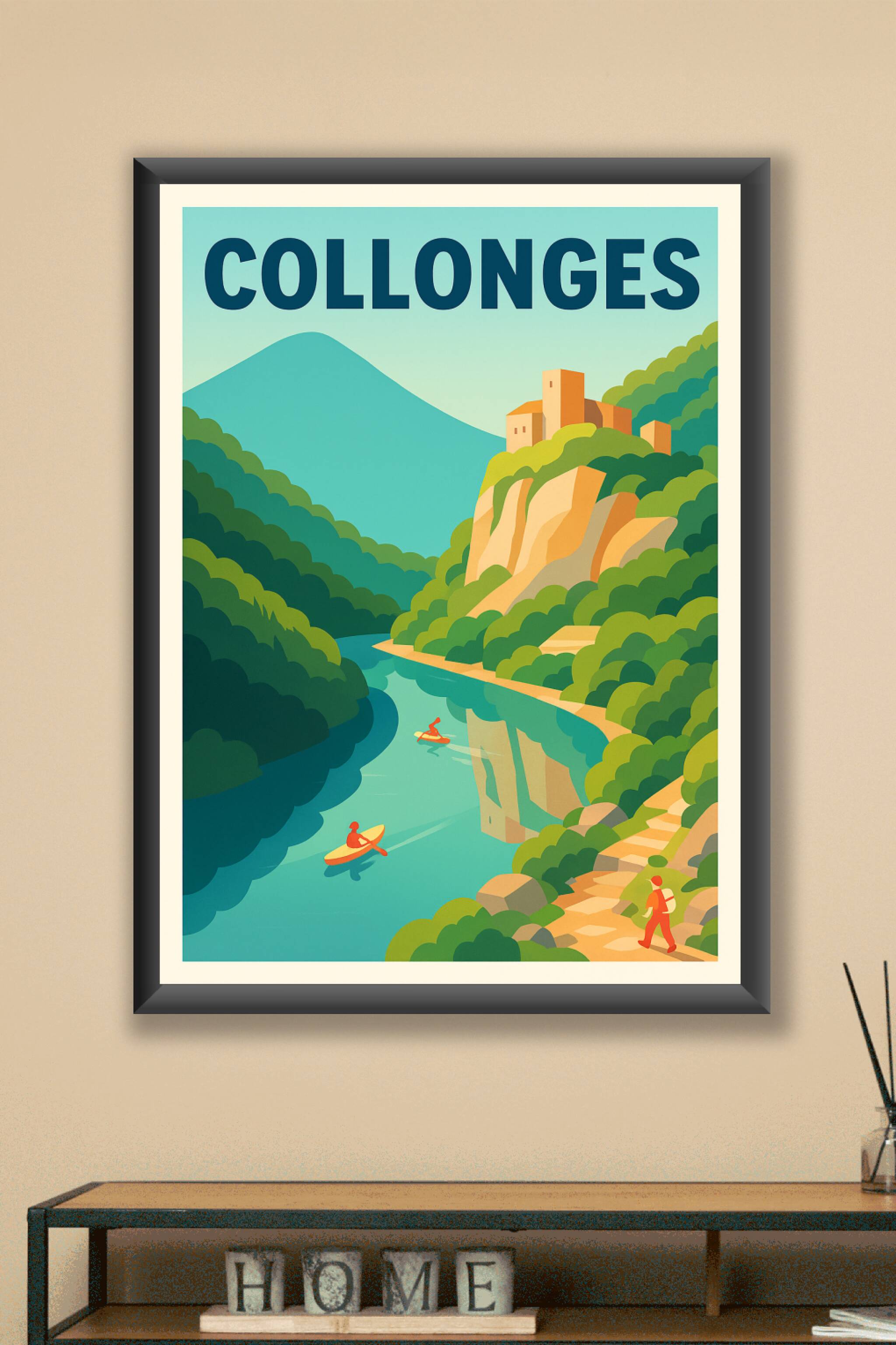 Découvrez la sérénité de Collonges à travers cette affiche illustrée mettant en scène un paysage naturel majestueux, avec ses collines verdoyantes,...