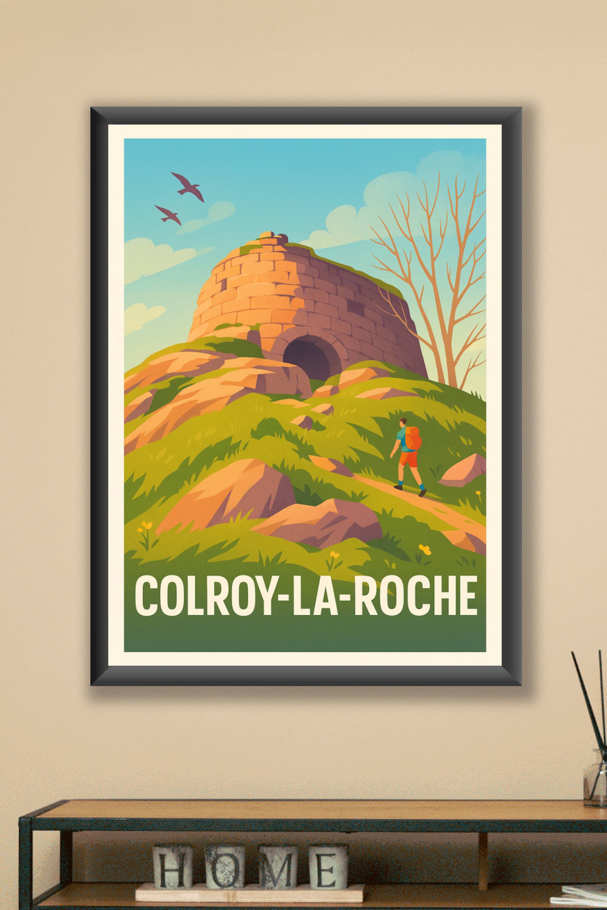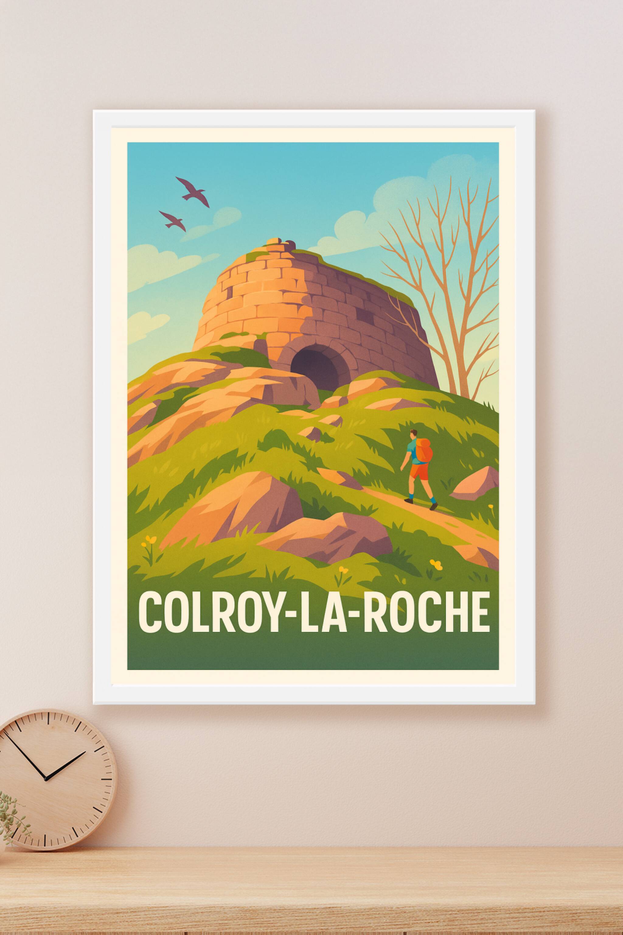Découvrez l'esprit d'exploration et la beauté naturelle de Colroy-la-Roche avec cette affiche illustrée mettant en scène un randonneur s'approchant...