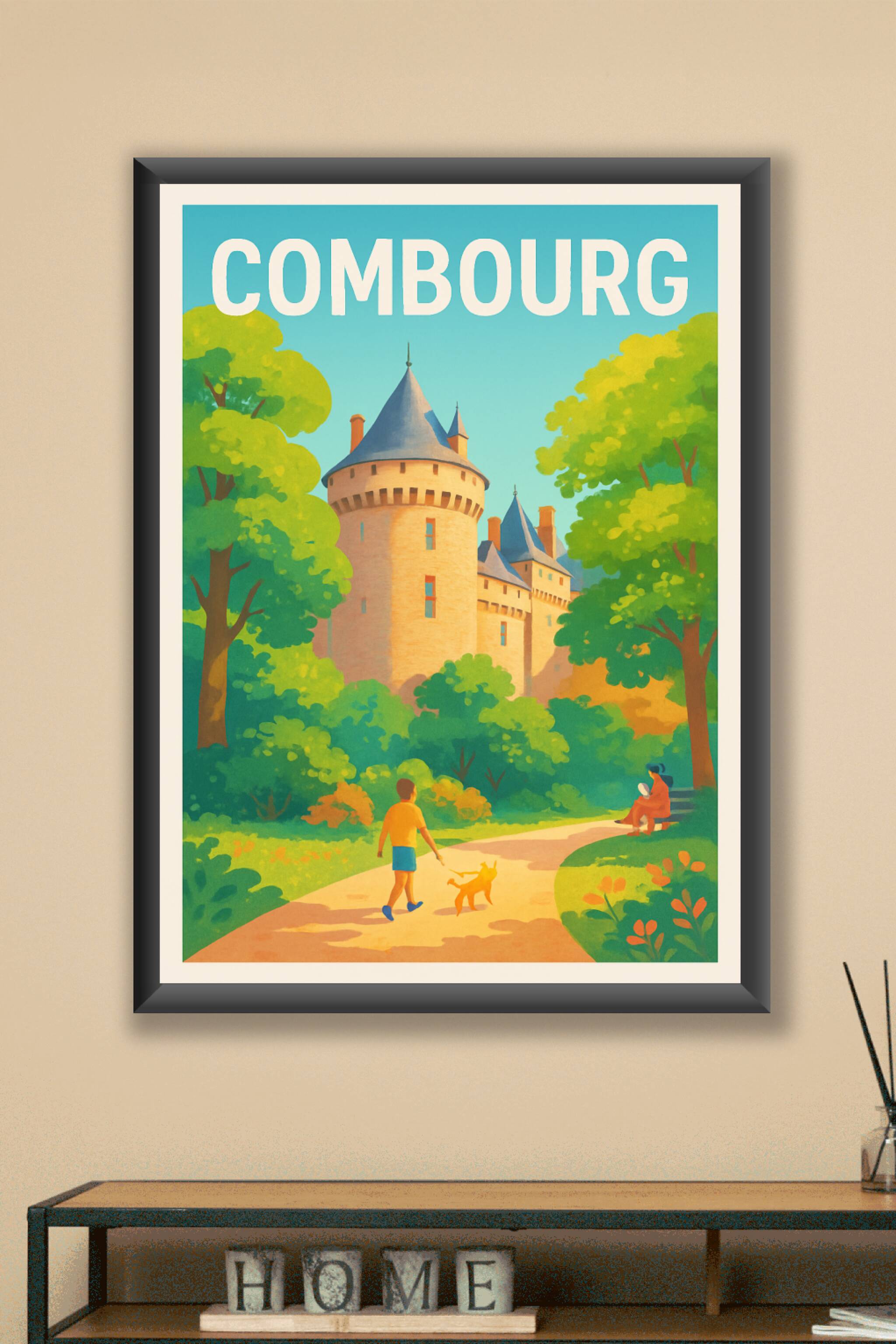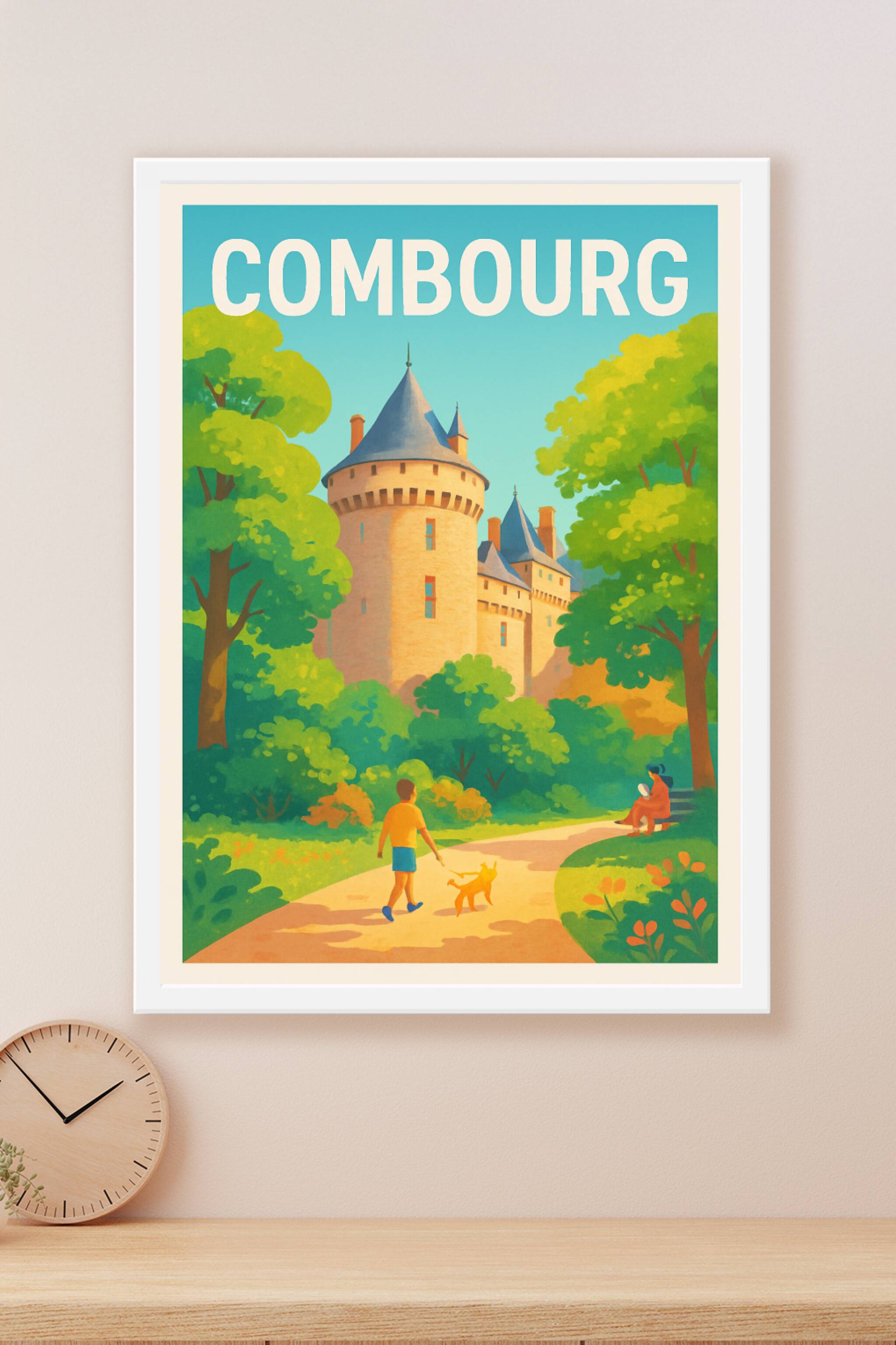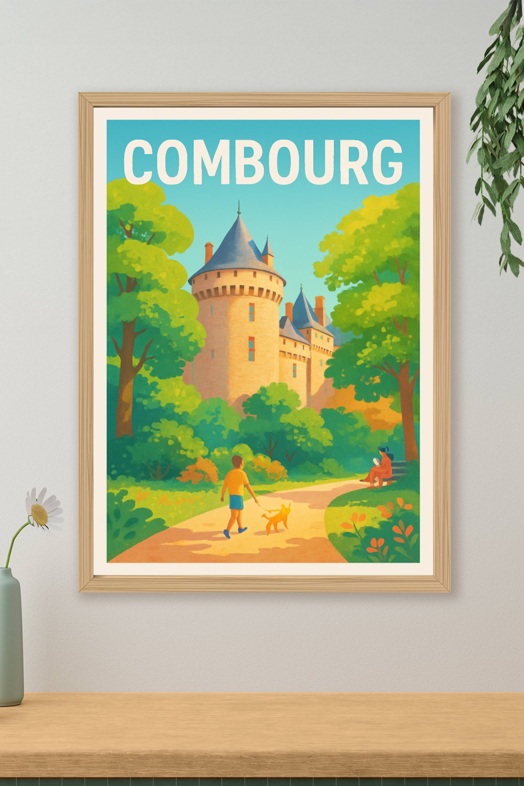 Laissez-vous transporter par cette affiche illustrée qui capture la douce ambiance d'une promenade au cœur de Combourg, avec son emblématique château médiéval entouré de verdure luxuriante. Ce poster invite à revivre la magie des lieux et à enrichir votre décoration intérieure avec une touche d'histoire et de nature. Imprimé en tirage "Fine Art" sur papier 305g coton, ce poster garantit une restitution des couleurs éclatantes et une qualité d'impression haut de gamme. Disponible en formats A1 à A4, avec ou sans cadre, cette affiche est un choix idéal pour embellir votre espace ou offrir un souvenir élégant des charmes bretons.