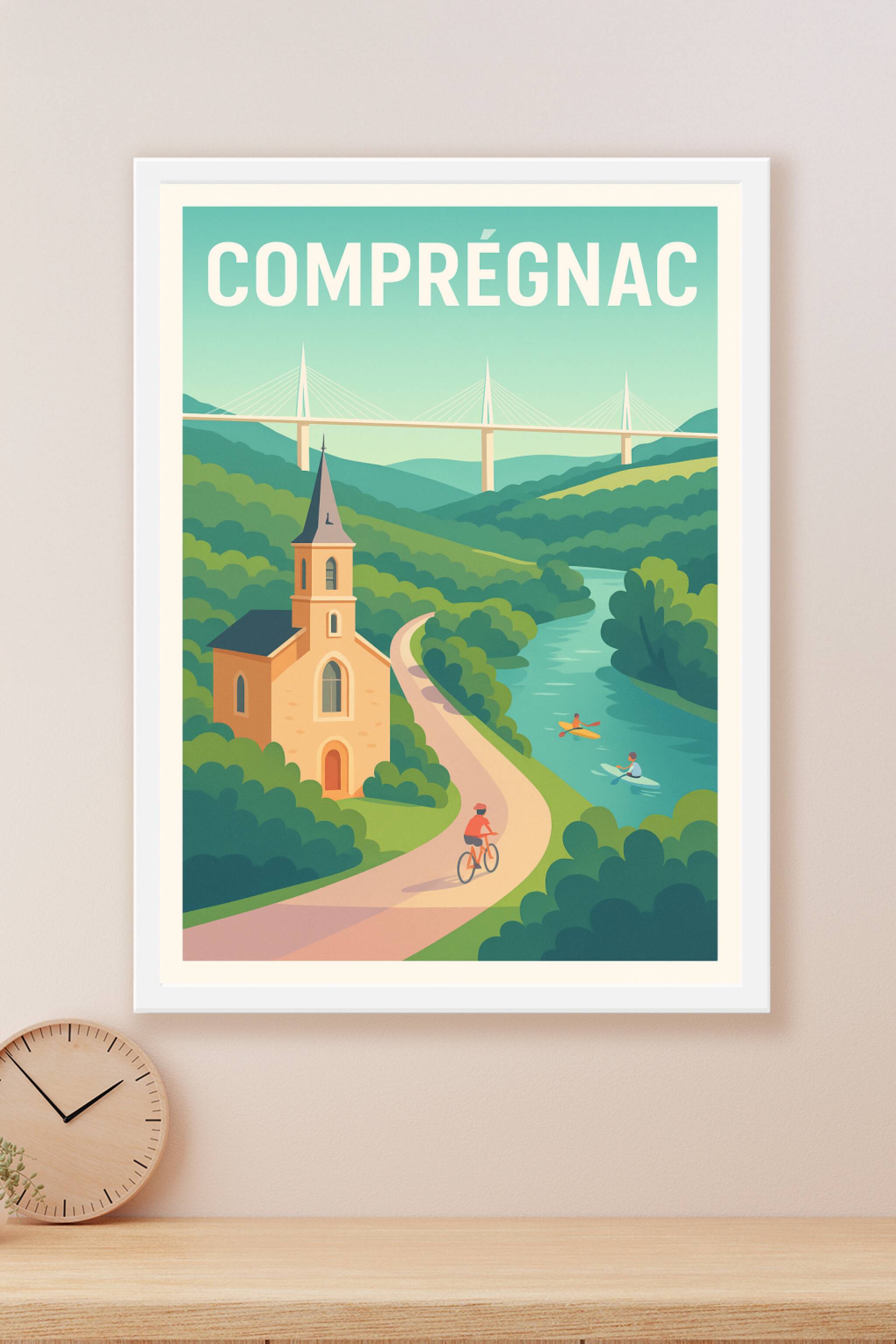 Découvrez la sérénité de Compreignac avec cette affiche au style rétro illustrant une scène paisible entre nature et activité de plein air. Un cycliste longe le sentier au bord de la rivière, tandis que des kayakistes profitent des eaux calmes sous le majestueux viaduc en arrière-plan. Ce poster est imprimé en tirage "Fine Art" sur un papier 305g coton haut de gamme, garantissant des couleurs éclatantes et une durabilité exceptionnelle. Disponible en formats A1 à A4, avec ou sans cadre, cette affiche apportera une touche d'évasion et de fraîcheur à votre intérieur. Profitez d'une impression premium et 100% fabriquée en France pour orner votre décoration ou offrir un souvenir authentique de la région de Compreignac.