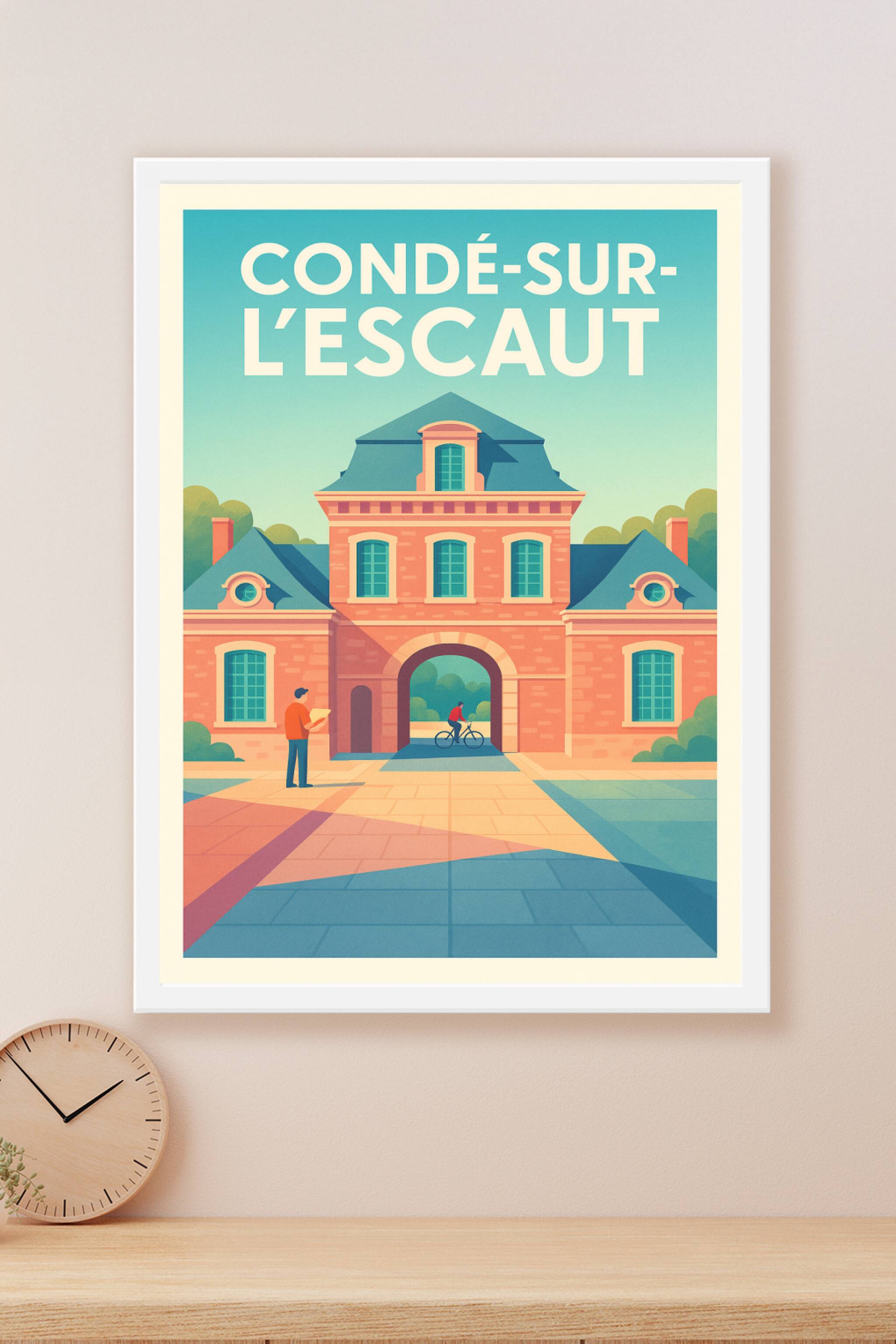 Découvrez l'élégance intemporelle de Condé-sur-l'Escaut à travers cette affiche au style graphique épuré et lumineux. Ce poster met en valeur une a...