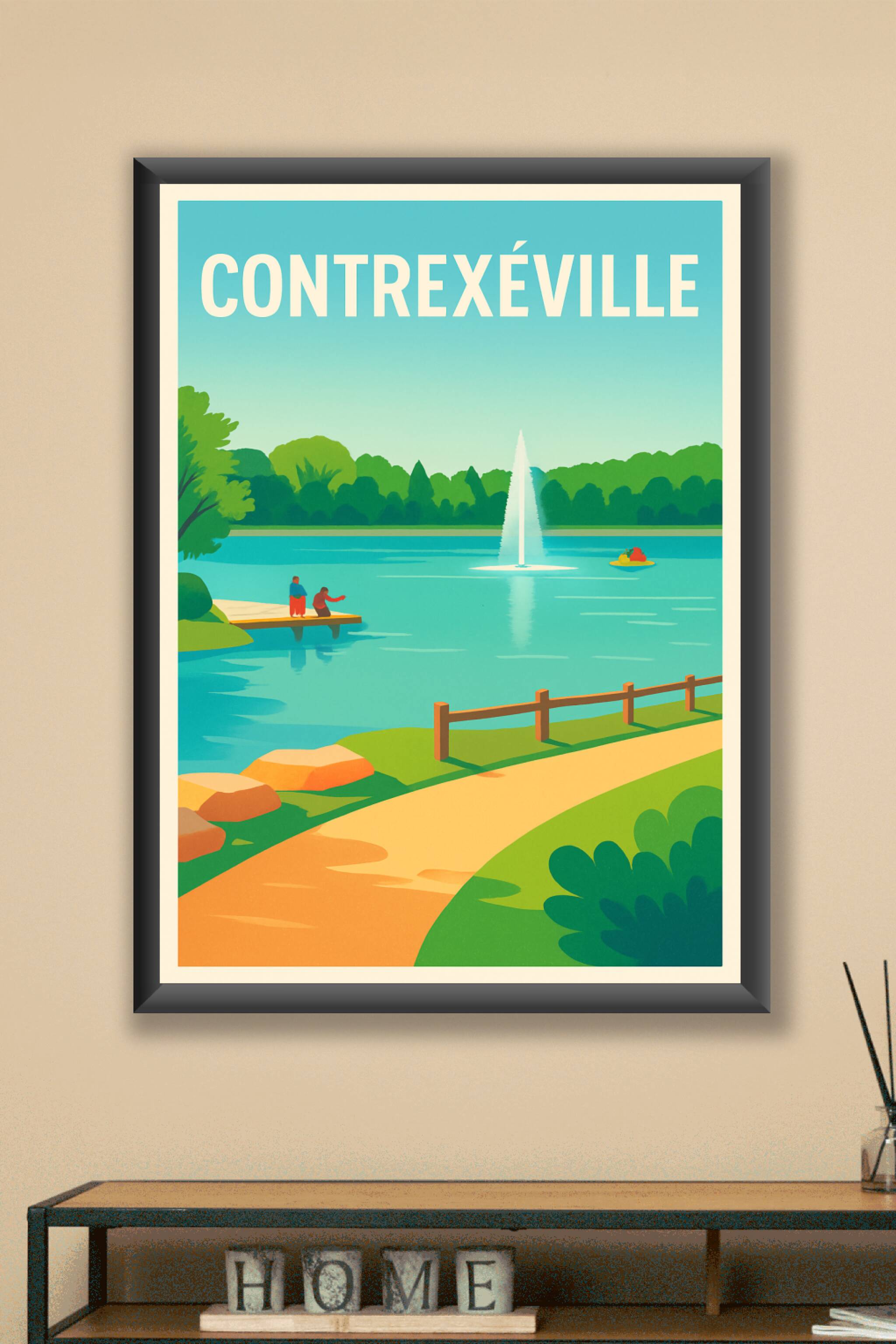 Découvrez la sérénité et le charme naturel de Contrexéville avec cette affiche illustrée mettant en scène un paisible lac orné d'une fontaine centrale et de verdoyantes rives. Parfait pour apporter une touche de fraîcheur et d'apaisement à votre intérieur, ce poster évoque une promenade tranquille au cœur d'un paysage verdoyant. Imprimé en tirage "Fine Art" sur un papier 305g coton de qualité supérieure, ce poster garantit des couleurs éclatantes et une durabilité exceptionnelle. Disponible en formats A1 à A4, avec ou sans cadre, cette affiche est l'élément parfait pour sublimer votre décoration tout en rappelant la douceur de vivre de Contrexéville. Profitez d'une impression 100% française, qui fera de ce poster un cadeau raffiné ou un must-have pour les amateurs de beaux paysages.
