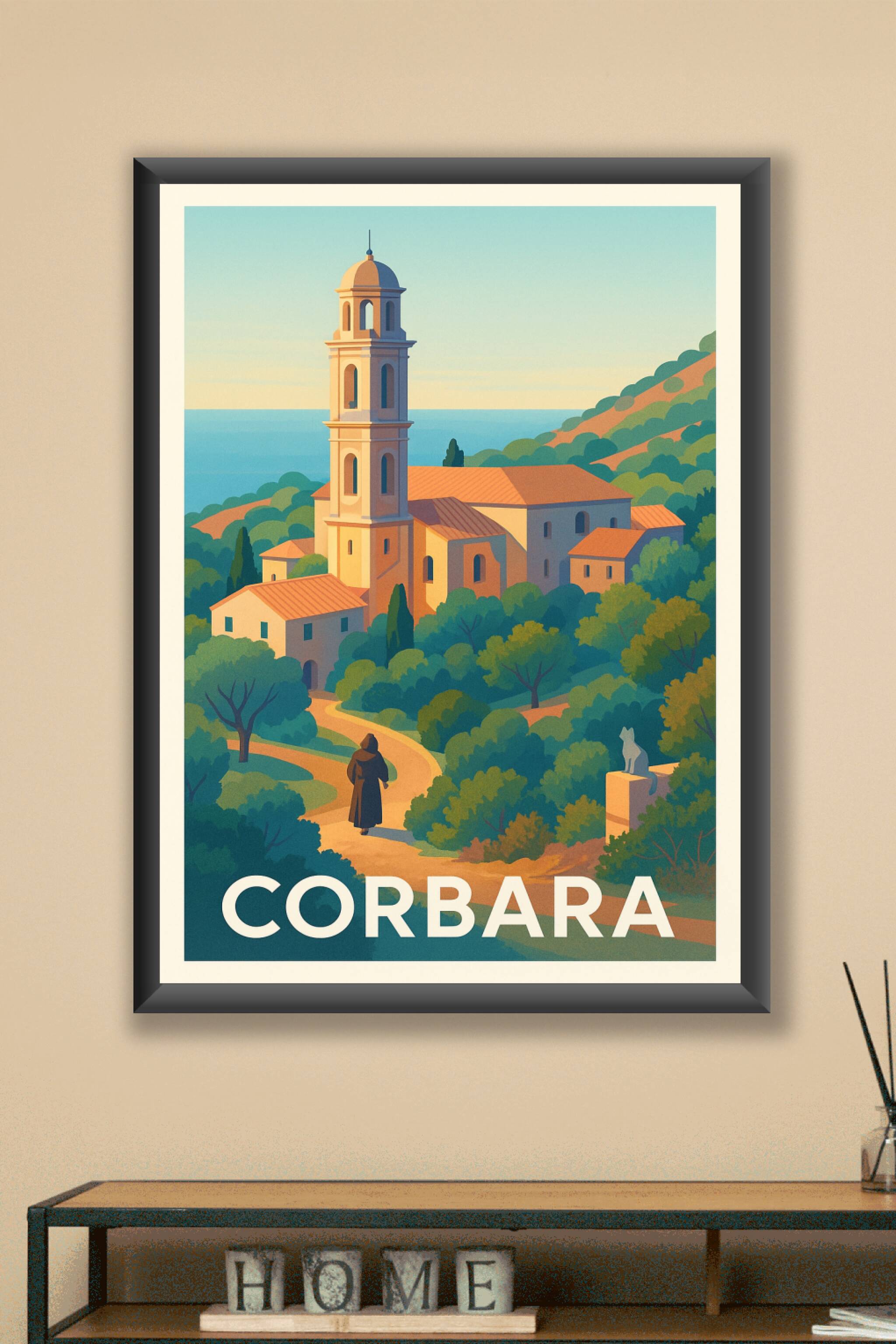 Découvrez l’élégance paisible de Corbara à travers cette superbe affiche représentant son clocher emblématique baigné par la lumière douce du soleil méditerranéen. Niché entre collines et mer, ce poster au style vintage met en valeur l’atmosphère unique de ce village pittoresque.En tirage "Fine Art" sur papier 305g coton, cette affiche garantit une qualité d’impression exceptionnelle, avec des couleurs profondes et durables. Elle est disponible en plusieurs formats, de A1 à A4, avec ou sans cadre, pour s’adapter parfaitement à votre intérieur ou offrir en cadeau.Un poster élégant et authentique qui apportera une touche de charme méridional à votre décoration, tout en célébrant la beauté intemporelle de Corbara.