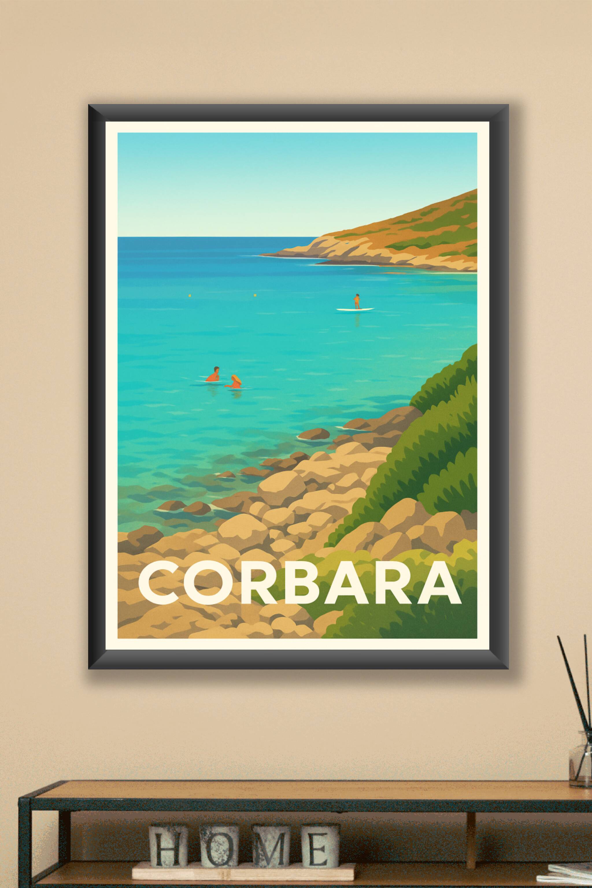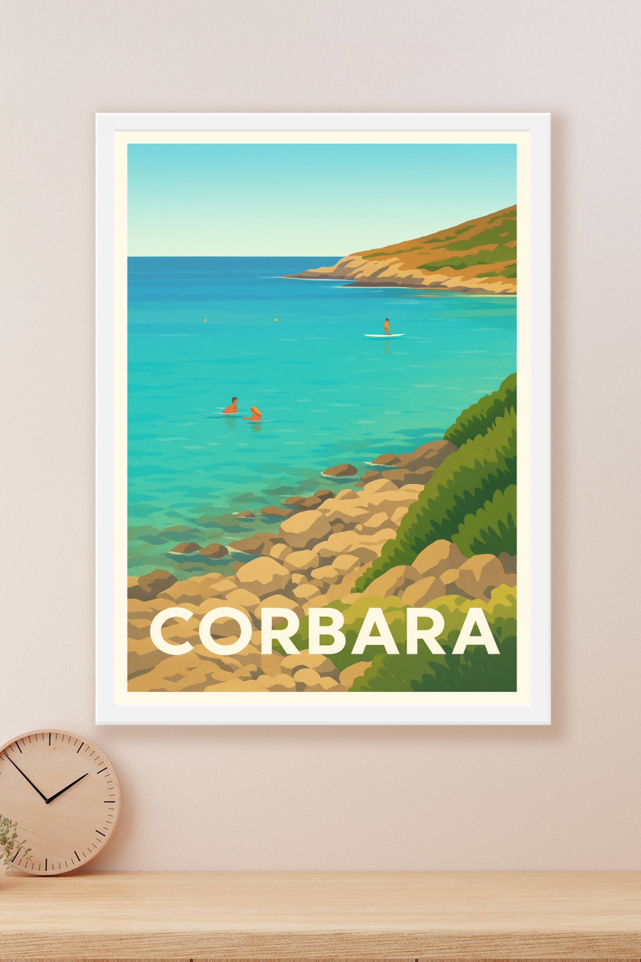 Découvrez la sérénité des côtes corses avec cette affiche au style vintage qui capture les eaux cristallines et les paysages rocheux de Corbara. Ce...