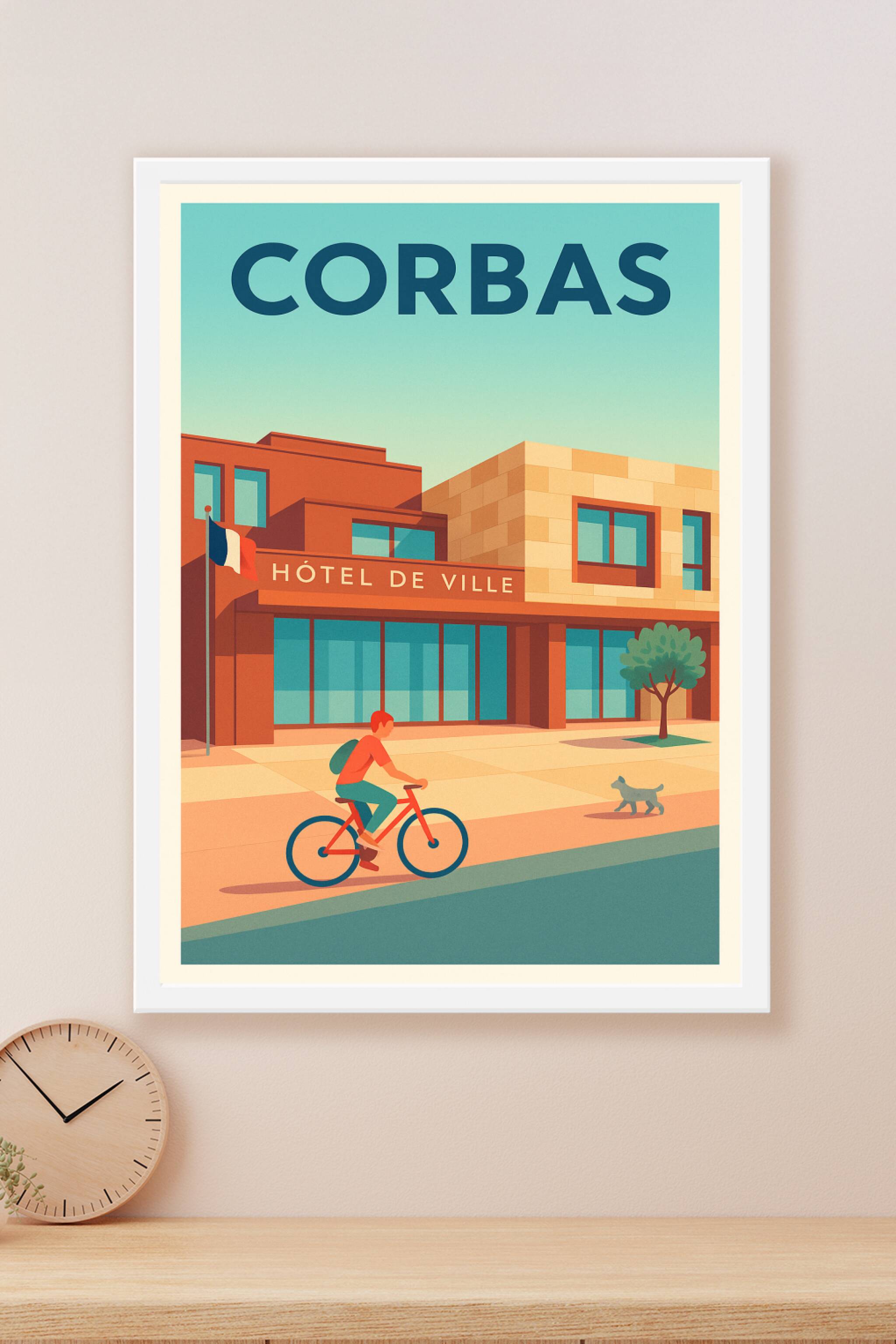 Découvrez l'affiche représentant l'Hôtel de Ville de Corbas, une invitation à plonger dans l'ambiance sereine et contemporaine de cette ville dynamique. Ce poster illustre avec des couleurs chaudes et un style épuré une scène de vie quotidienne où un cycliste traverse une avenue paisible sous un ciel dégagé.Une affiche conçue en tirage "Fine Art" sur papier 305g coton pour une qualité d'impression exceptionnelle, assurant des couleurs éclatantes et une durabilité optimale. Disponible en plusieurs formats de A1 à A4, avec ou sans cadre pour s'adapter parfaitement à votre espace. Sublimez votre décoration intérieure ou offrez un souvenir élégant avec ce poster unique et 100% fabriqué en France.