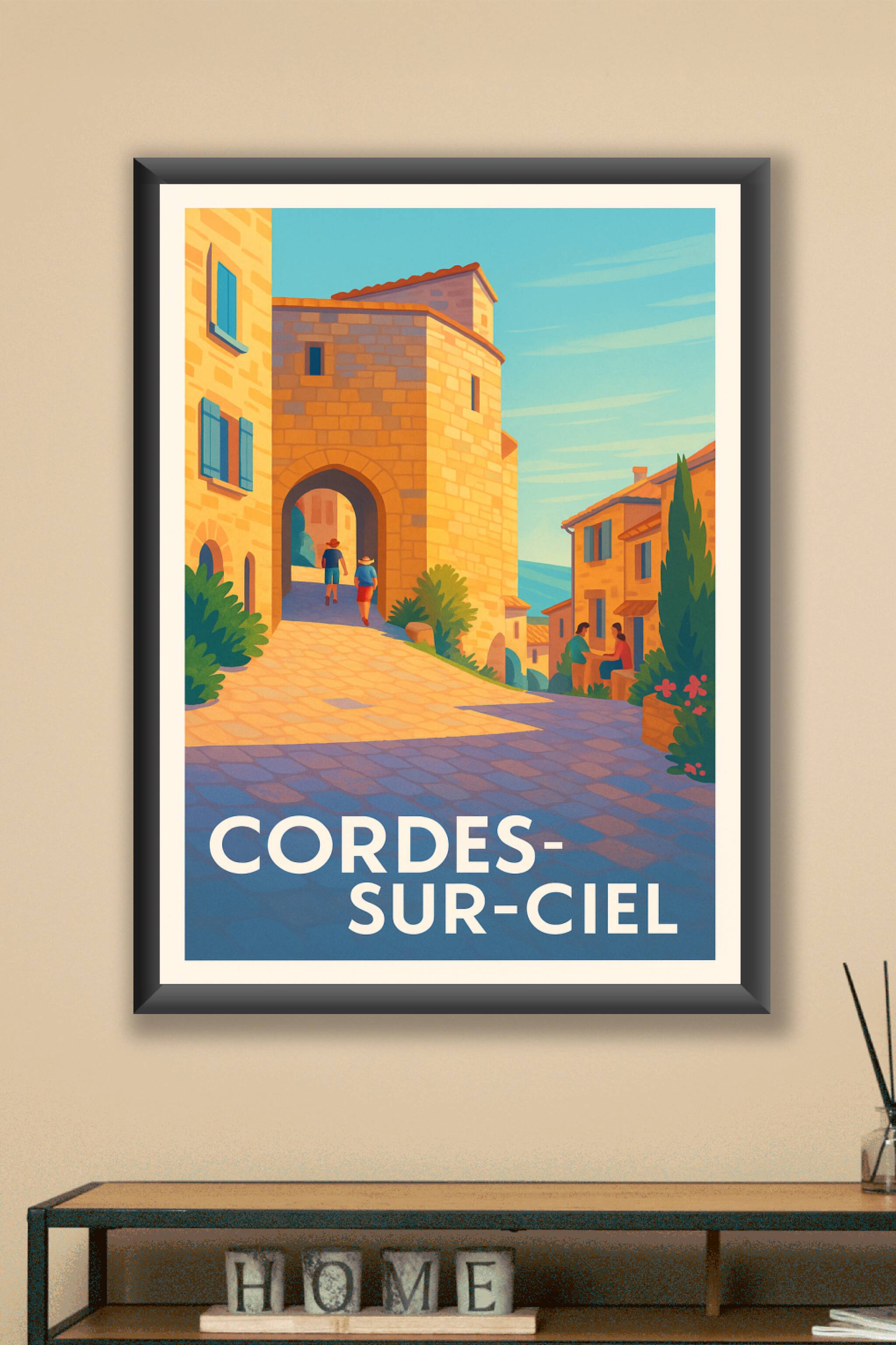 Découvrez le charme authentique de Cordes-sur-Ciel à travers cette affiche illustrée aux couleurs chaudes et lumineuses. Ce poster capture l'atmosphère paisible des ruelles pavées et des bâtisses en pierre, typiques de ce village perché unique.Cette affiche est produite en tirage "Fine Art" sur papier 305g coton garanti d'une qualité d'impression exceptionnelle. Disponible en formats A1 à A4, avec ou sans cadre, ce poster s'intègre parfaitement dans votre décoration intérieure. Profitez d'un produit 100% fabriqué en France pour offrir une touche d'élégance médiévale à votre intérieur ou pour faire un cadeau raffiné.