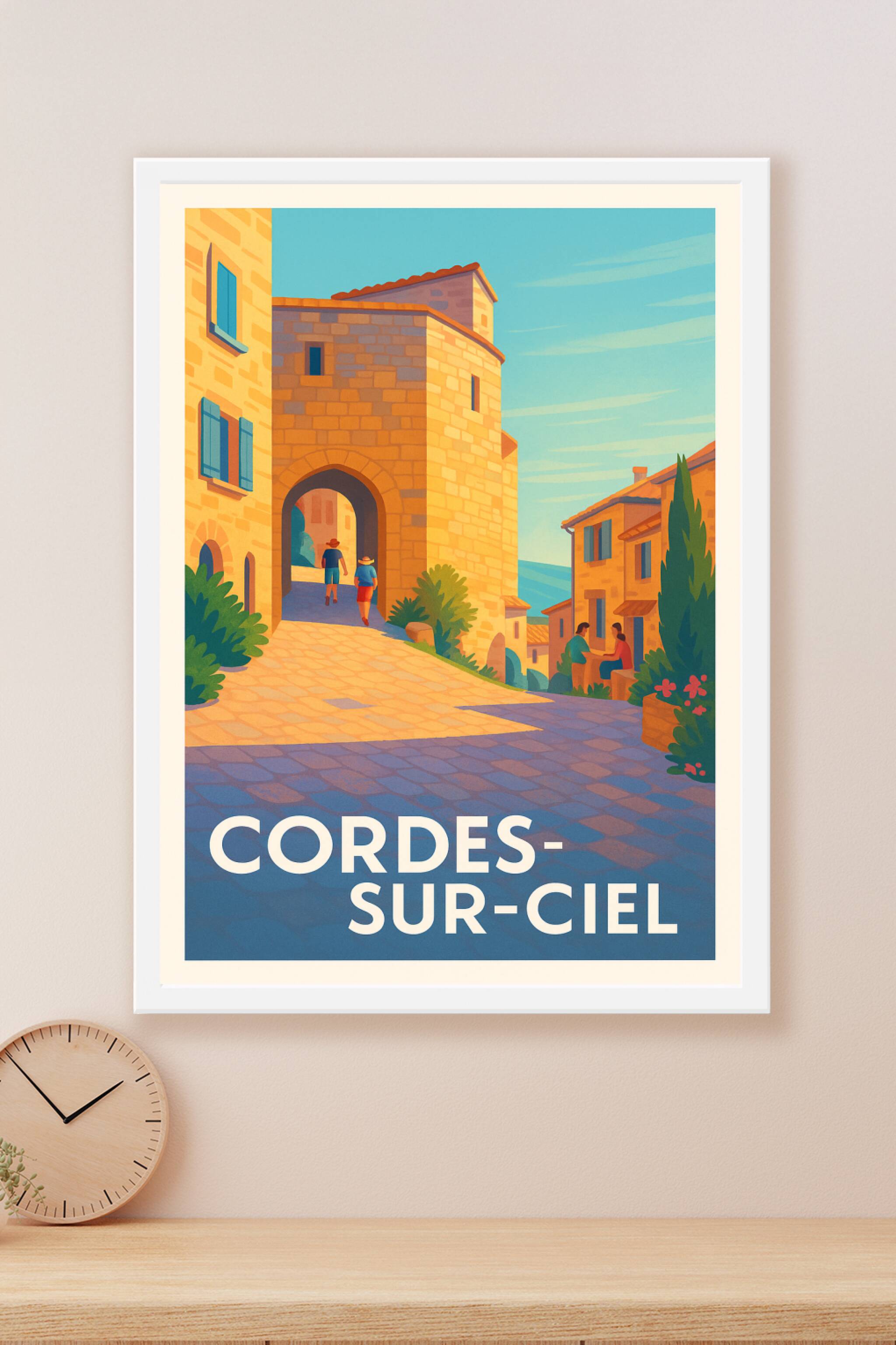 Découvrez le charme authentique de Cordes-sur-Ciel à travers cette affiche illustrée aux couleurs chaudes et lumineuses. Ce poster capture l'atmosp...