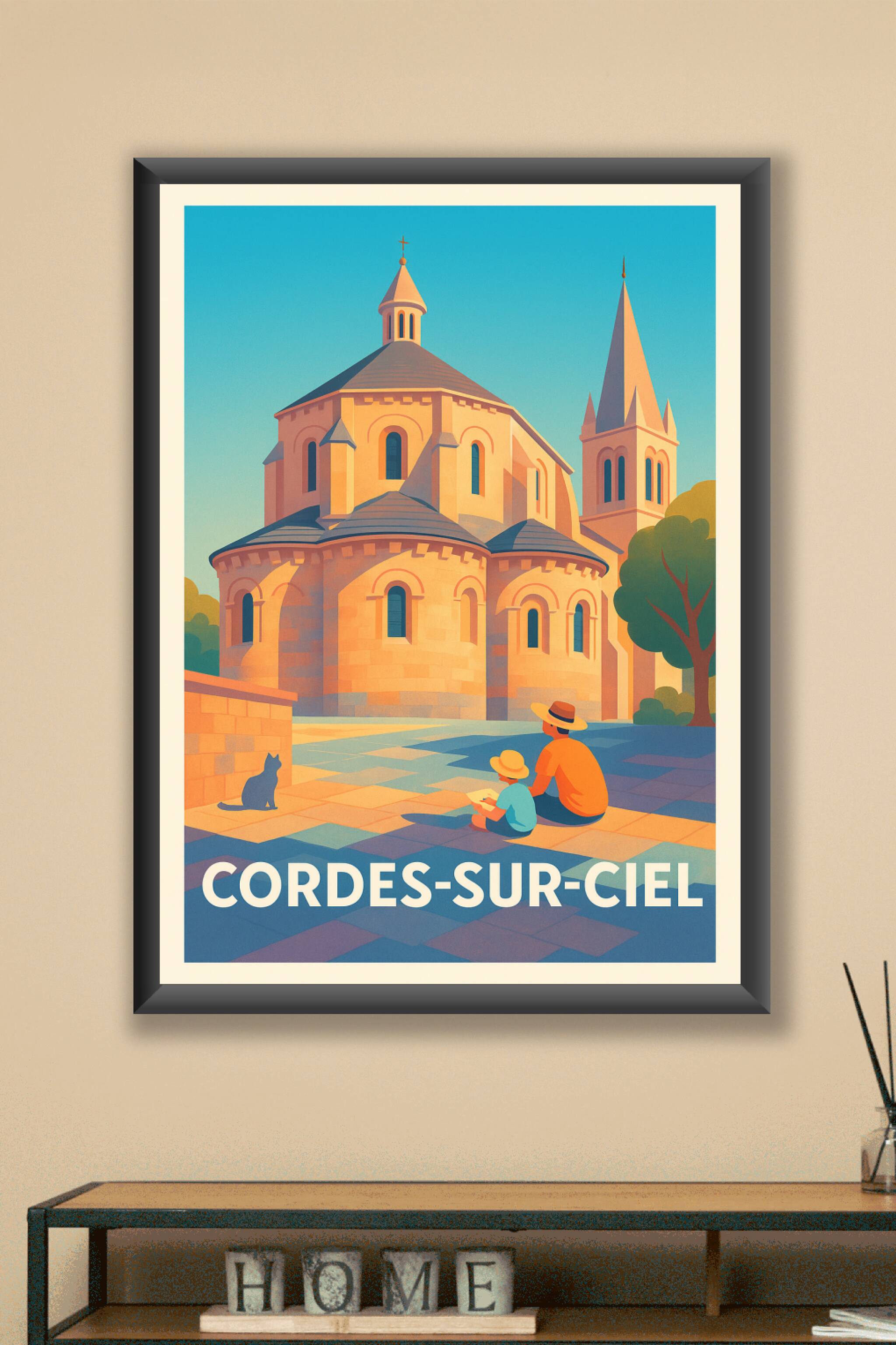 Découvrez le charme intemporel de Cordes-sur-Ciel avec cette affiche illustrée mettant en lumière l'architecture remarquable de cette cité médiéval...