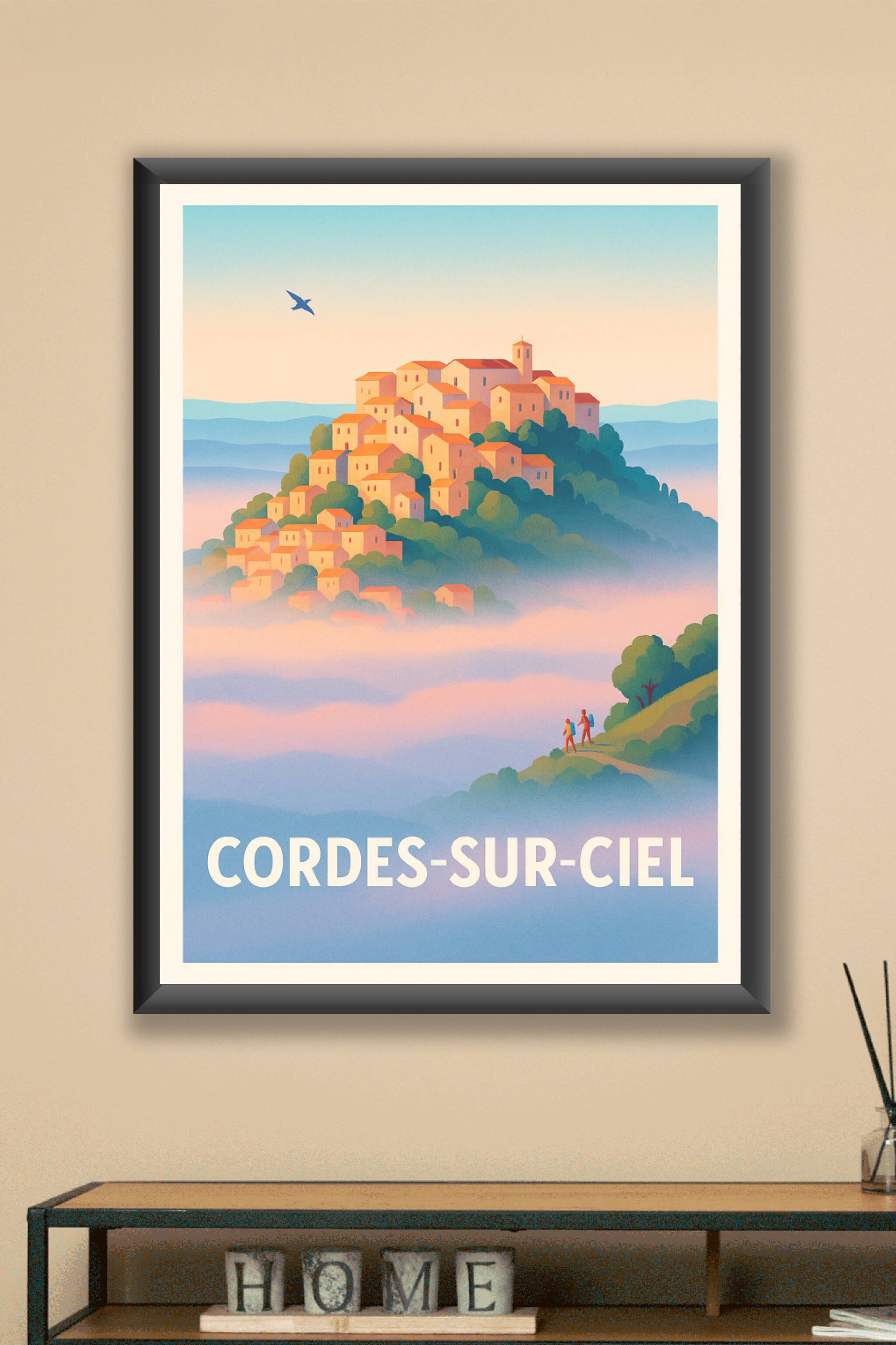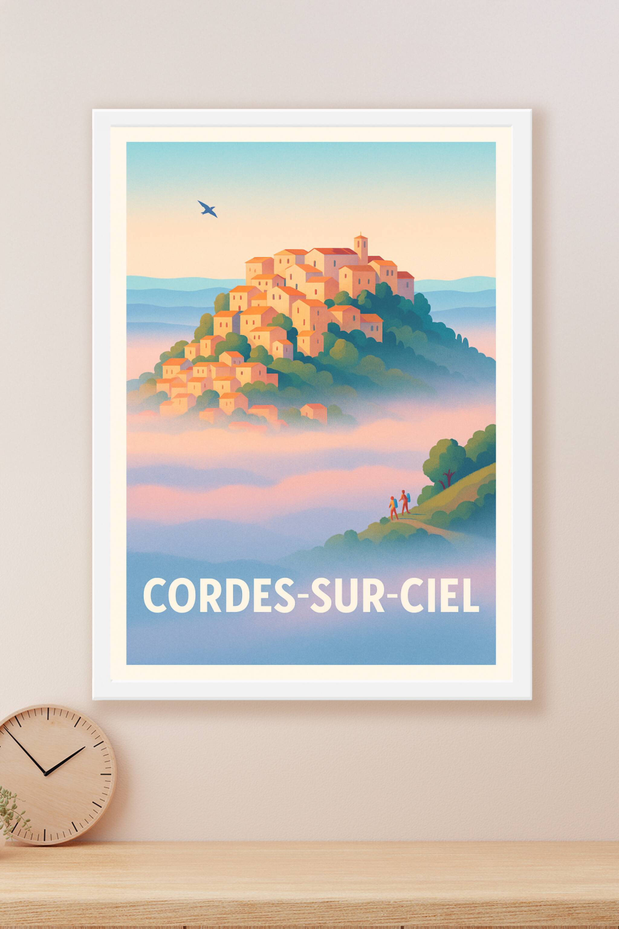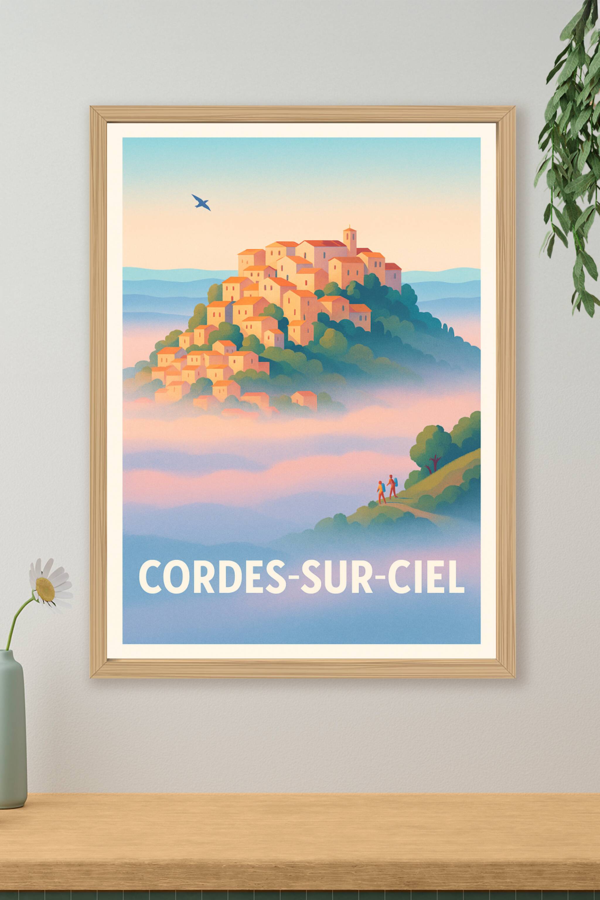 Découvrez la magie intemporelle de Cordes-sur-Ciel avec cette affiche illustrée qui capture l'essence de ce village médiéval perché au-dessus d'un ...