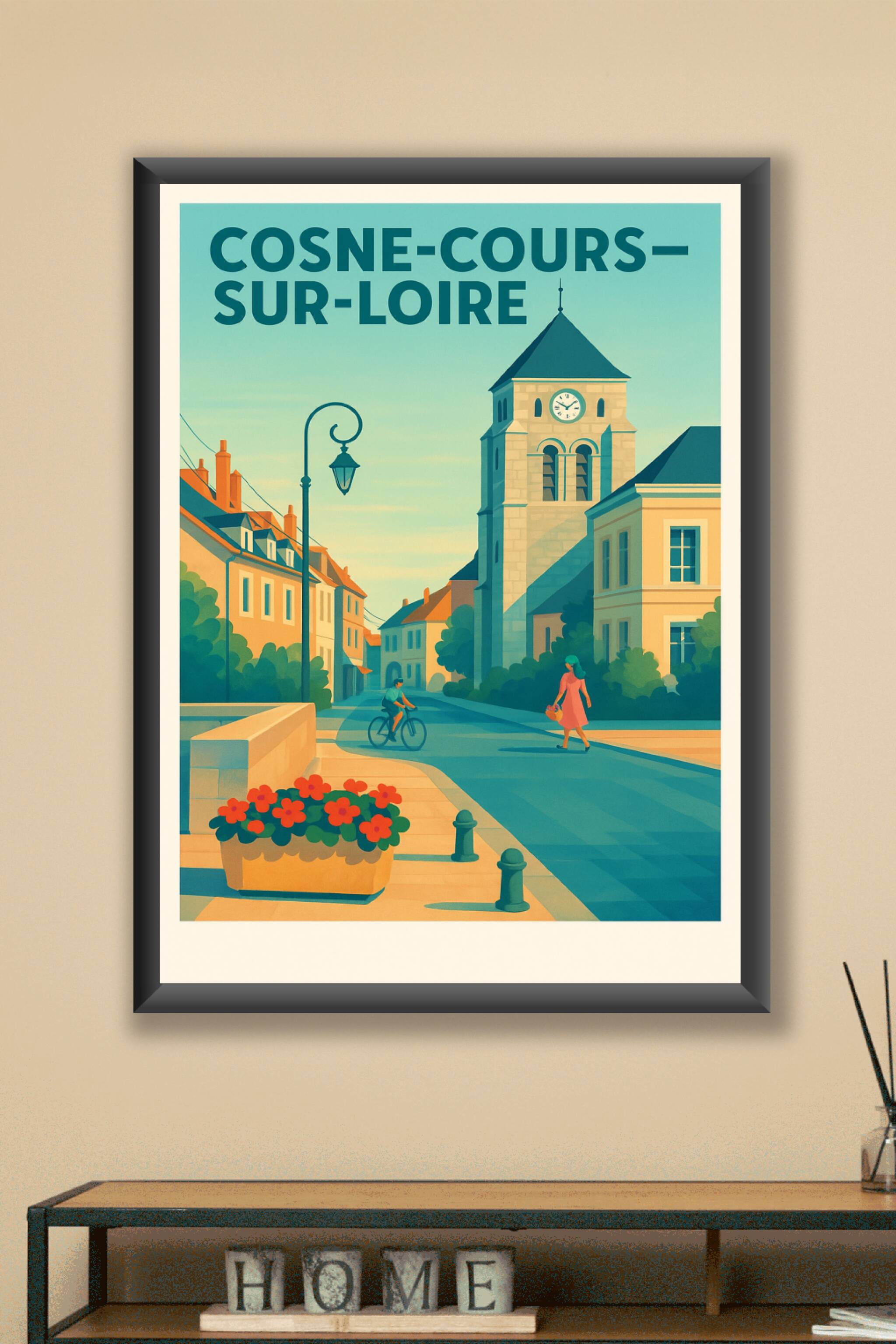 Découvrez l'atmosphère paisible et emblématique de Cosne-Cours-sur-Loire à travers cette affiche illustrée représentant ses rues calmes et son architecture typique. Ce poster capture la douceur de vivre de cette charmante ville bourguignonne, avec ses bâtisses traditionnelles baignées par la lumière dorée du jour.Cette affiche est imprimée en tirage "Fine Art" sur papier 305g coton, garantissant une qualité d'impression exceptionnelle et des couleurs lumineuses. Elle est disponible en formats A1 à A4, avec ou sans cadre, pour s'adapter parfaitement à votre intérieur.Que ce soit pour offrir ou pour embellir votre déco, ce poster de Cosne-Cours-sur-Loire apporte une touche élégante et authentique à vos murs, avec une fabrication made in France assurant un rendu haut de gamme.