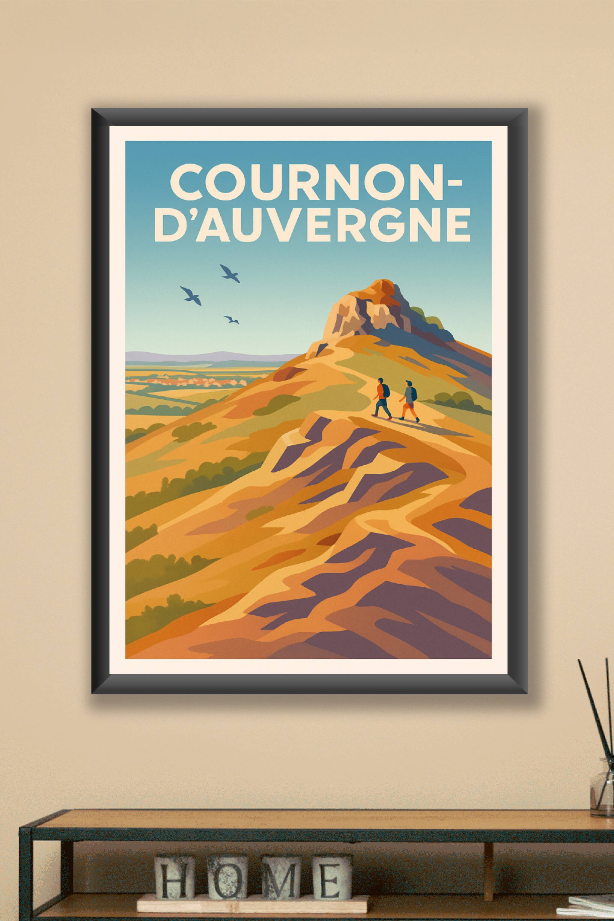Découvrez l'affiche de Cournon-d'Auvergne qui immortalise les paysages vallonnés et les sentiers pittoresques typiques de cette belle région. Ce po...
