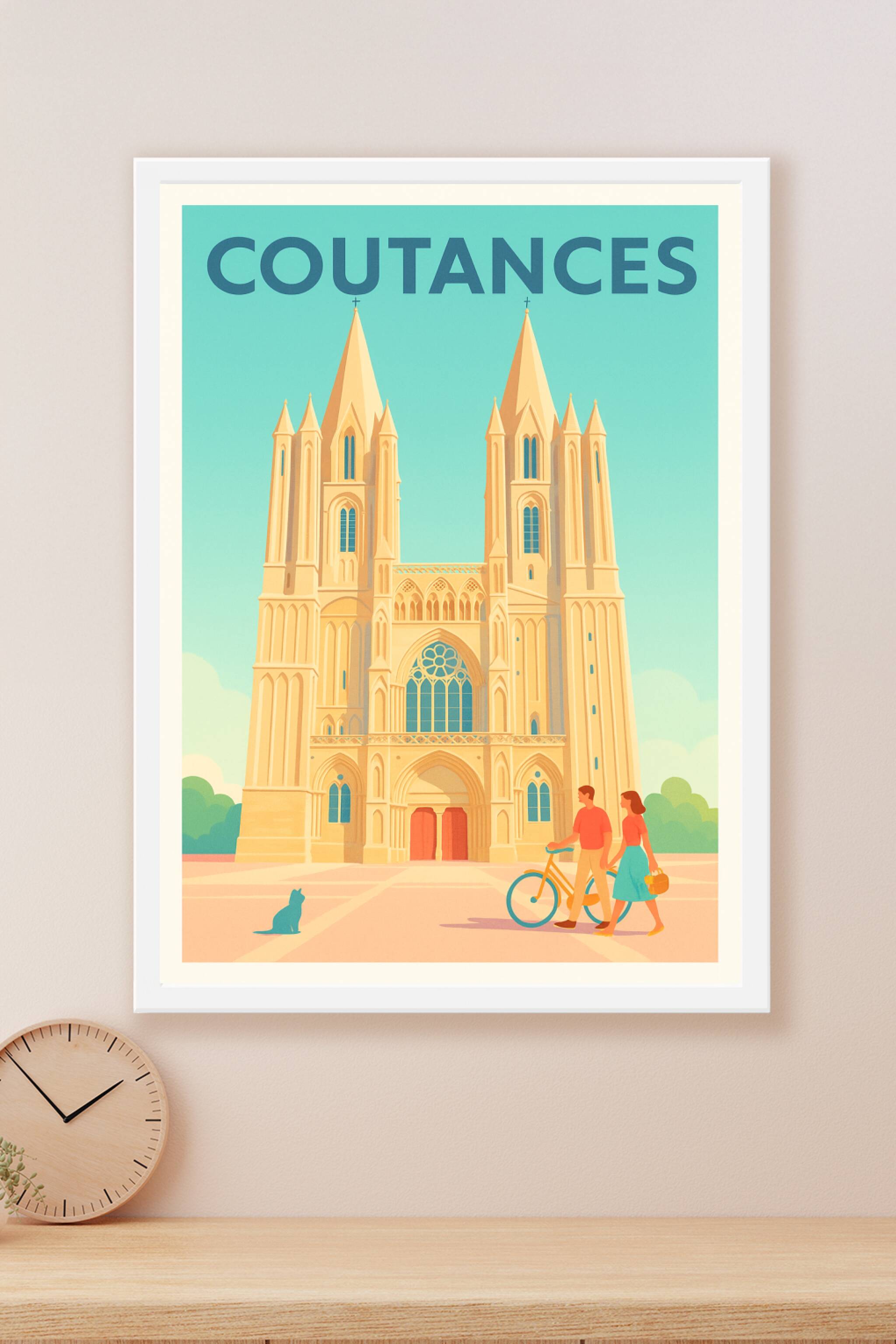Découvrez l'élégance intemporelle de Coutances avec cette affiche illustrée mettant en avant la célèbre cathédrale gothique de la ville, symbole de...