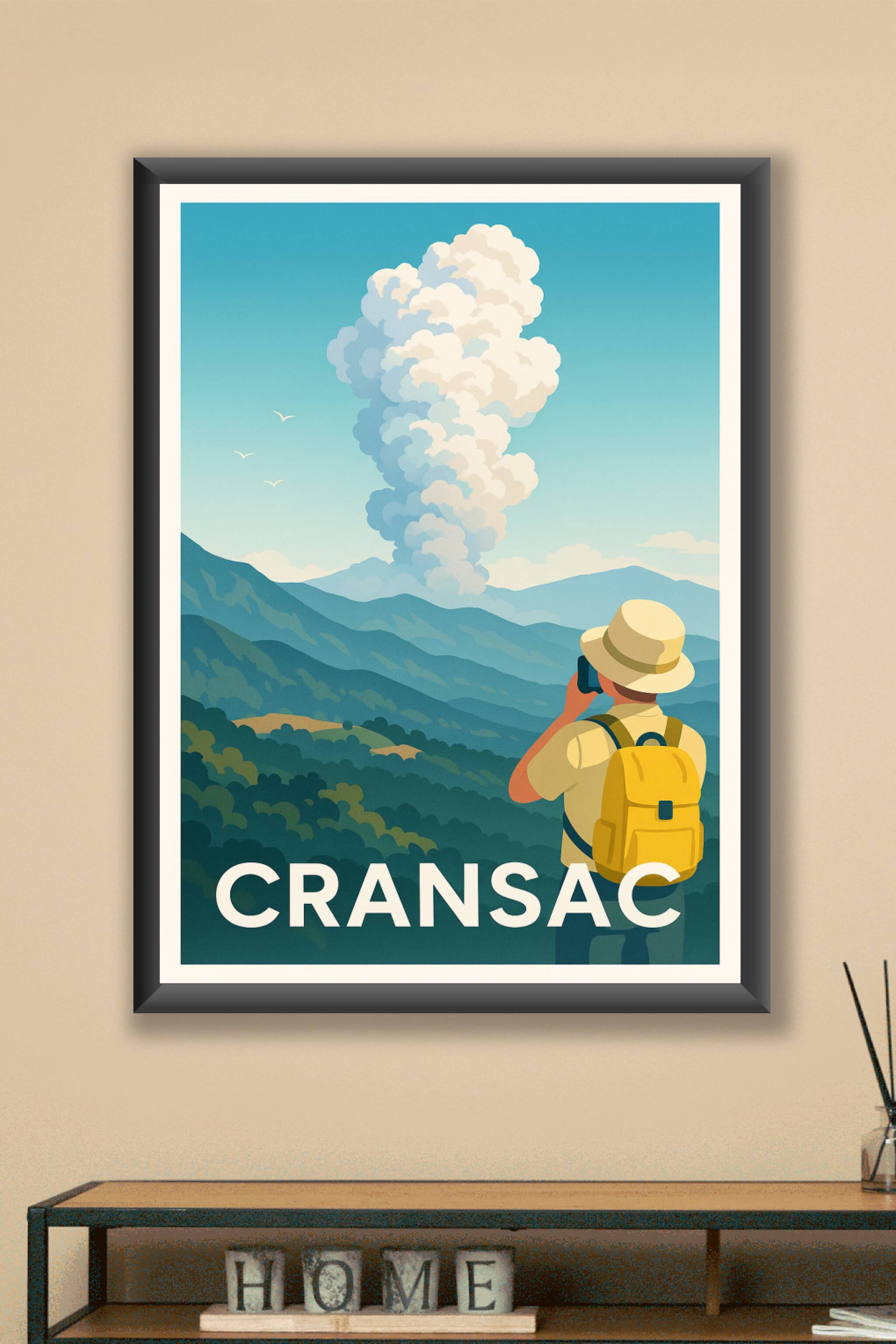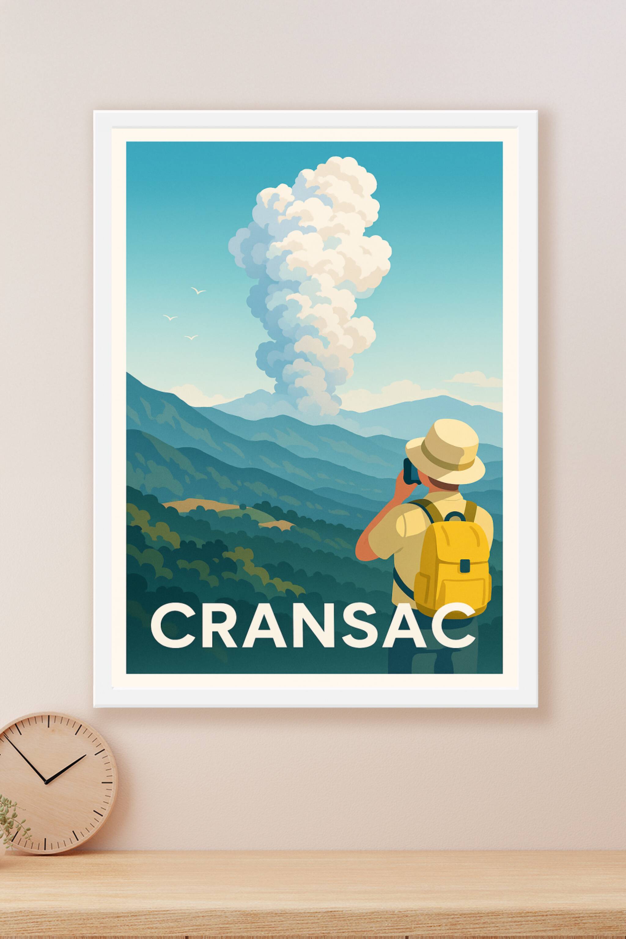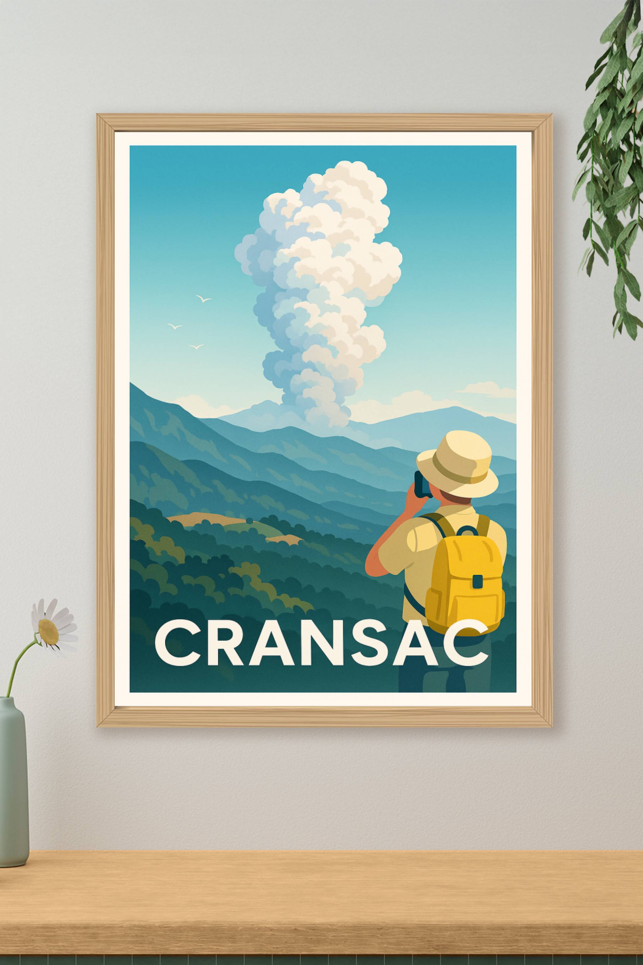 Affichez votre passion pour la nature et l'aventure avec ce poster illustré mettant en scène un panorama spectaculaire autour de Cransac, où un ran...