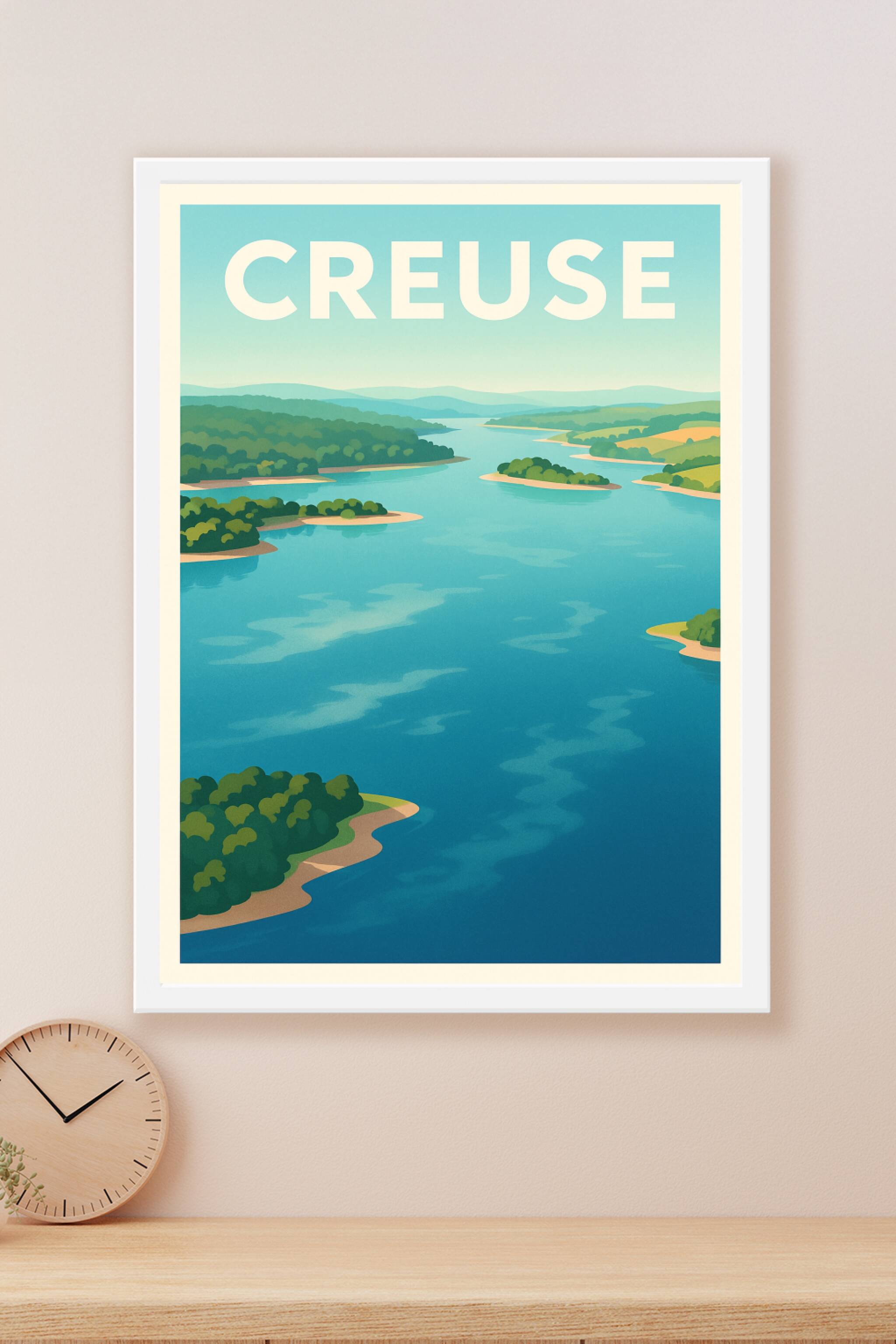 Découvrez la douceur et la sérénité du paysage creusois avec cette affiche au style épuré et contemporain, mettant en scène les cours d'eau sinueux...