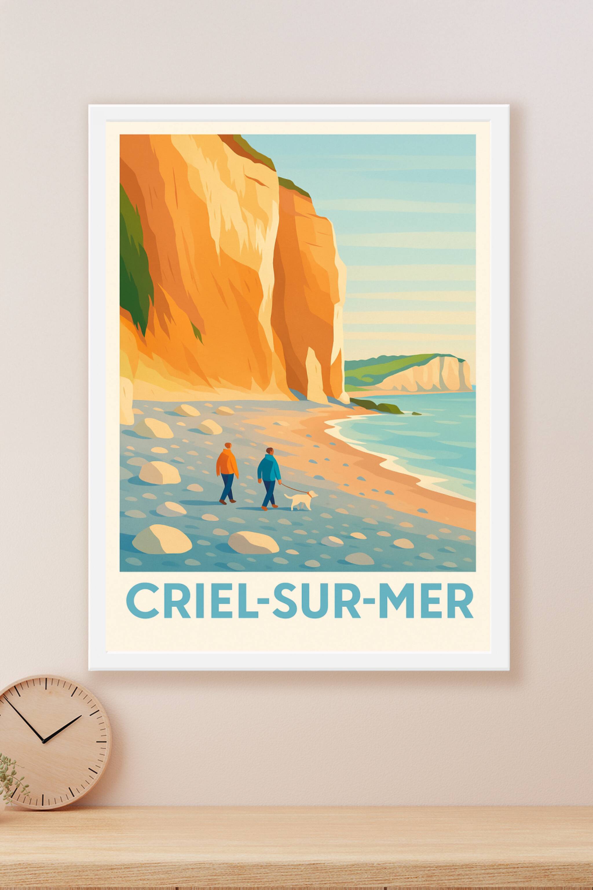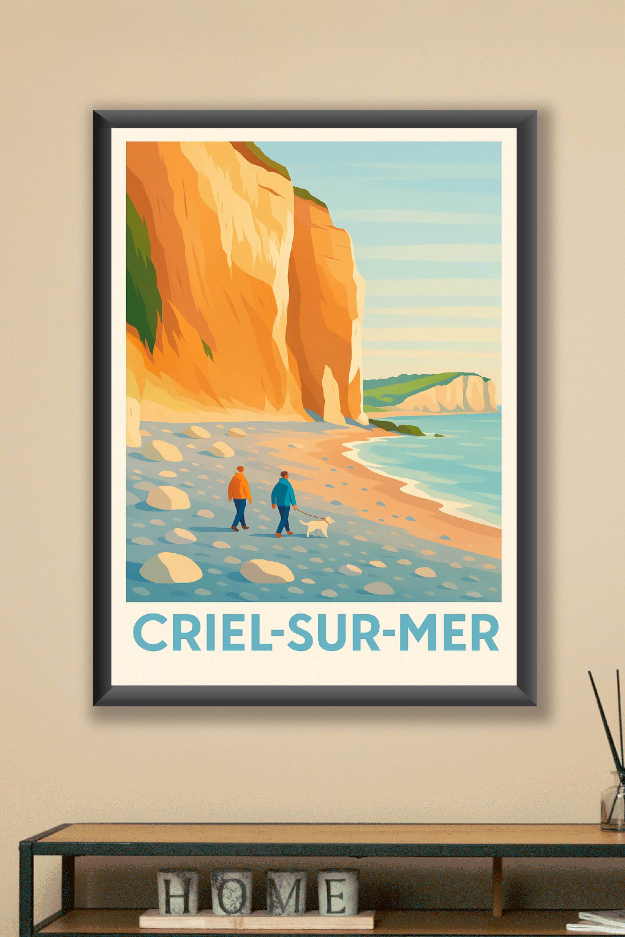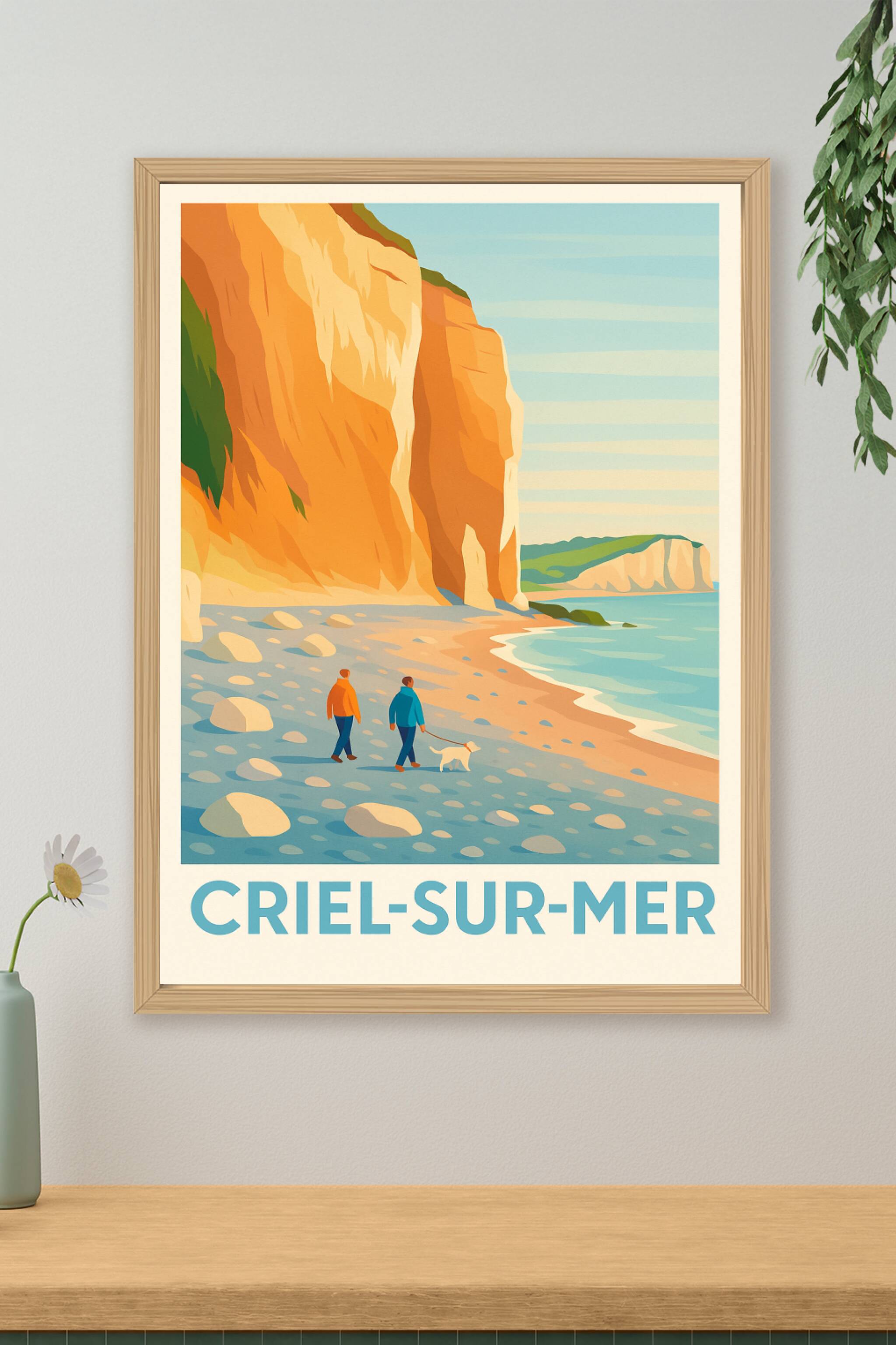 Découvrez la beauté naturelle de Criel-sur-Mer avec cette affiche qui capture l'atmosphère paisible de ses falaises de craie et de sa plage rocheus...