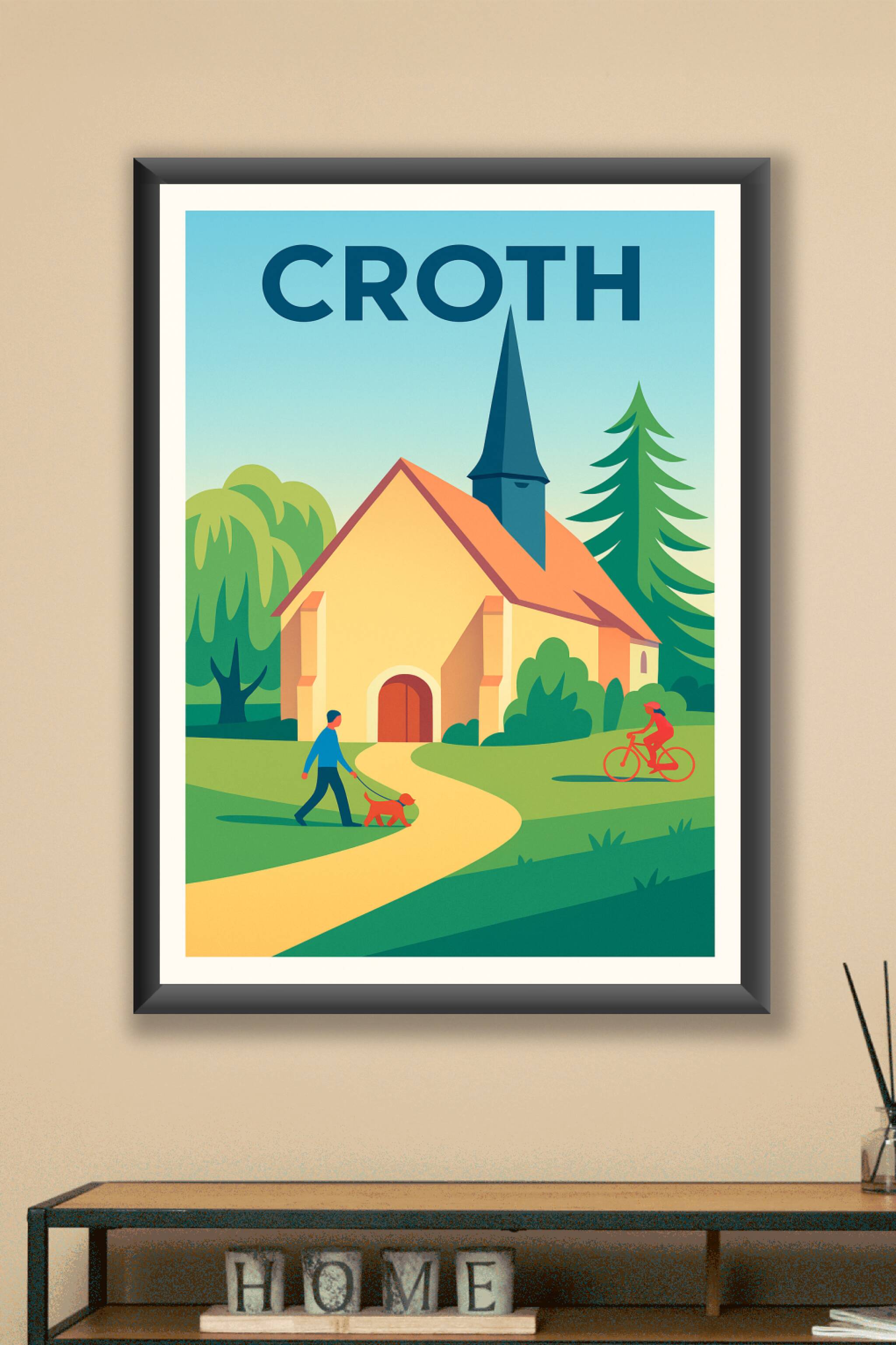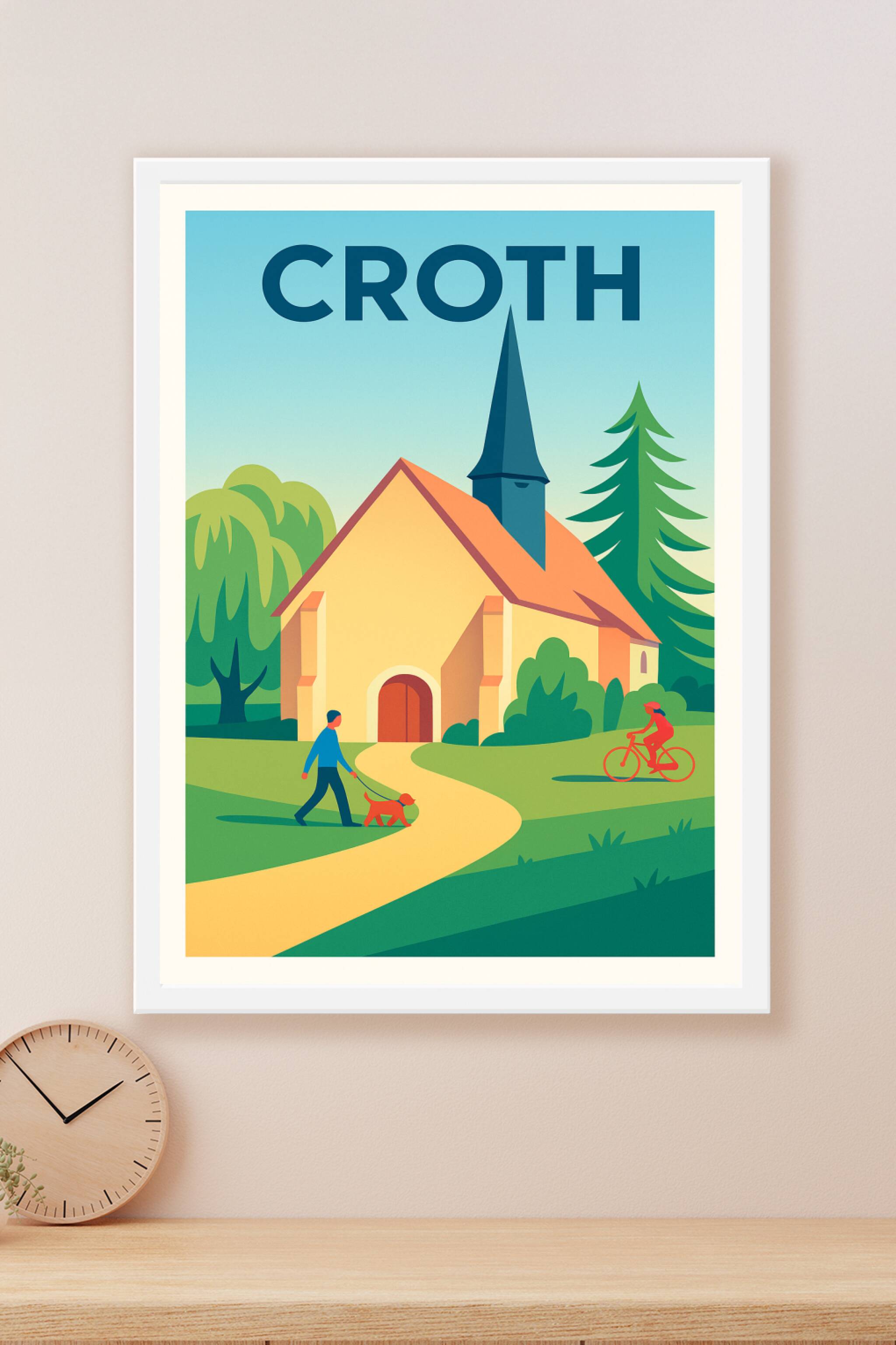 Découvrez l'ambiance paisible et accueillante de Croth à travers cette affiche illustrée aux couleurs douces et inspirantes. Cette scène représente...