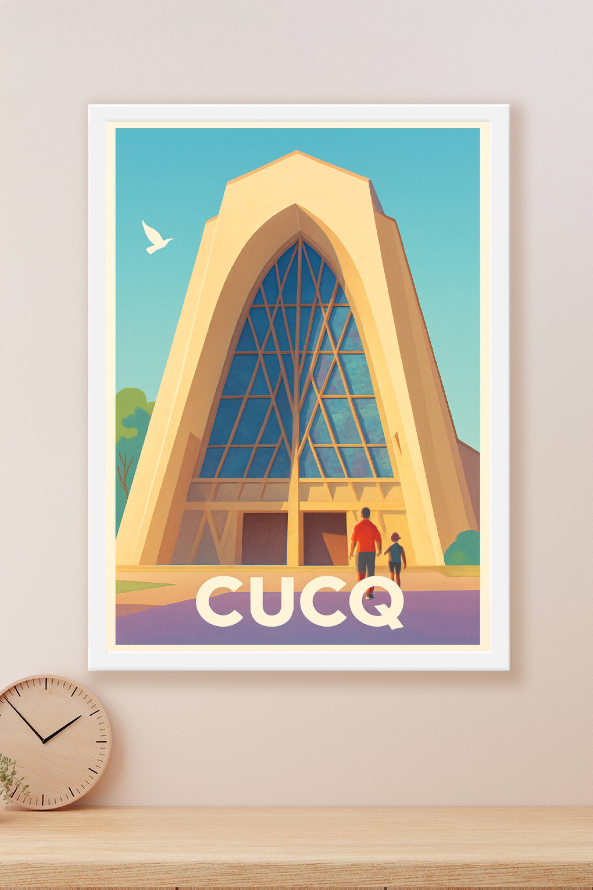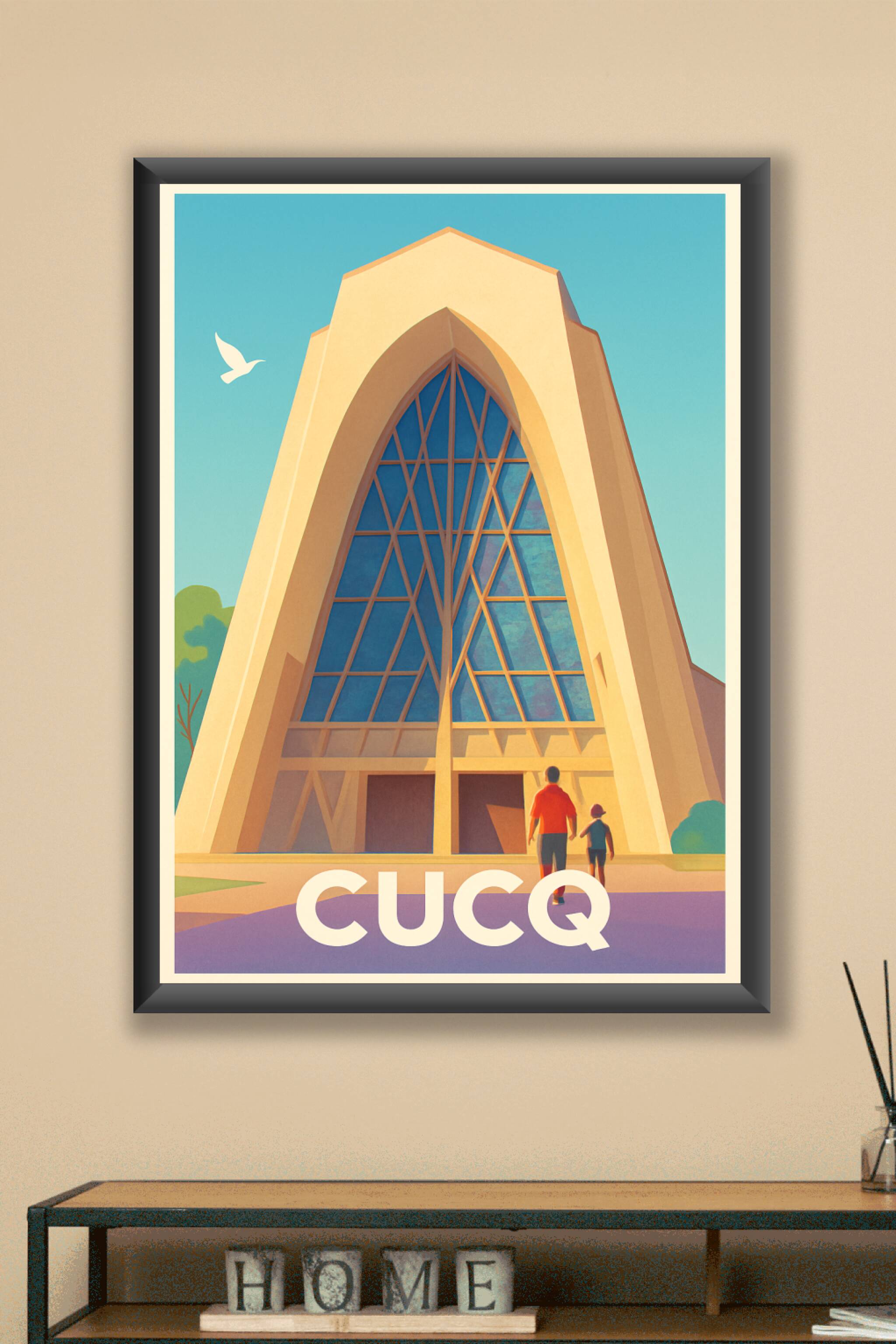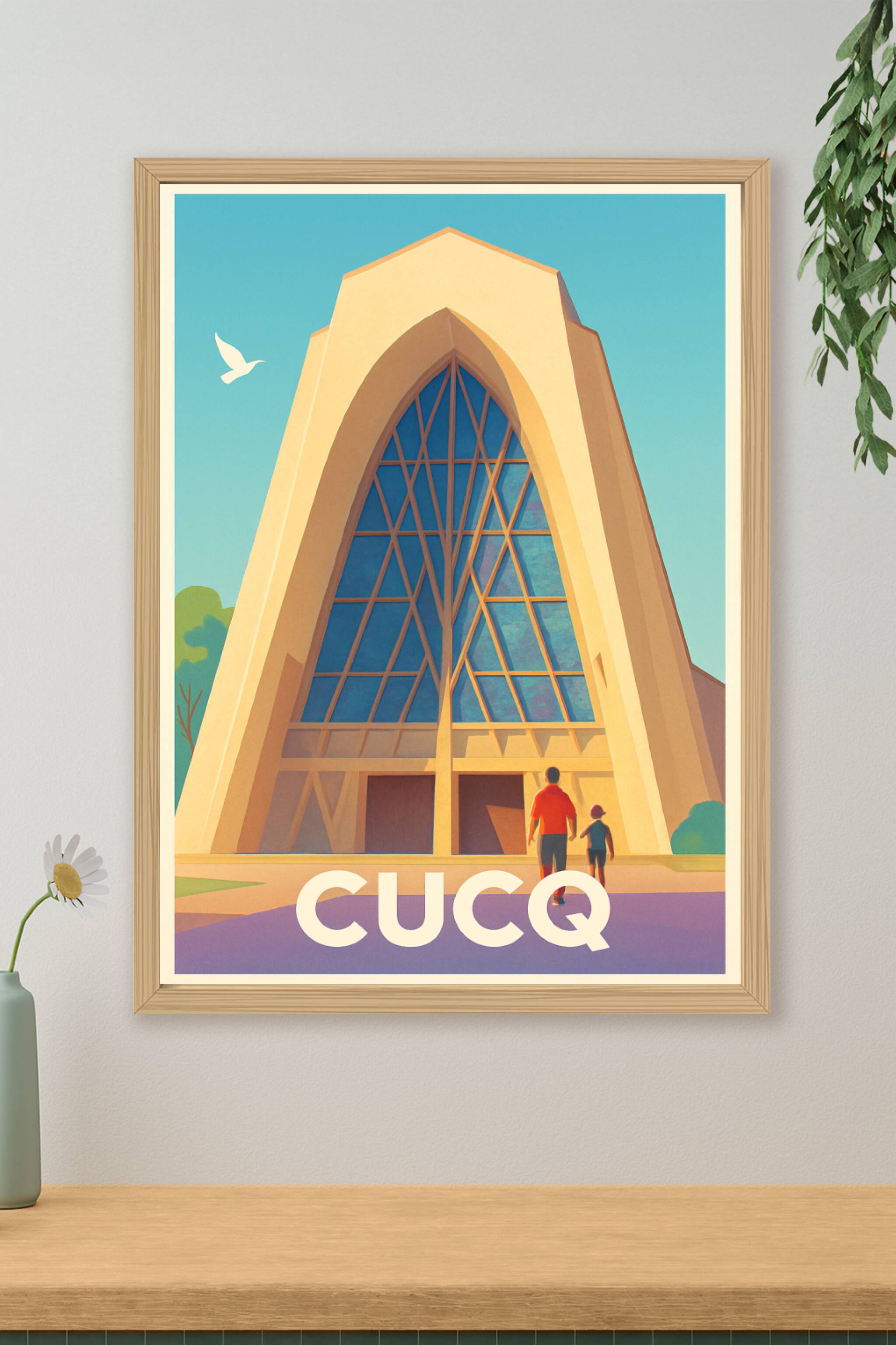 Découvrez cette affiche illustrée mettant en lumière l'architecture remarquable de Cucq, avec sa grande verrière aux formes géométriques et ses tei...