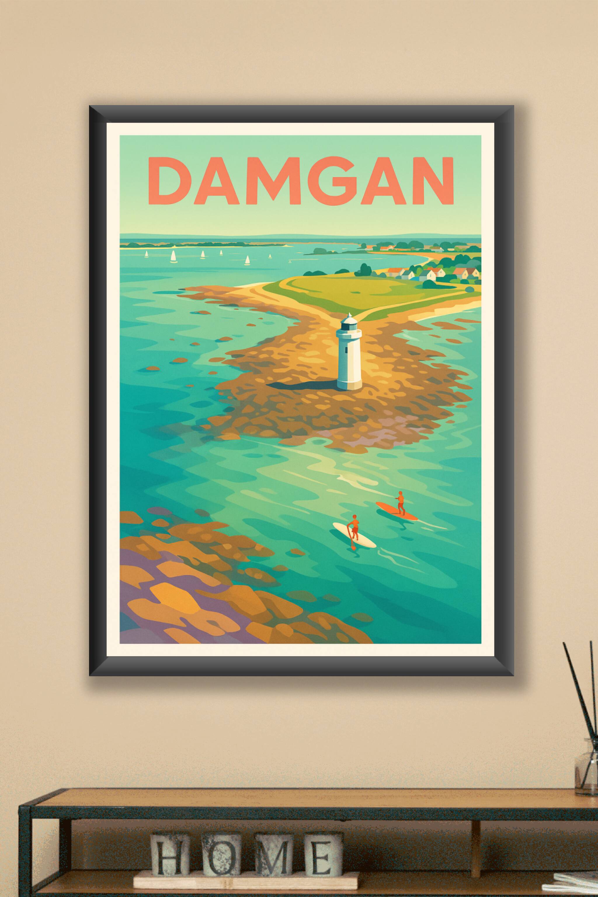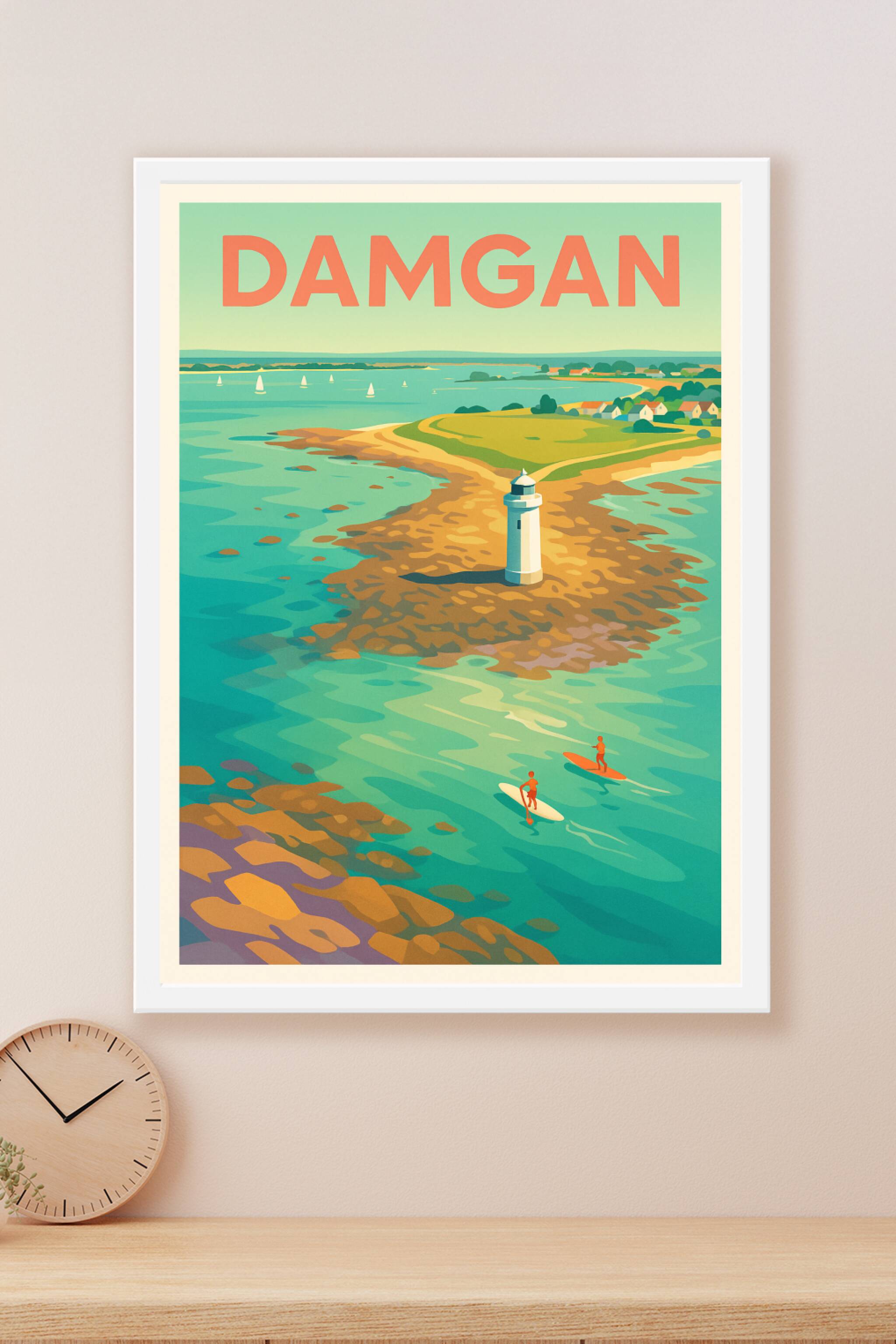 Offrez-vous une escapade visuelle au cœur de Damgan avec cette affiche illustrée mettant en scène son phare emblématique et les eaux cristallines i...