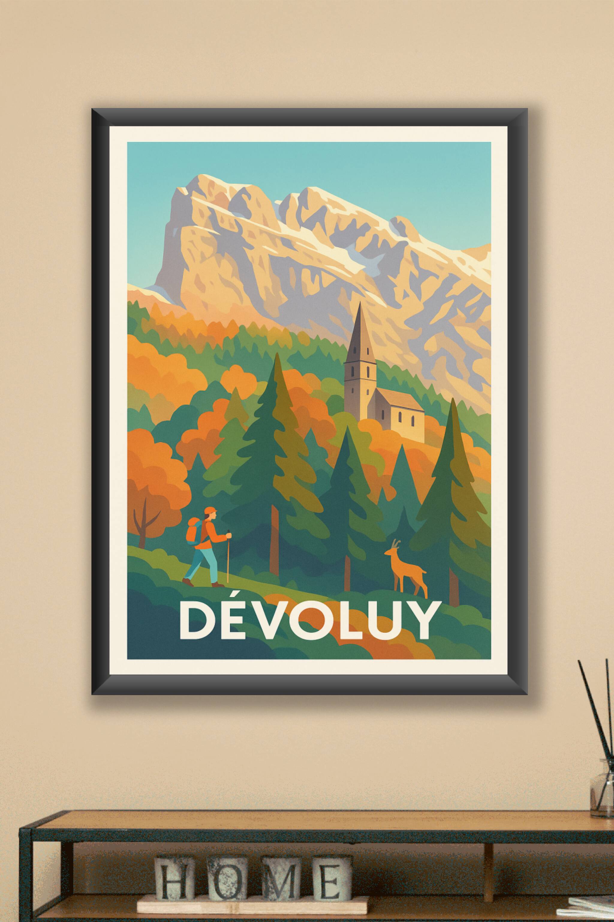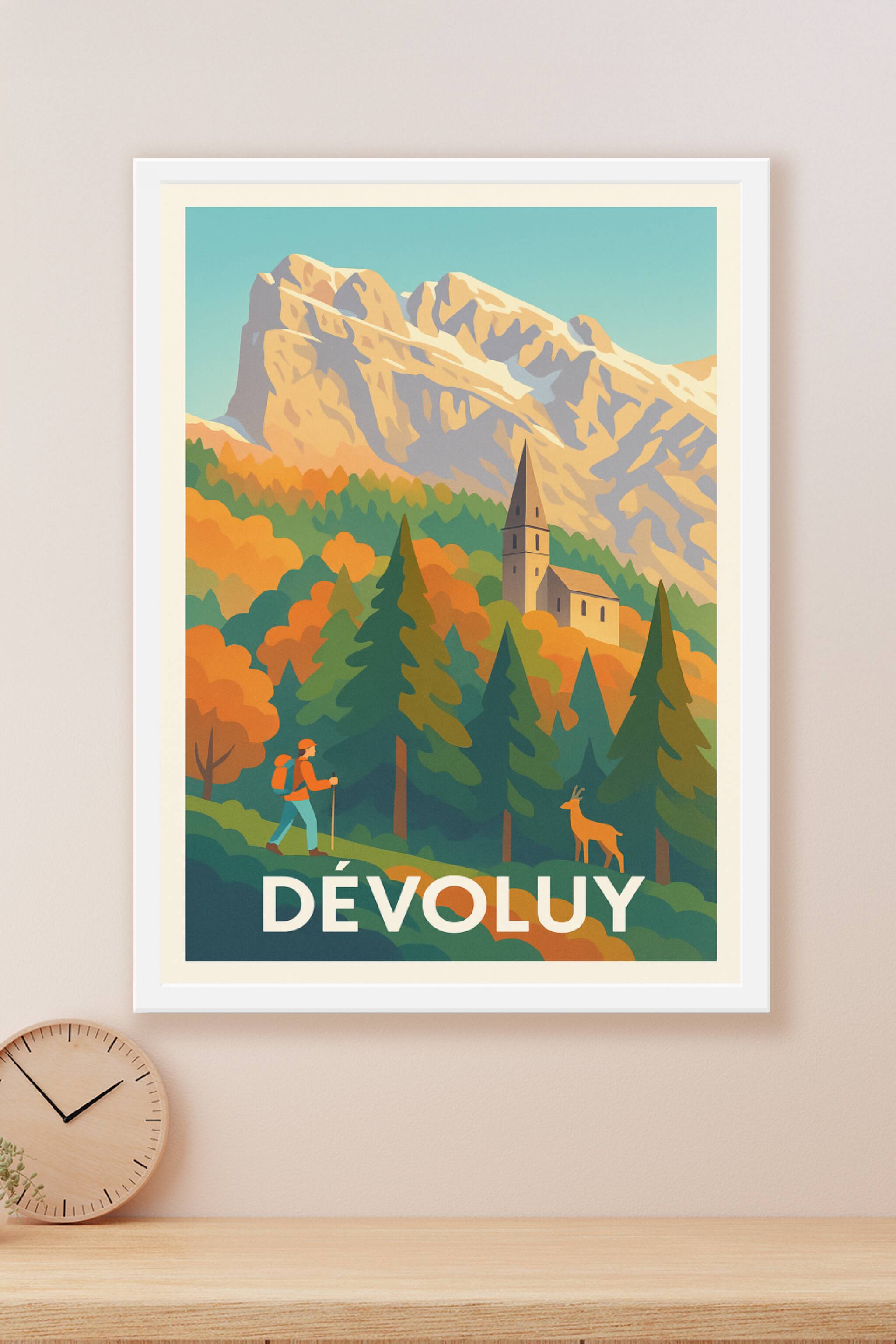 Embarquez pour une aventure visuelle dans les paysages sereins du Dévoluy avec cette affiche artistique illustrant une randonnée automnale au pied des sommets majestueux et de l'église typique. Ce poster, aux couleurs chaudes et apaisantes, invite à la découverte et à la contemplation. Imprimé en tirage "Fine Art" sur papier coton 305g, il garantit une qualité d'impression haute définition et durable. Disponible en formats A1 à A4, avec ou sans cadre, cette affiche est idéale pour apporter une touche d'évasion montagnarde à votre décoration intérieure ou faire un cadeau unique aux amoureux de la nature et des grands espaces.
