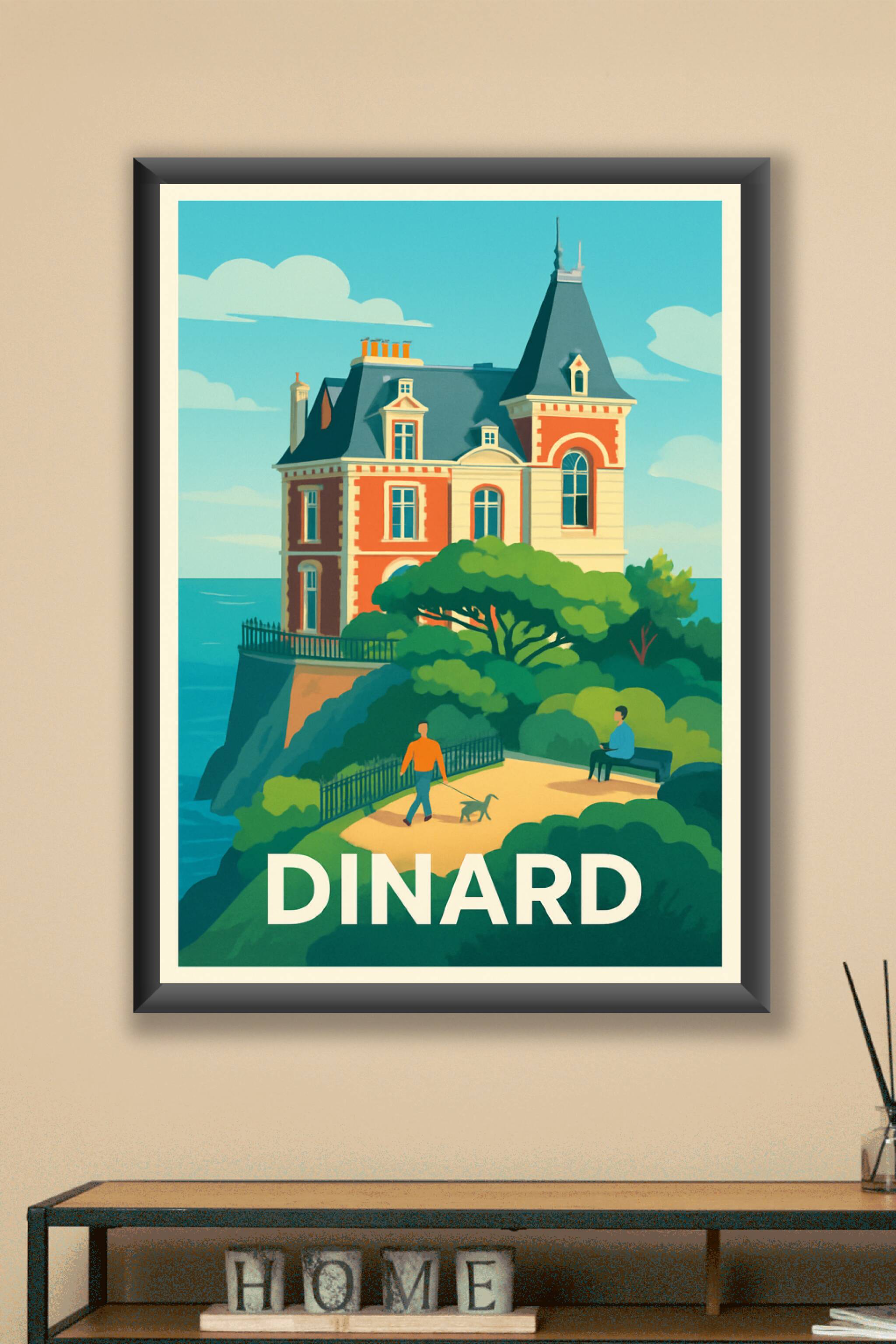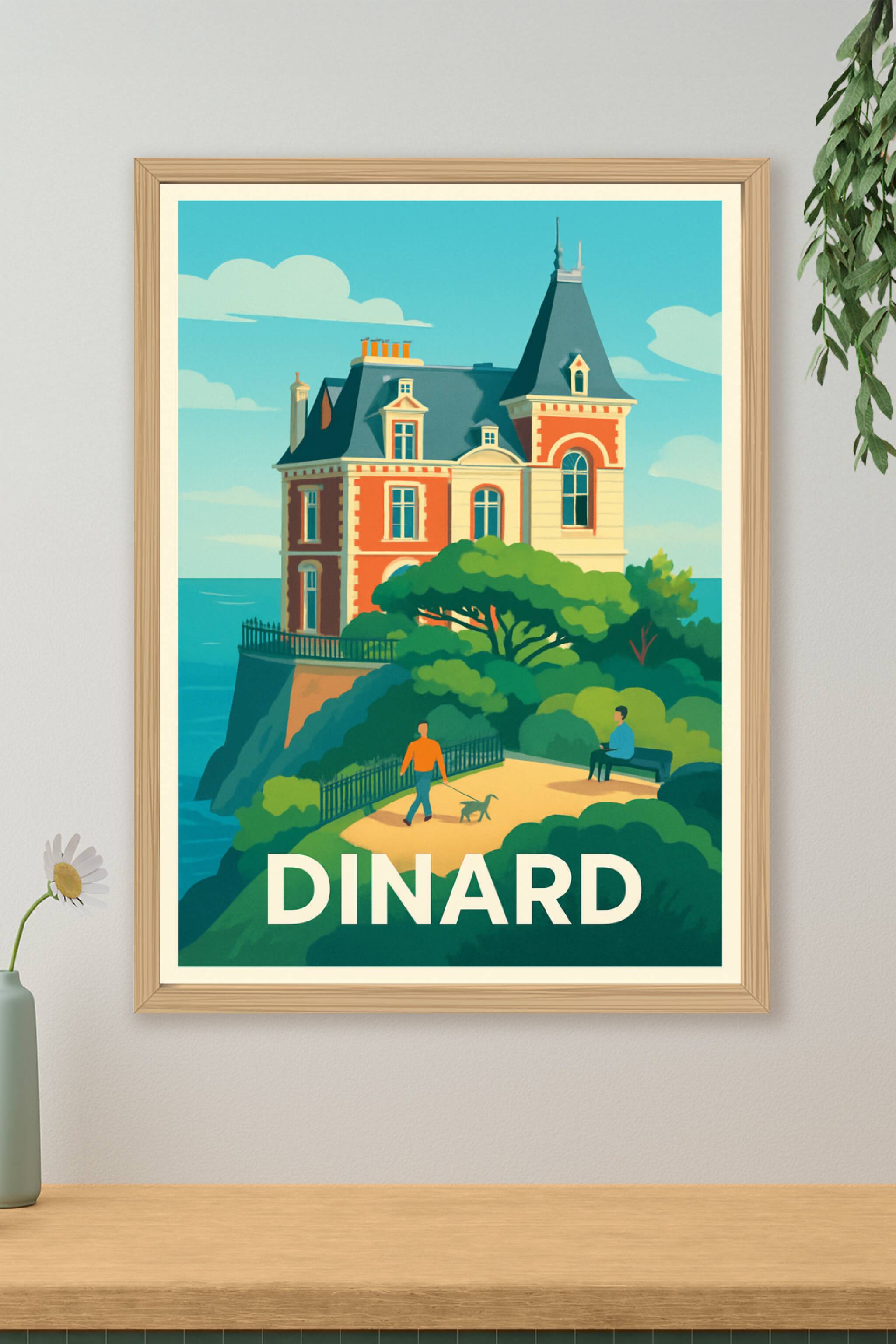 Découvrez l'élégance et la tranquillité de Dinard à travers cette affiche illustrée au style vintage, mettant en avant une belle demeure typique pe...