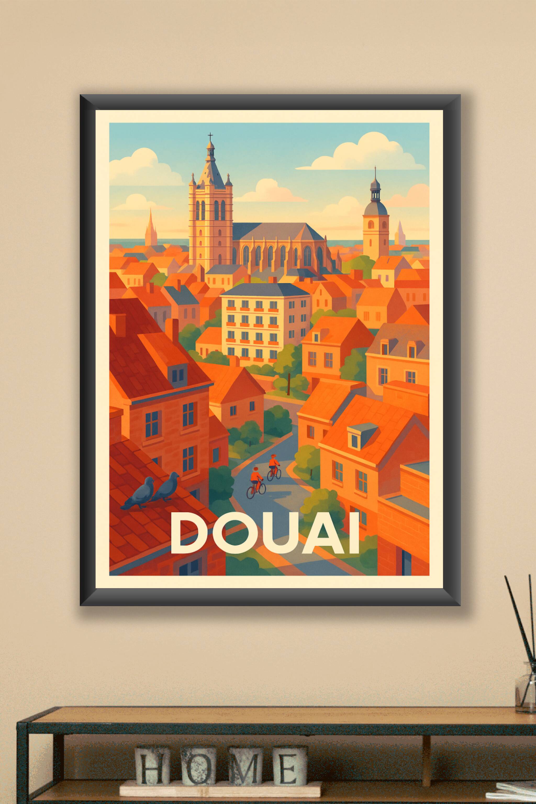 Découvrez le charme unique de Douai à travers cette affiche illustrée aux teintes chaleureuses et apaisantes qui sublimera votre intérieur. Ce post...
